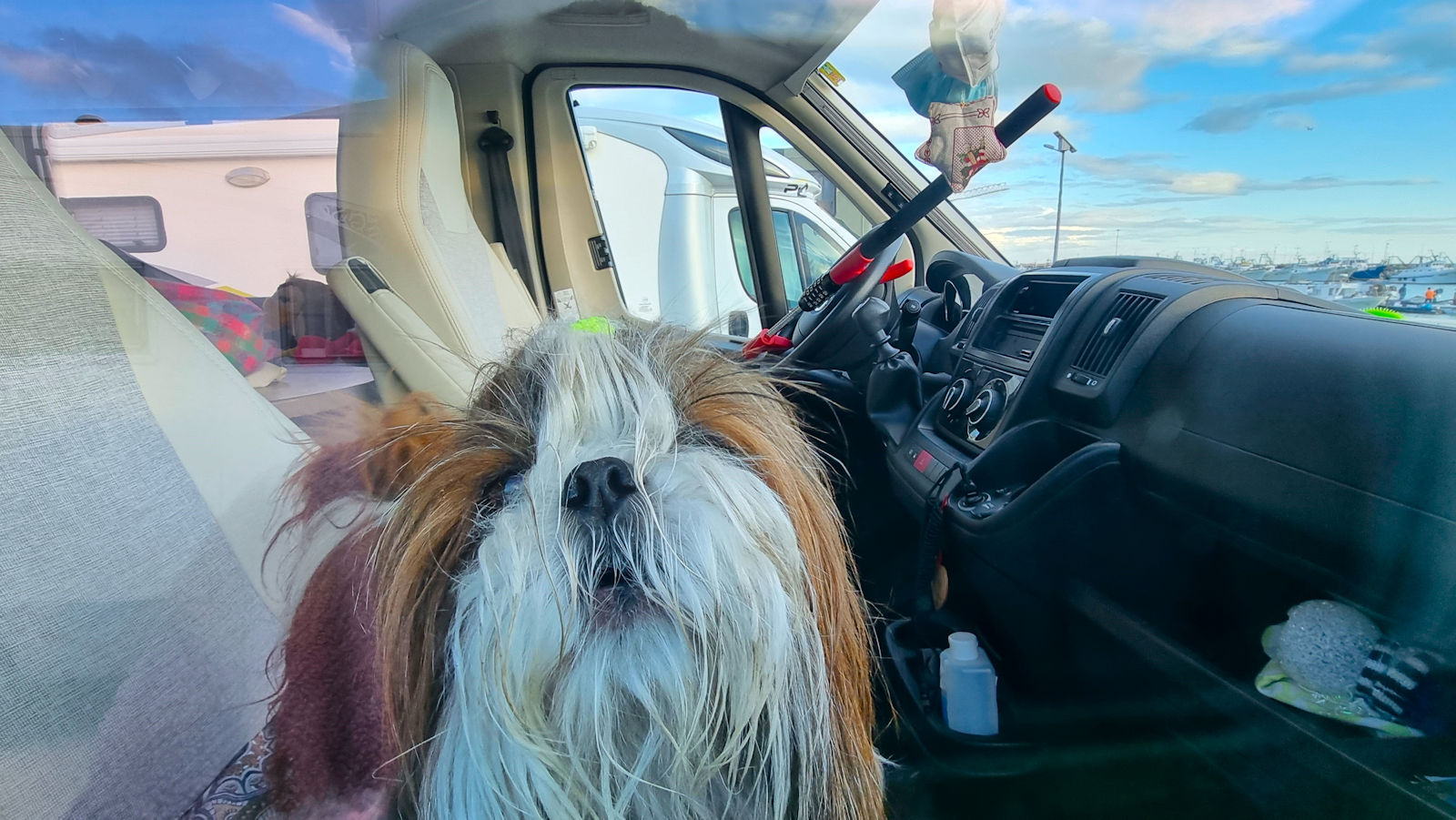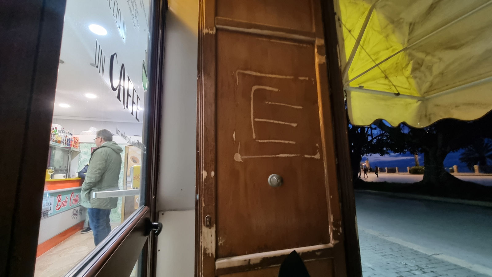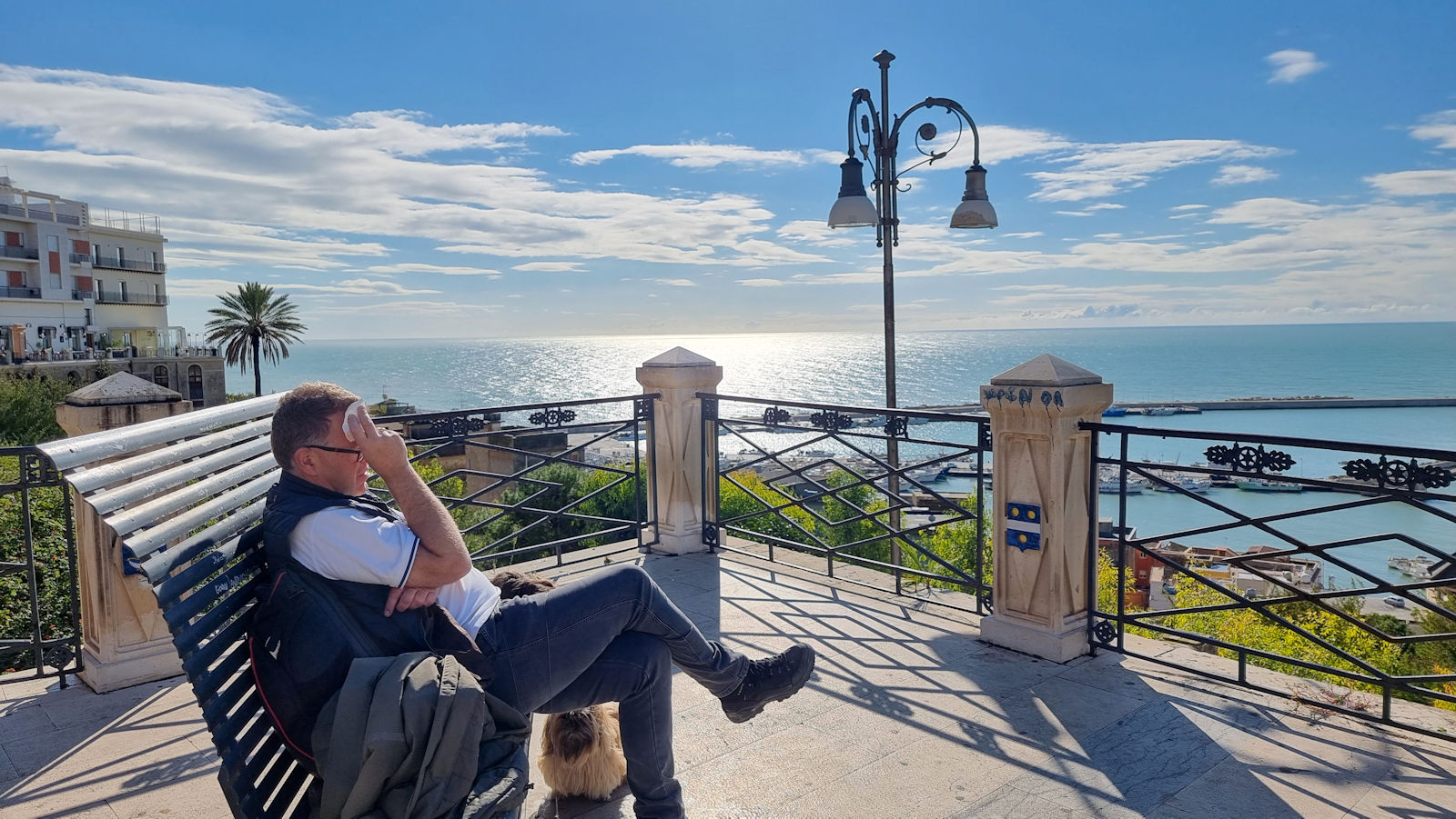 In einer netten Bar, deren Hundeverbotsschild wir einfach mal ignorieren – wir fragen aber so wie eigentlich immer, ob wir mit den Hunden eintreten dürfen – gibt es den zweiten Cappucci. Beim Aufstehen stößt sich Ralf dann derart seinen Kopf an einem über dem Tisch angebrachten Regal, dass wir den netten Barista noch um etwas Eis anbetteln müssen. Nach einiger Kühlung ist die recht starke Schwellung dann aber fast wieder verschwunden.