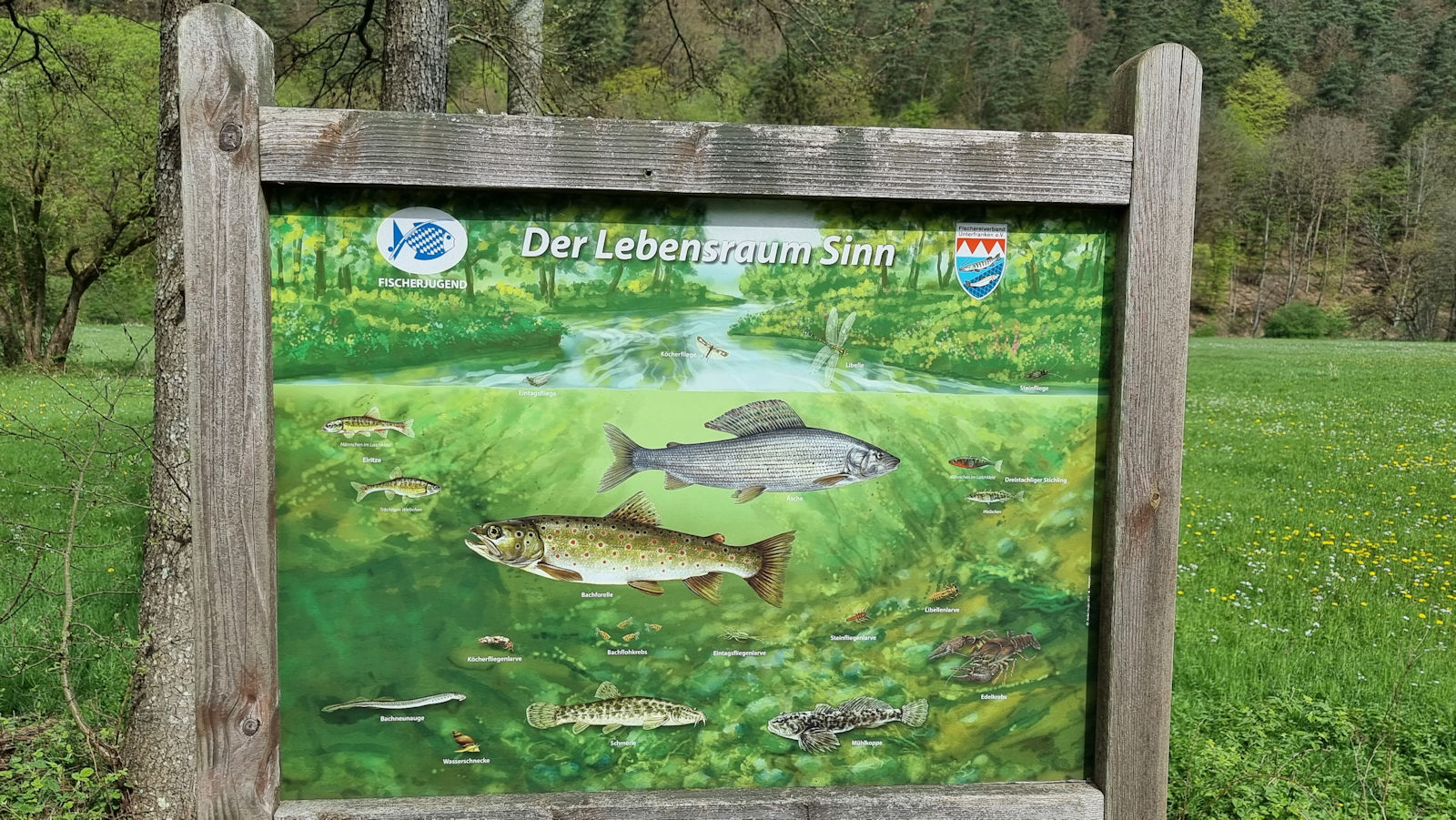 Ein nachmittäglicher Spaziergang führt uns am Sonntag rund um Zeitlofs durch schöne Auenlandschaften, an einer magischen Eiche vorbei entlang der Sinn. Ein echte Laune der Natur ist wohl das Gehwegschild, das durch den Baum, an den es einst angebracht war, schon teilweise überwachsen ist.