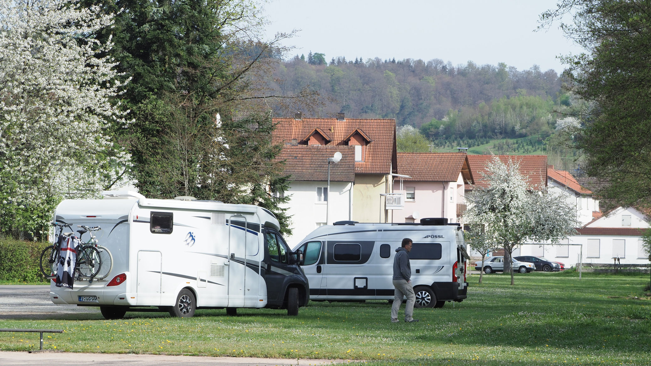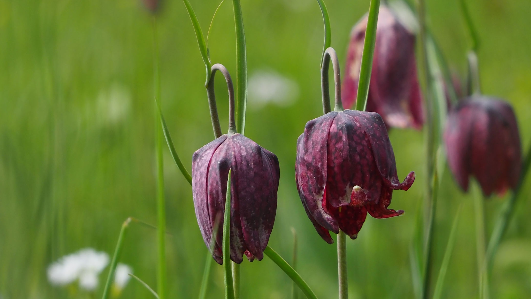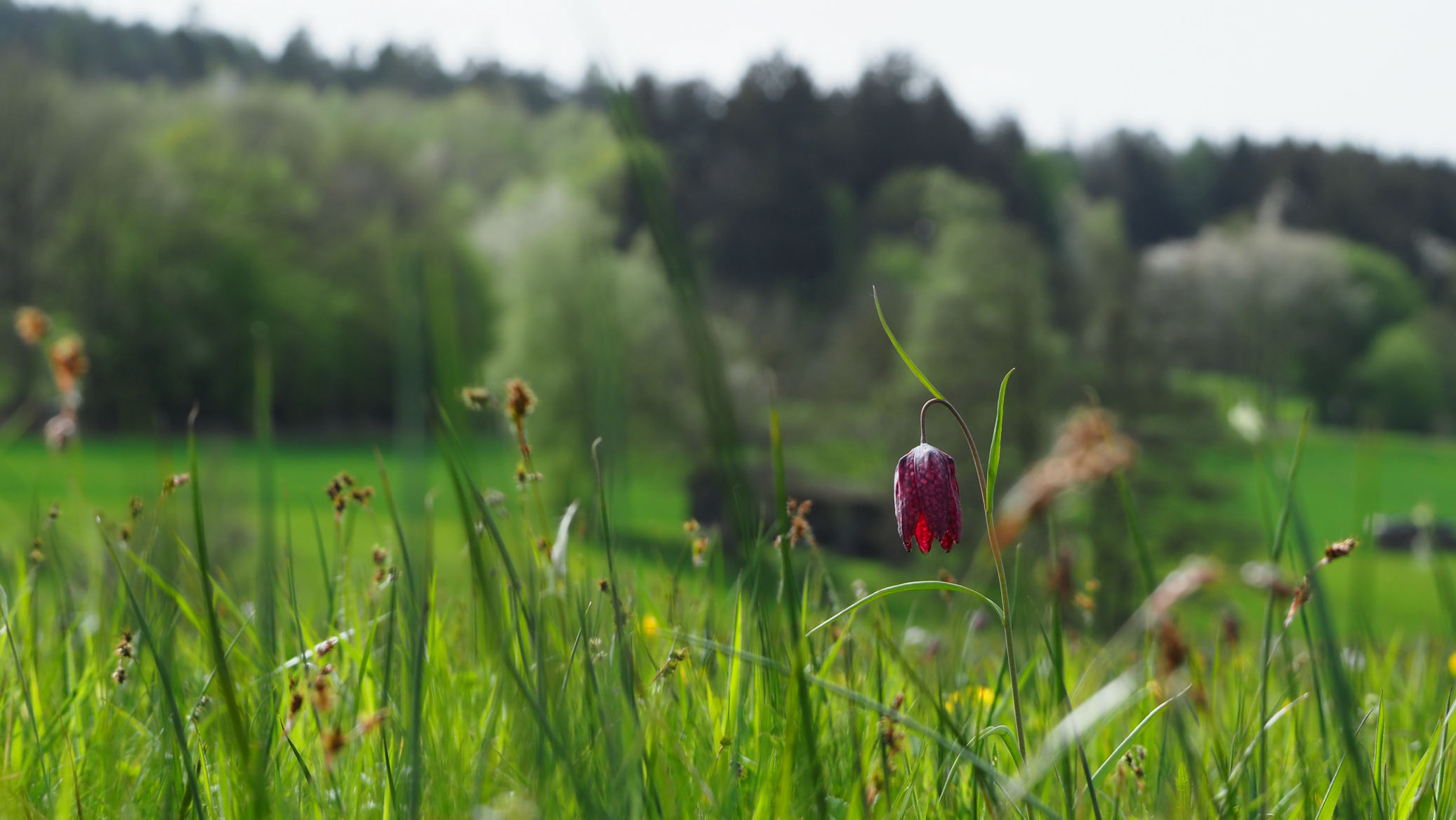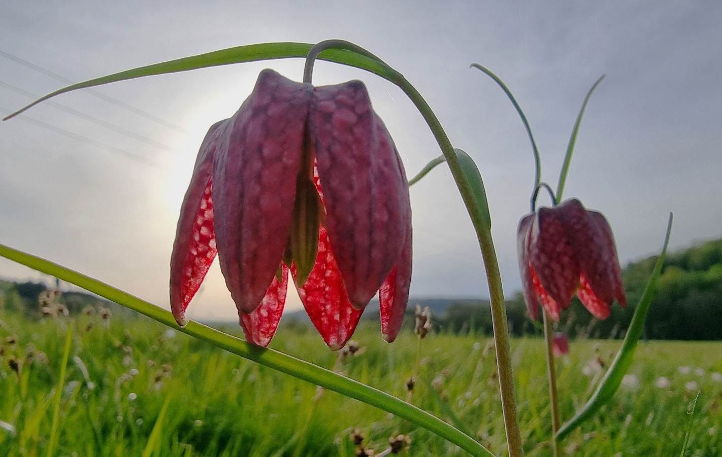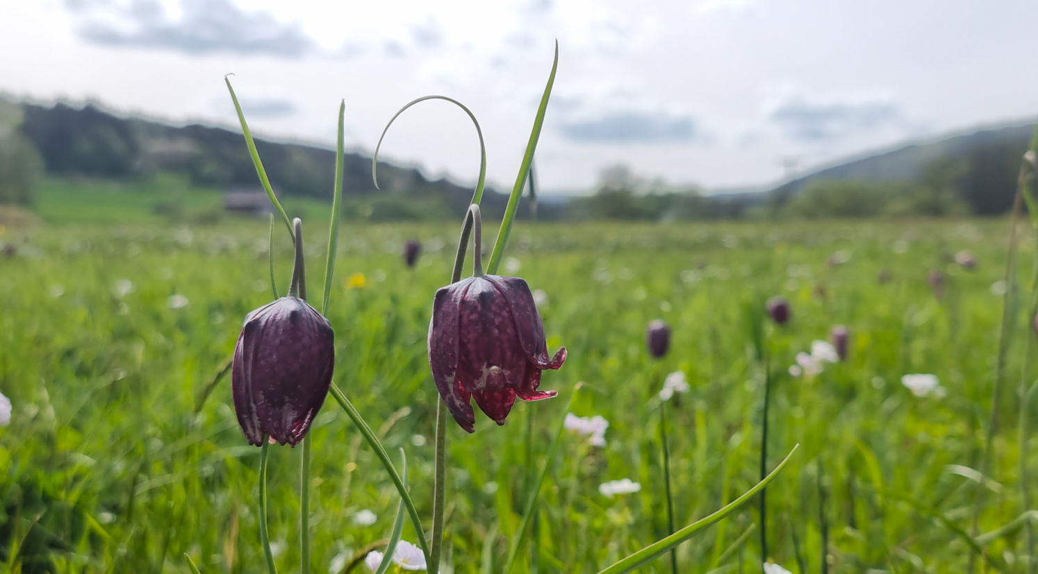 Die Blüte der Schachblumen in den Sinnwiesen. Zum Übernachten wählen wir den Stellplatz in Burgsinn.