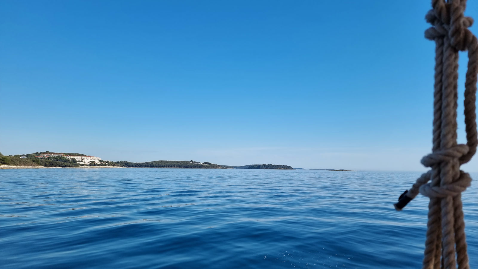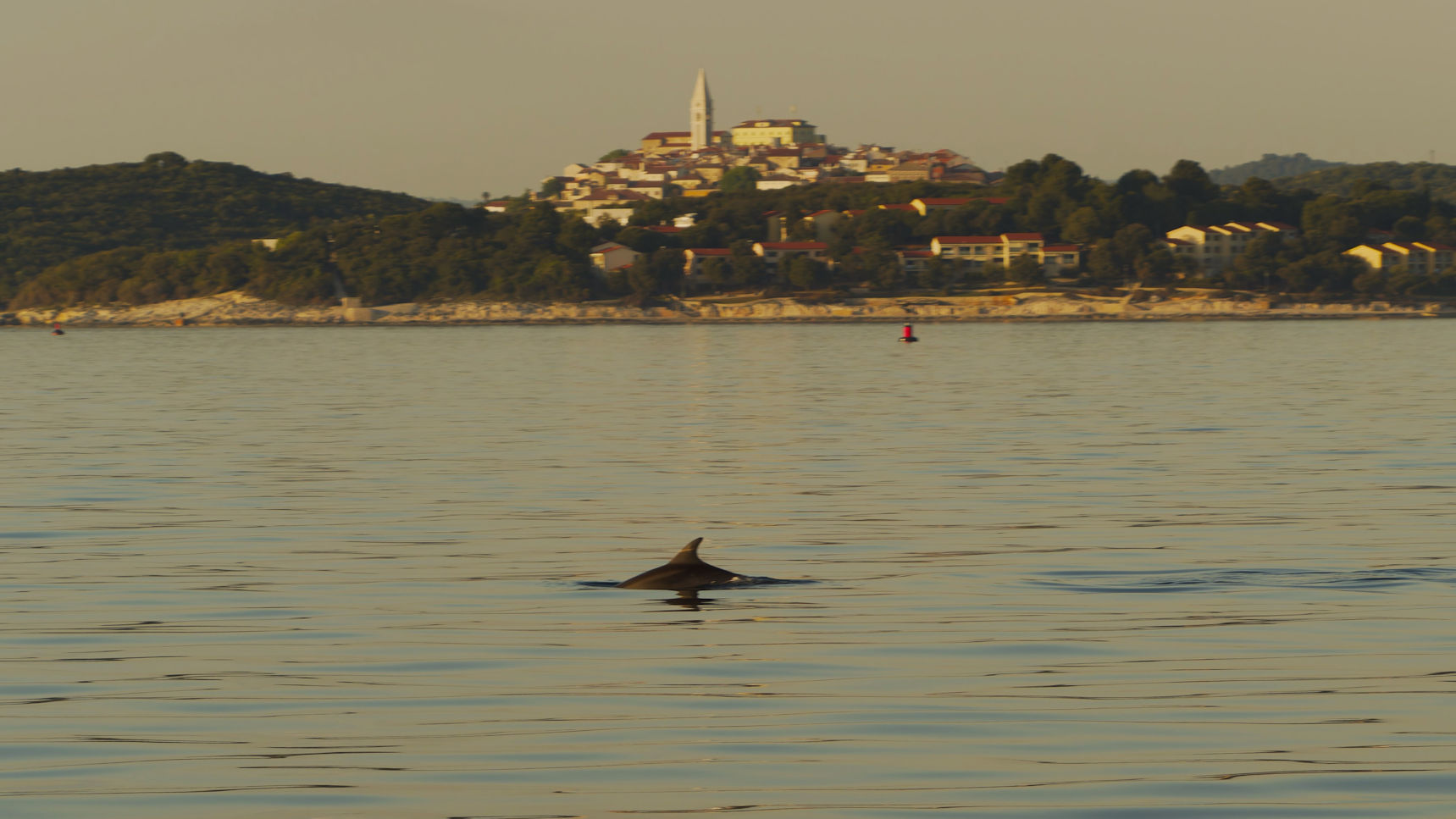Die Windstille bleibt bestehen und so entschließen wir uns am späten Nachmittag dazu, eine der angebotenen Bootstouren zum Delfinschauen zu unternehmen. Die Fellnasen dürfen mit auf die „Dupin“, so heißt unser Schiff, übersetzt aus dem kroatischen „Delfin“. Sie legen sich unter einen der alten Holztische und schlafen die ganzen 2 Stunden der Ausfahrt.