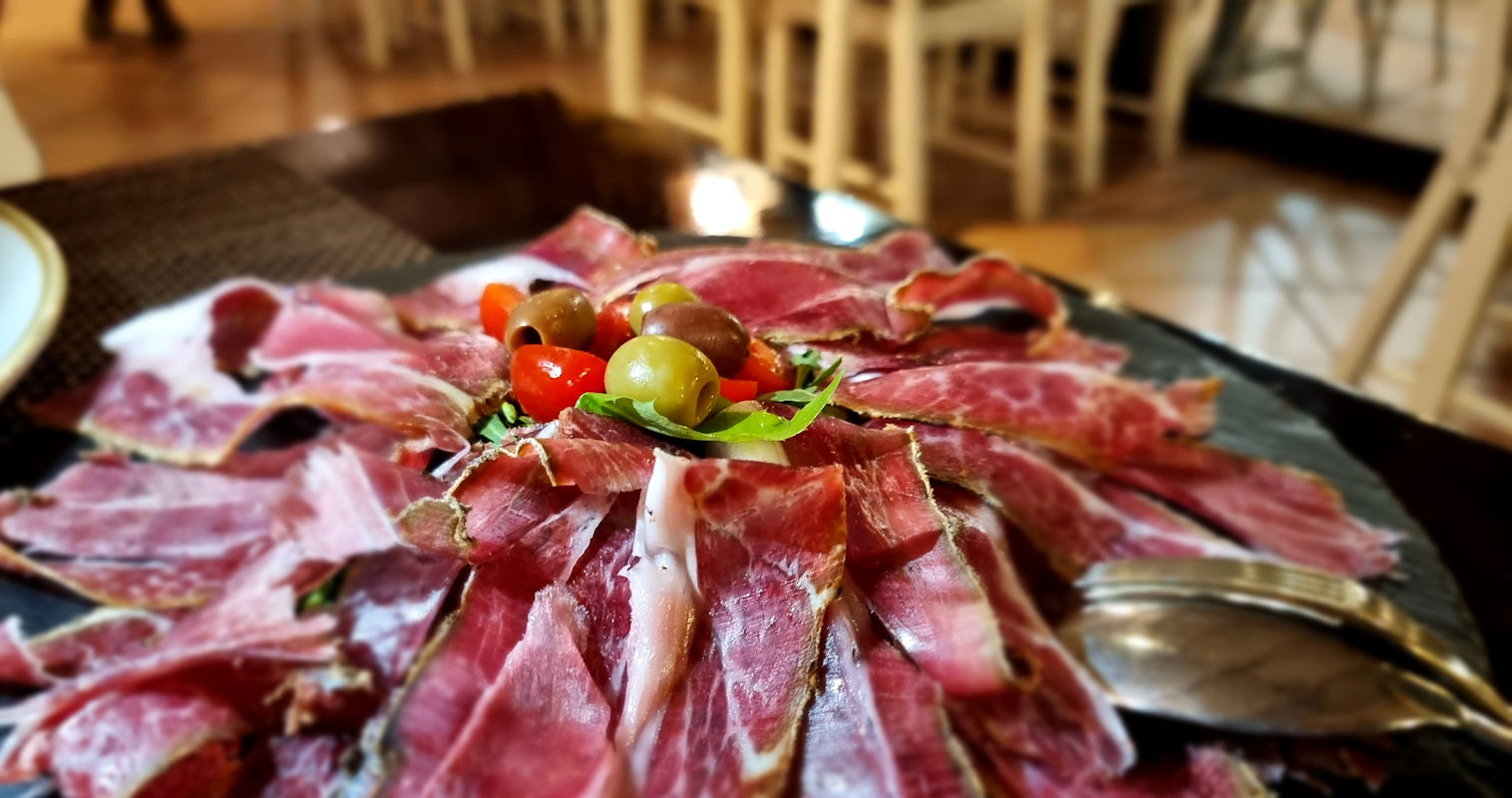 Istrischer Schinken, Trüffelpasta und Kalmare vom Grill mit Mangold. Ein perfekter Abschluss für einen perfekten Urlaubstag.