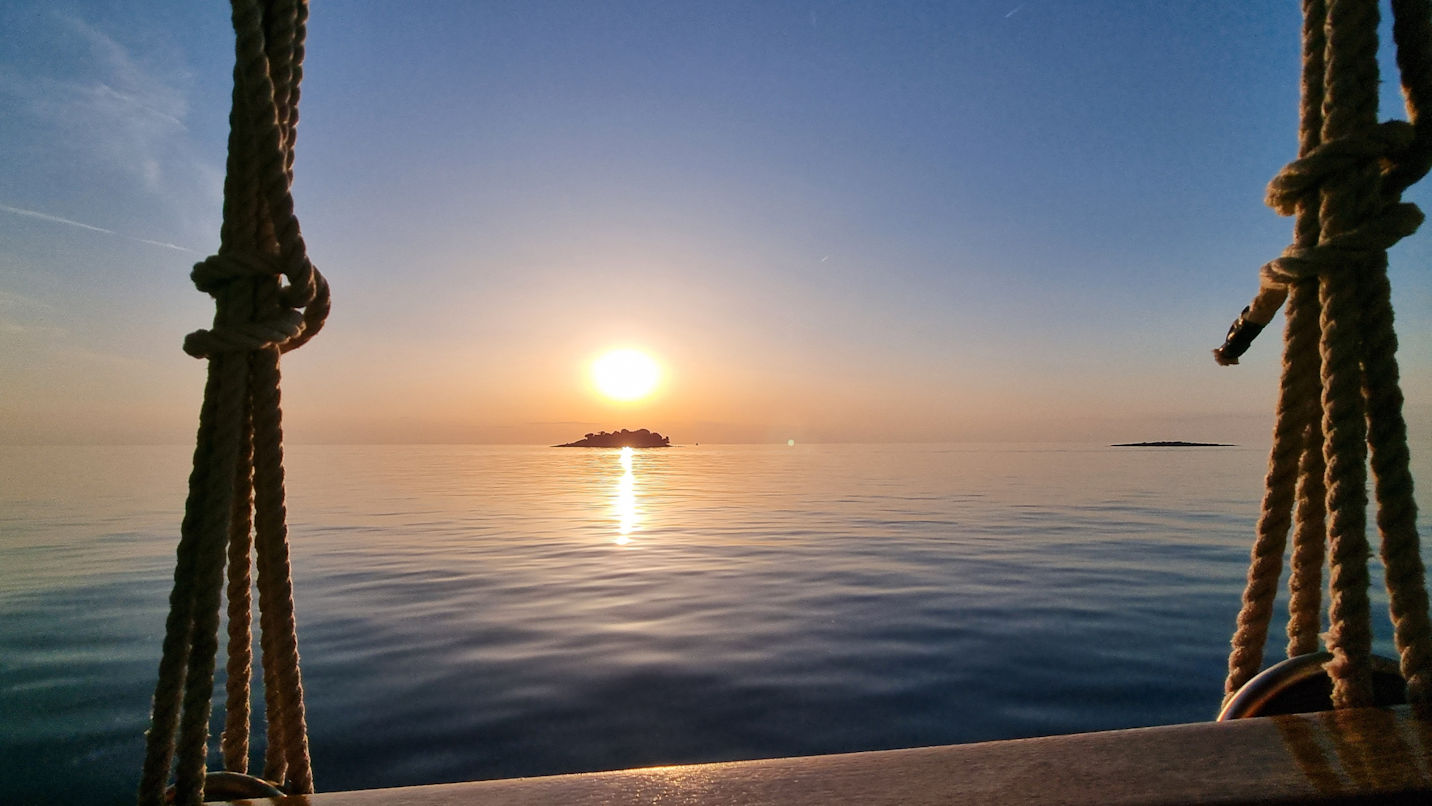 Die Temperaturen letzte Nacht hatten schon etwas Vorgeschmack auf Sommer, denn es war und ist immer noch windstill. Das angekündigte Delfinwetter also. Den Tag starten wir in gewohnter Weise. Ein Bäckergassi mit den Fellnasen, eine Bialetti voller Kaffee und leckeres Nougatgebäck. Während unseres Frühstücks kommen Alex und Miro von der Tauchbasis vorbei, um sich für ihre erste Ausfahrt der Saison ihrer eigenen Basis abzumelden und uns Lydia anzukündigen, die heute „Basisdienst“ hat.