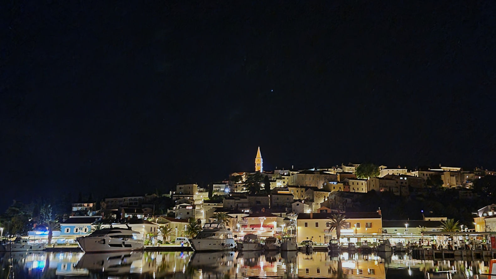 Vom Boot aus begeben wir uns in die Altstadt. Am Aussichtspunkt machen wir einen Abendessenstopp für die Fellnasen und ein paar Bilder vom wunderschönen Sonnenuntergang. Von hier aus geht es weiter durch das Tor bei Casanova zur kleinen Piazza in eine schöne Weinbar. Der kühle Malvasia schmeckt herrlich und wir genießen die Ruhe und die sommerlichen Abendtemperaturen. Zurück führt uns unser Weg durch die Gasse mit den herrlichen Parkschildern -Immer wieder schmunzeln wir über diese charmante Art der Parkplatzreservierung – bevor wir zum Restaurant Kod Luce gelangen.