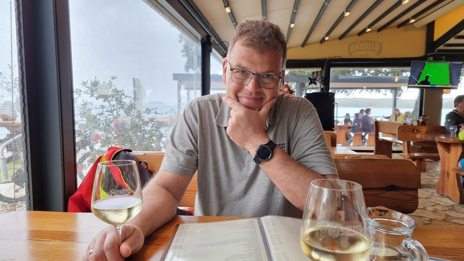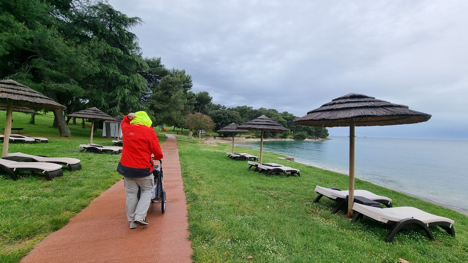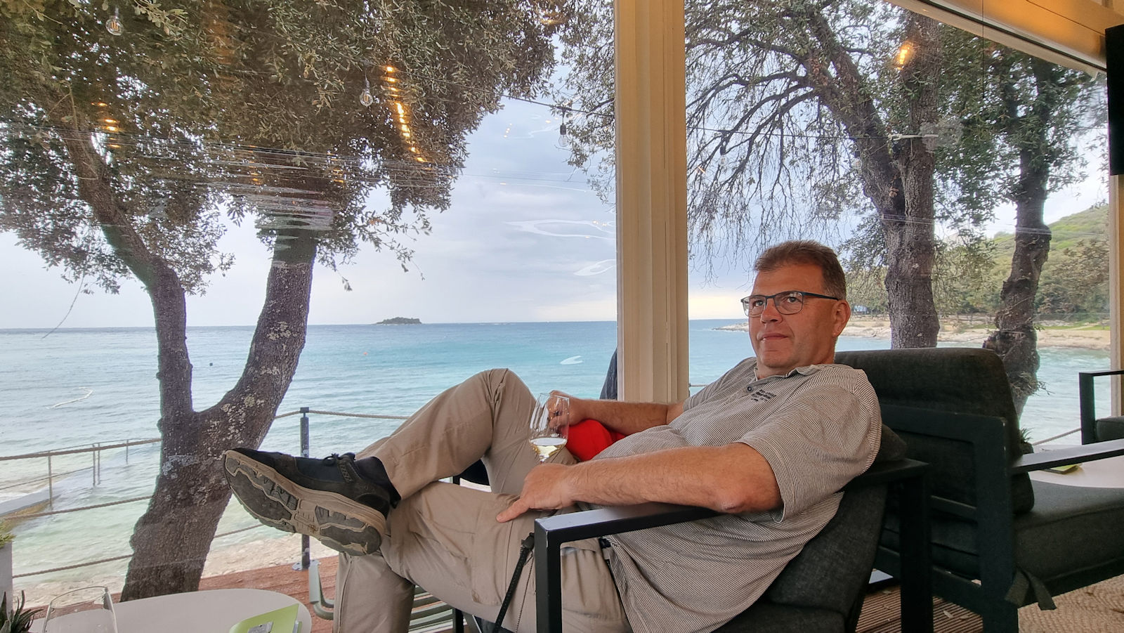 Den Nachmittag vertrödeln wir mit Blogberichten schreiben und Bilder sichten, laufen gegen 4 Uhr nach Vrsar, drehen aber wegen der schwarzen Wolken am Horizont rechtzeitig um und setzen uns in die kleine Campingplatzbar.