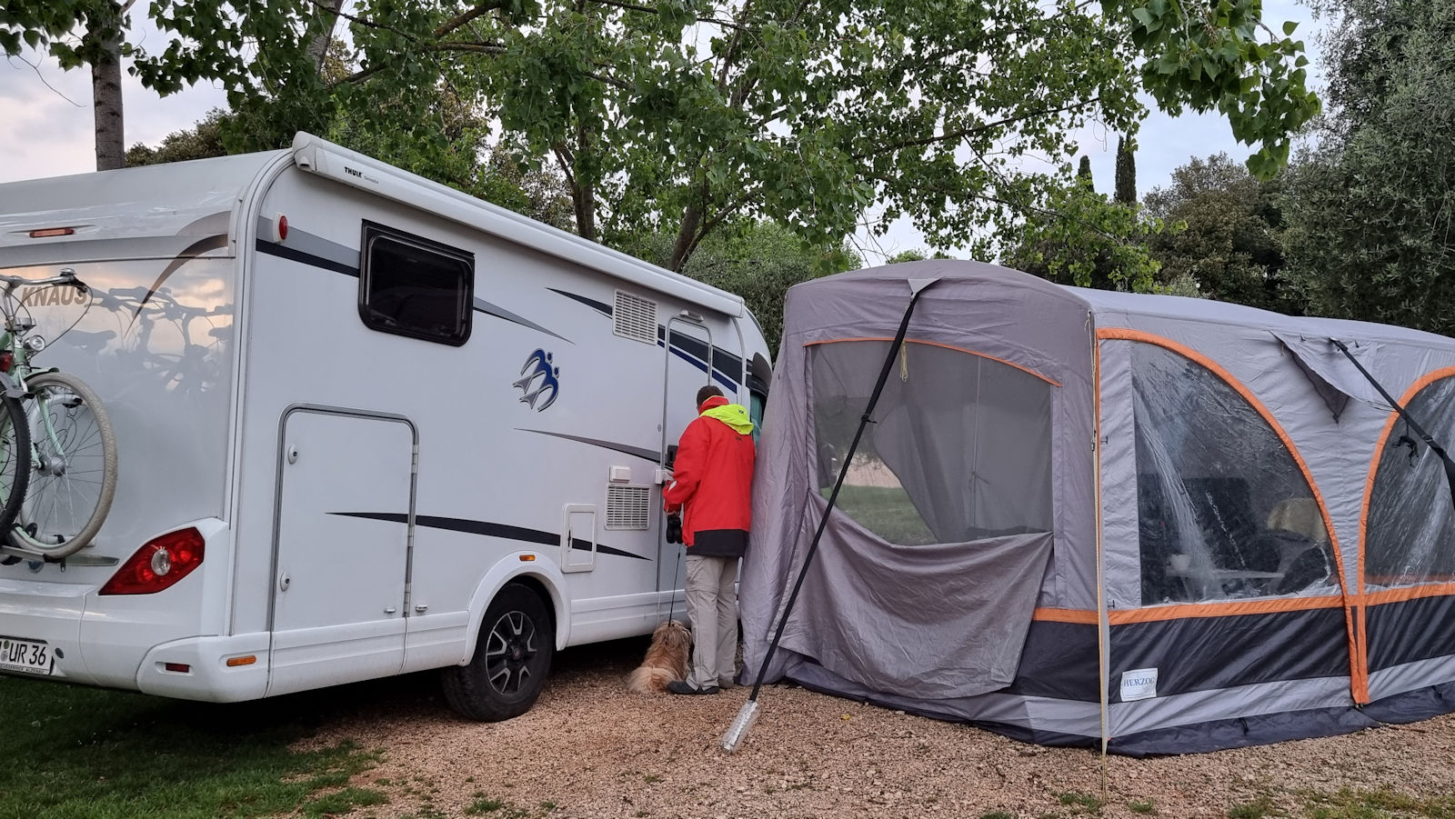 Draußen hat es mittlerweile ordentlich zu regnen begonnen. Nach etwa eineinhalb Stunden nutzen wir eine kurze Tropfenpause zum Kleingassi und der Rückkehr ins Womo. Für morgen hat der Wettergott auch nichts Anderes zu bieten…also mal schauen…bei Regengetrommel auf dem Dach schläft es sich wunderbar…