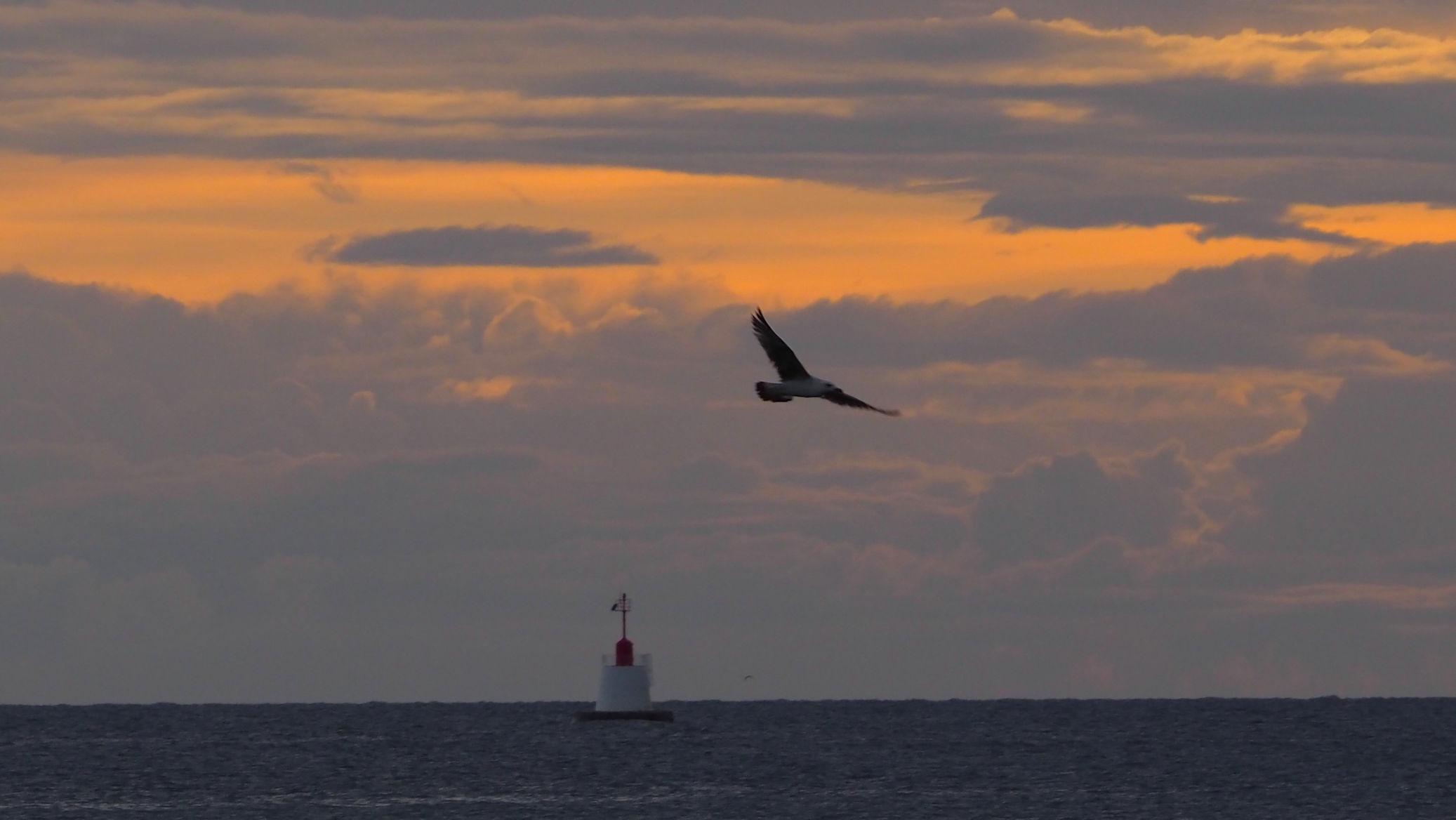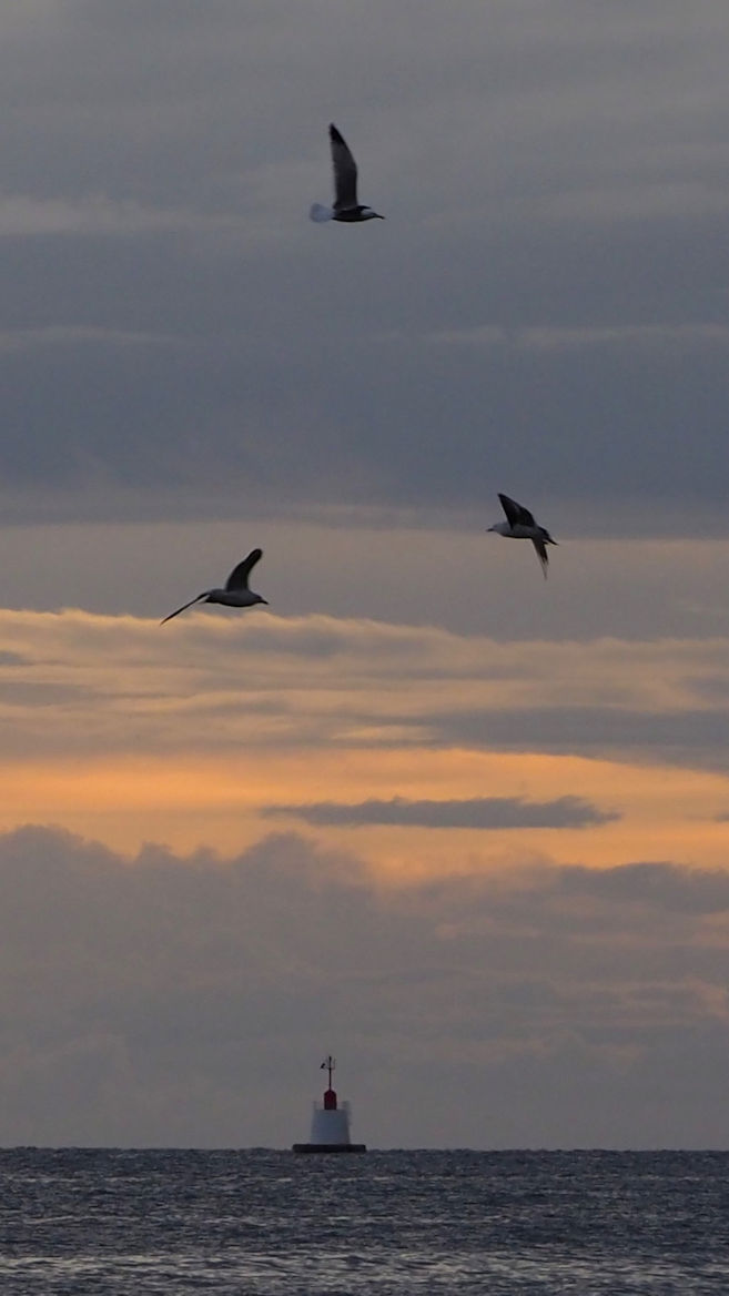 Es braucht auf jeden Fall lange, bis wir alle trocken sind. Der Sonnenuntergang jetzt um halb 9 hat ganz nette Farben, aber die nächsten schwarzen Wolken sind schon am Horizont zu sehen.