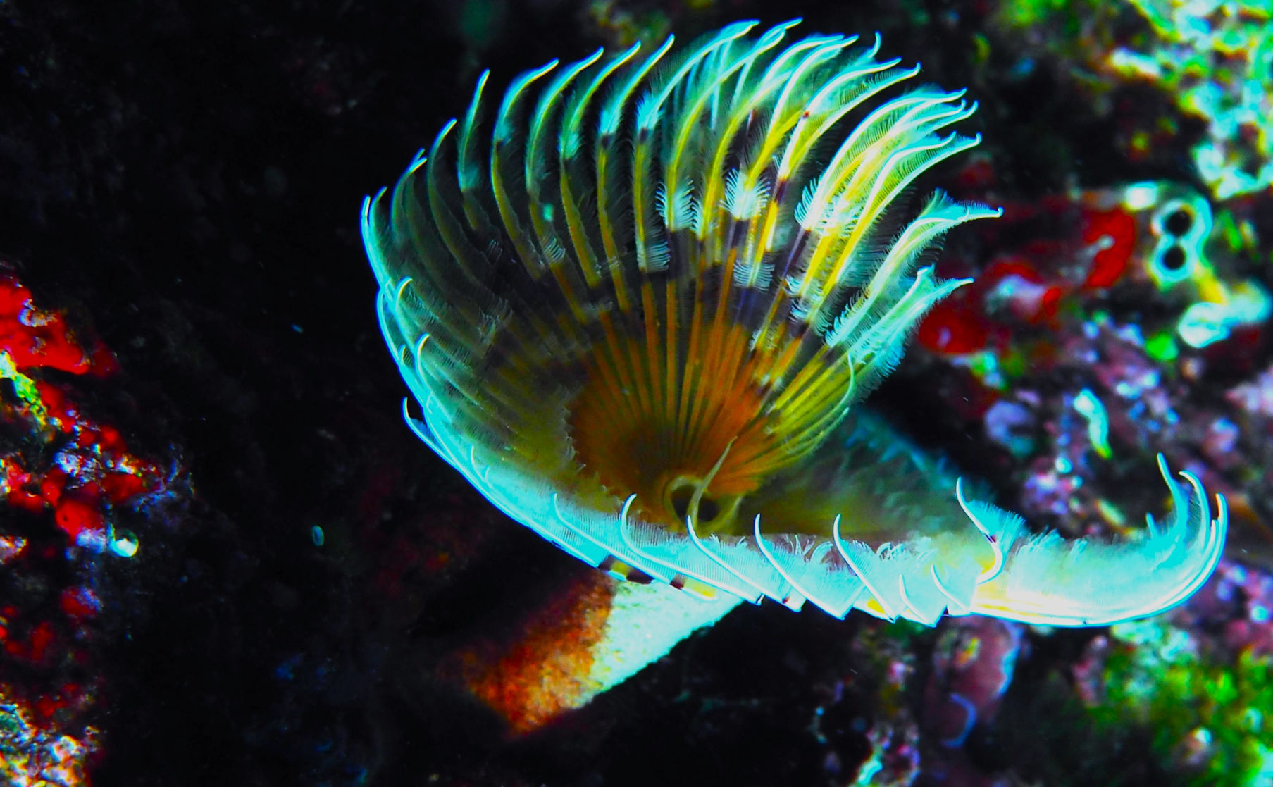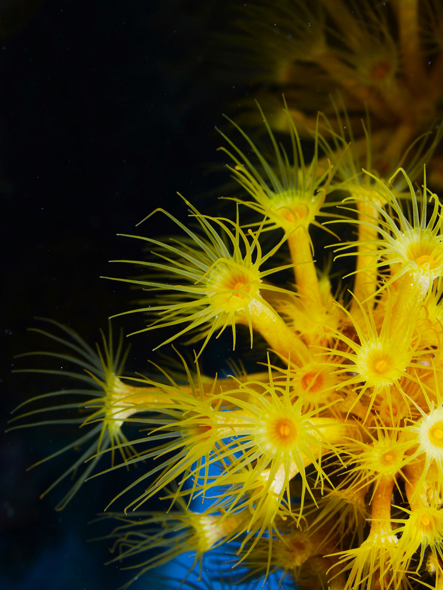Besonders eine Kolonie der gelben Krustenanemonen ist immer wieder faszinierend anzusehen und im Bild festzuhalten.