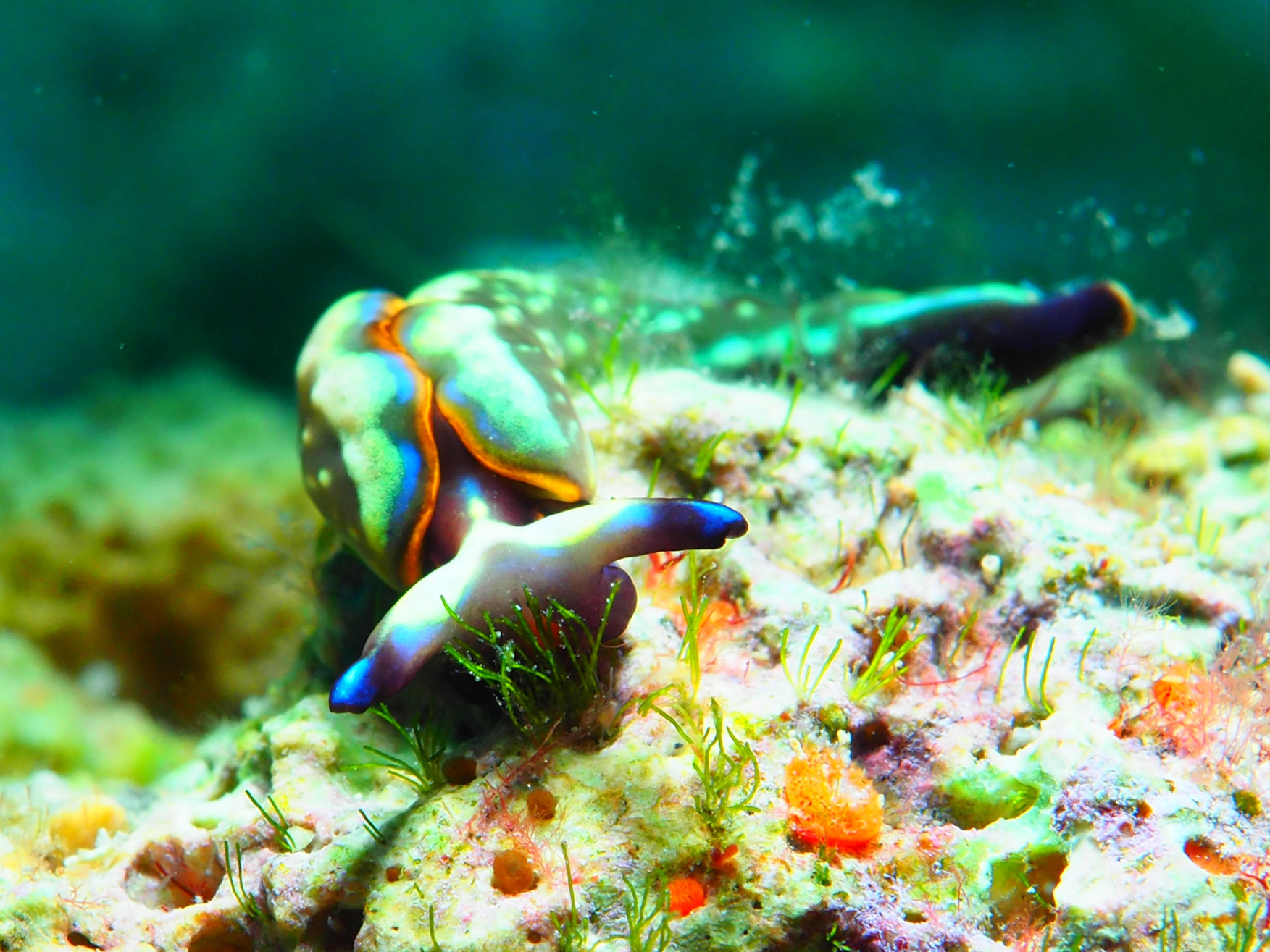 Wir sehen jede Menge der Thuridilla Schnecken, eine Goldschwammschnecke, etliche kleine, farbenprächtige Grundeln lugen aus ihren Verstecken. Es ist einfach wieder genauso wunderschön wie vor fast 8 Jahren. Man muss zwar etwas genauer hinschauen, aber es lohnt sich allemal.