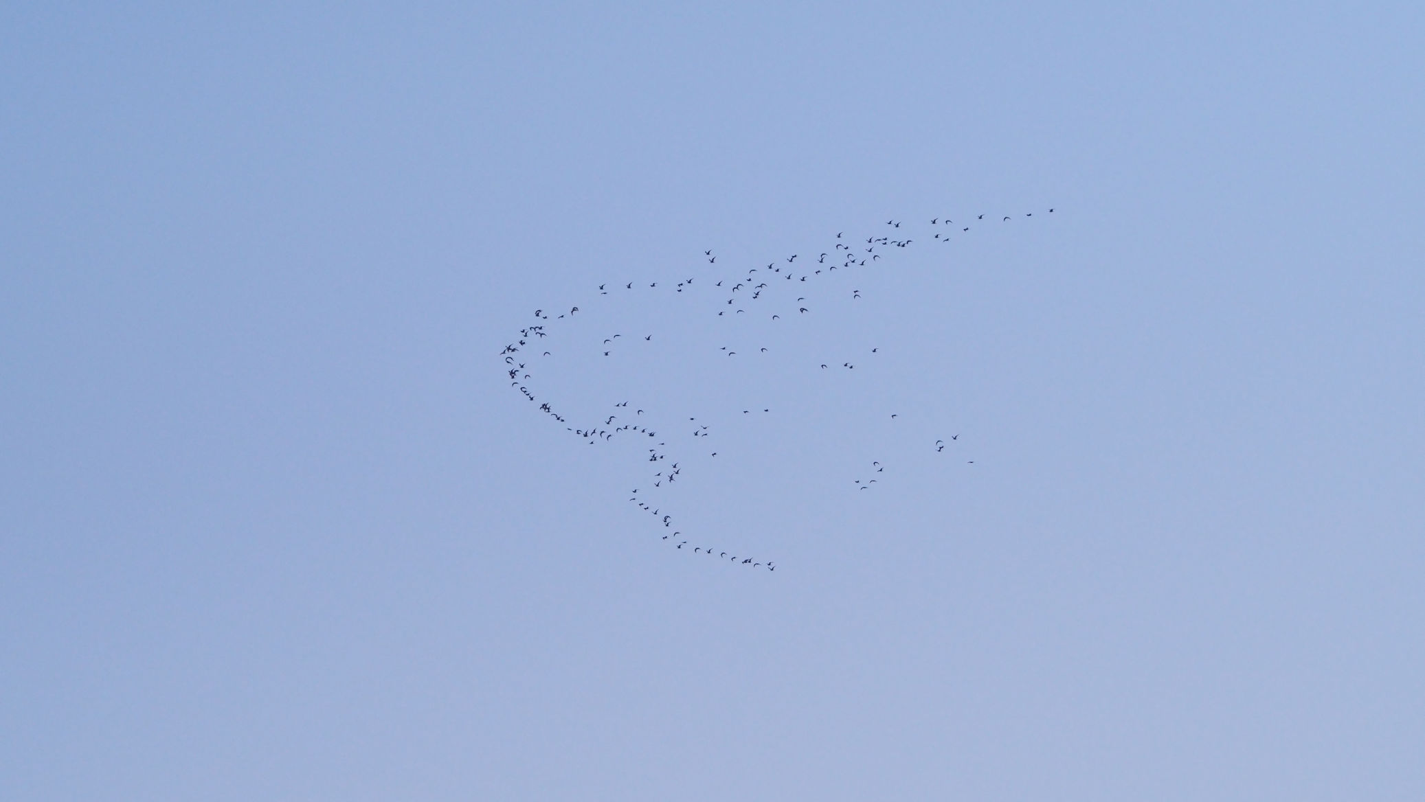 In einer anderen Bar als heute morgen genießen wir einen Malvasia und den wundervollen Sonnenuntergang, bevor es wieder zurück zu unserem Campingplatz geht. Ein größerer Vogelschwarm fliegt ebenfalls in unsere Richtung.