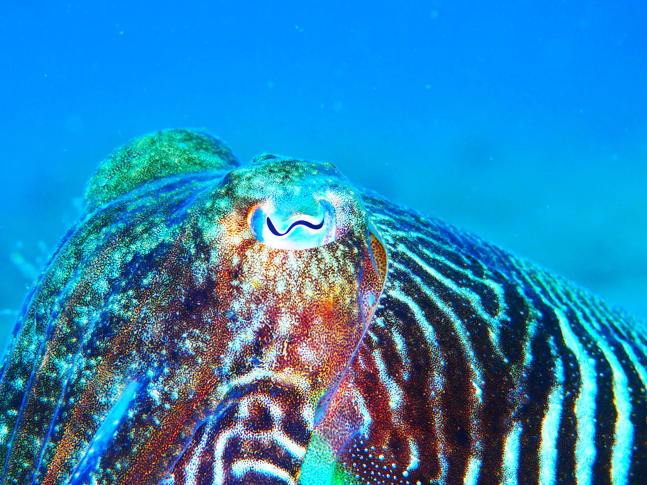 Aber es ist warm und so begeben wir uns wie an jedem Morgen hier in Selce zum Tauchen. Wir sehen einige sehr scheue Sepien und Ulli hat schon fast mit dem Fotografieren mit der Makrolinse aufgegeben, doch die letzte der 4 Sepien scheint Ulli und ihre Kamera zu mögen. So entstehen einige außergewöhnliche Nahaufnahmen dieser tollen Tiere. Der Tanz mit der Sepia ist so außergewöhnlich….so etwas passiert nicht so oft…oder vielleicht doch?
