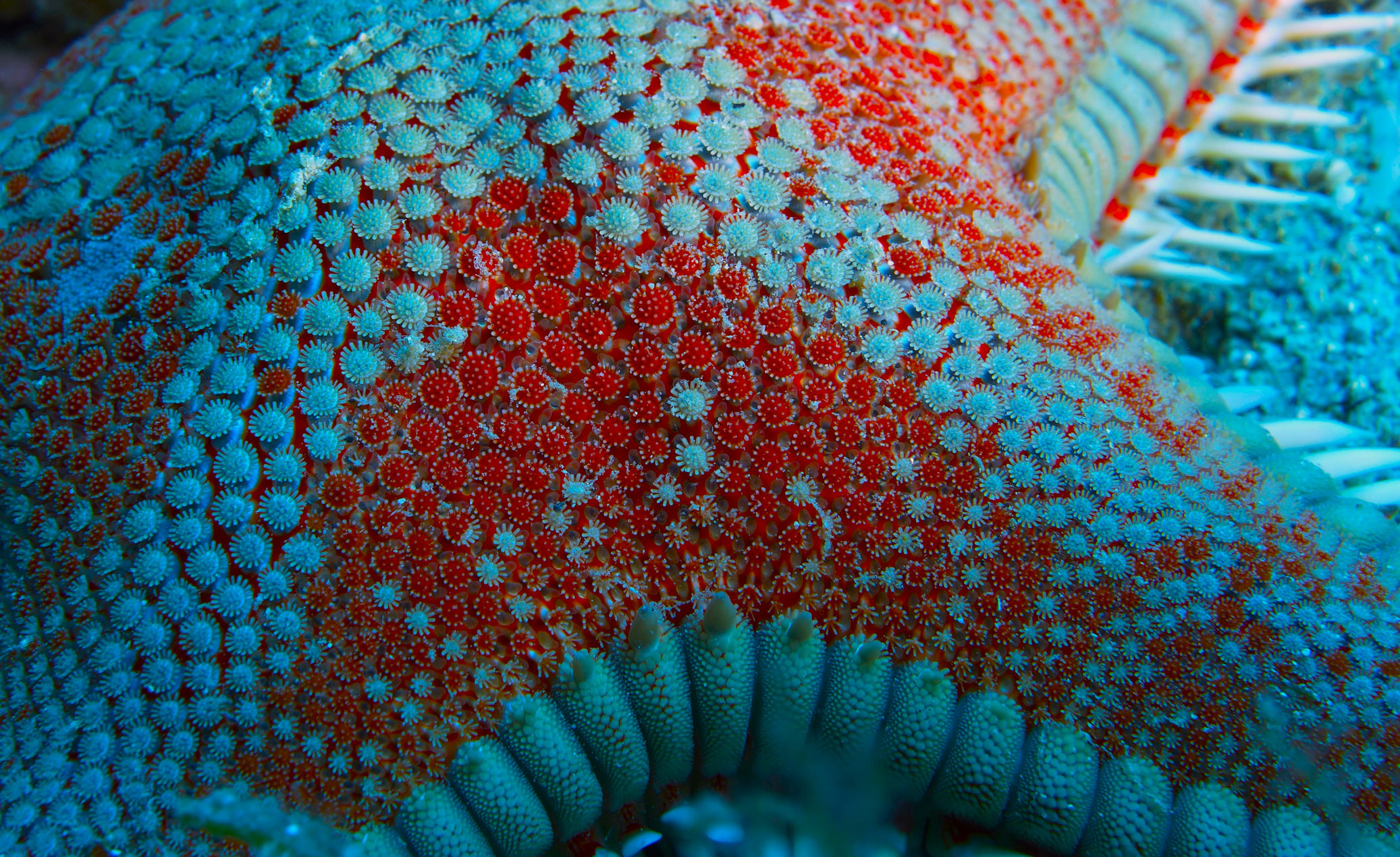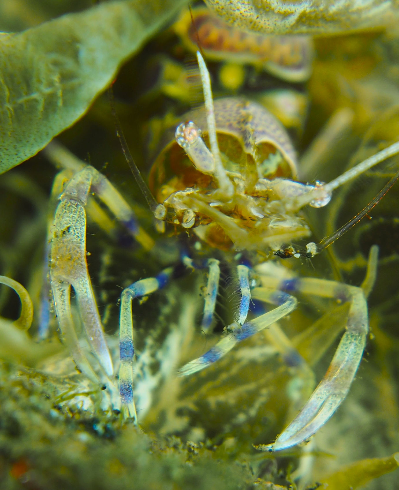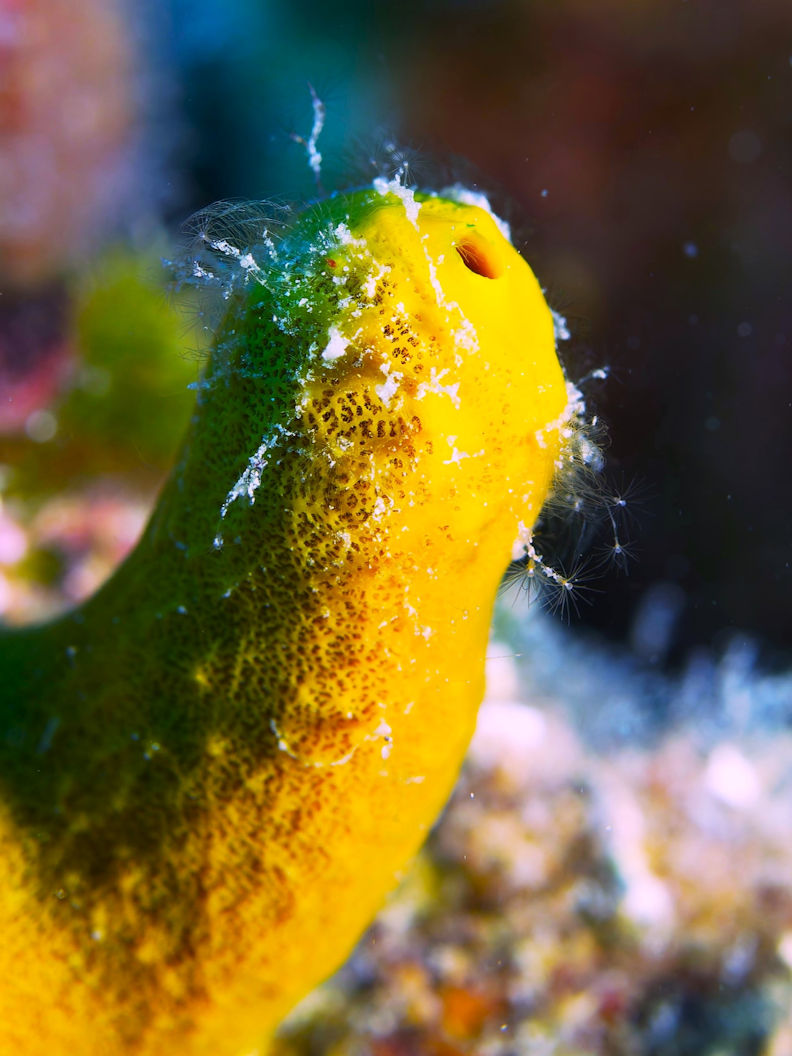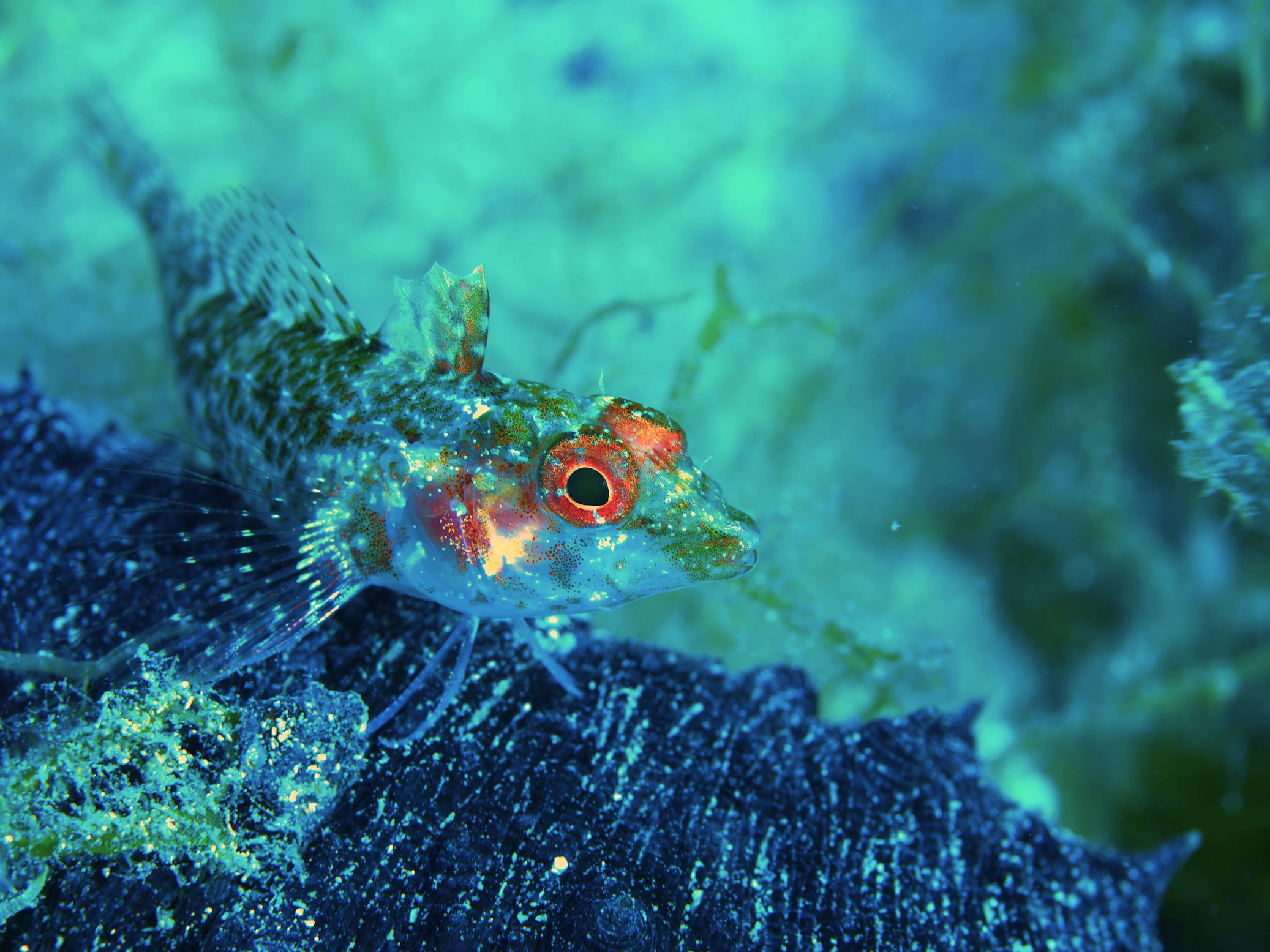 Nun zum Tauchen – es ist schließlich unser letzter Tauchtag auf dieser Reise. Das Meer ist sehr bewegt. Es herrscht starke Dünung im Bereich vor der Basis. Laut Aussagen der anderen Taucher, die am Morgen im Wasser waren, ist die Dünung, die Wellenbewegung des Wasser, bis in eine Tiefe von 10 Metern deutlich spürbar. Daher entscheiden wir uns für einen Tauchgang hinter dem kleinen Hafen an der Hafenmole entlang. Nicht ganz so spannend, aber trotzdem nett und vor allem ruhiger unter Wasser. Und wieder entstehen ein paar wunderschöne Aufnahmen. Als wir aus dem Wasser zurückkommen, empfängt uns einer der Tauchguides mit Tee und Schoki und unser Equipment müssen wir auch nicht zurücktragen. Denn ein Transportwagen der Basis steht bereit.