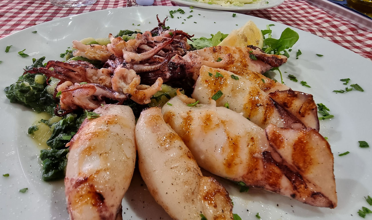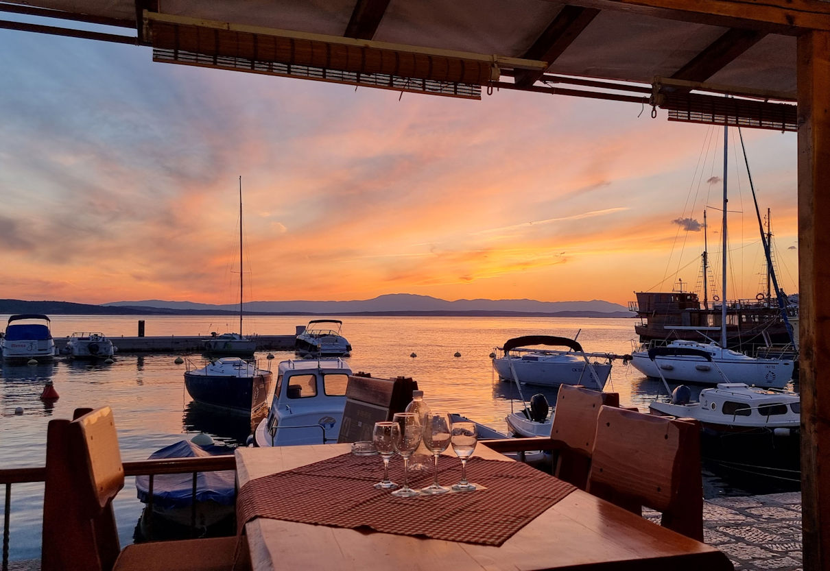 Ein letzter Abendespaziergang nach Selce ins Restaurant Riva, nochmal Calamari vom Grill genießen, ein finales Haselnusseis und wir sind zurück am Womo.