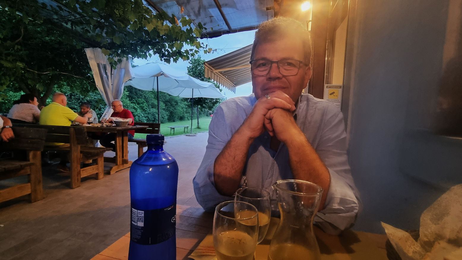 Am Freitag, den 15. Juni, verkrümelten wir uns aus dem sehr teuer gewordenen Kroatien gen Italien und fanden kurz hinter Triest im Hinterland einen magischen kleinen Ort mit Restaurant mit Hausmannskost und ruhigem Übernachtungsplatz. Integriert in ein Gruppe feiernder Italiener trafen wir dort genau das an, was wir an Italien so lieben. Herzliche Menschen, netter Smalltalk und gemeinsames Lachen. Es war fast so etwas wie ein Pflaster für die heftige Kroatienenttäuschung und eine Einladung, diesen Landstrich demnächst mal etwas genauer unter die Lupe zu nehmen.