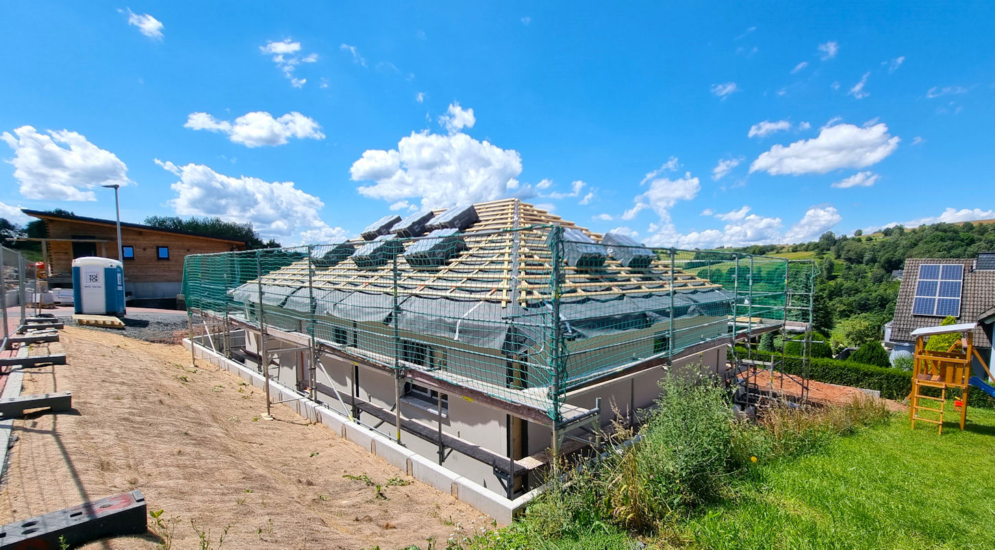 Nach einer letzten Nacht im Womo vor einem Restaurant mit Speisen zum Niederknien in der Nähe von Miesbach kamen wir wieder in Hasselroth an. Und da sind wir jetzt noch oder besser wir sind noch ab und zu dort. Denn am 11. Juli wurde unser Traumhaus im Grünen aufgestellt und seither pendeln wir zwischen Hasselroth und dort, wo unser Traumhaus steht hin und her und die Zeit vergeht einfach nur wie im Flug.