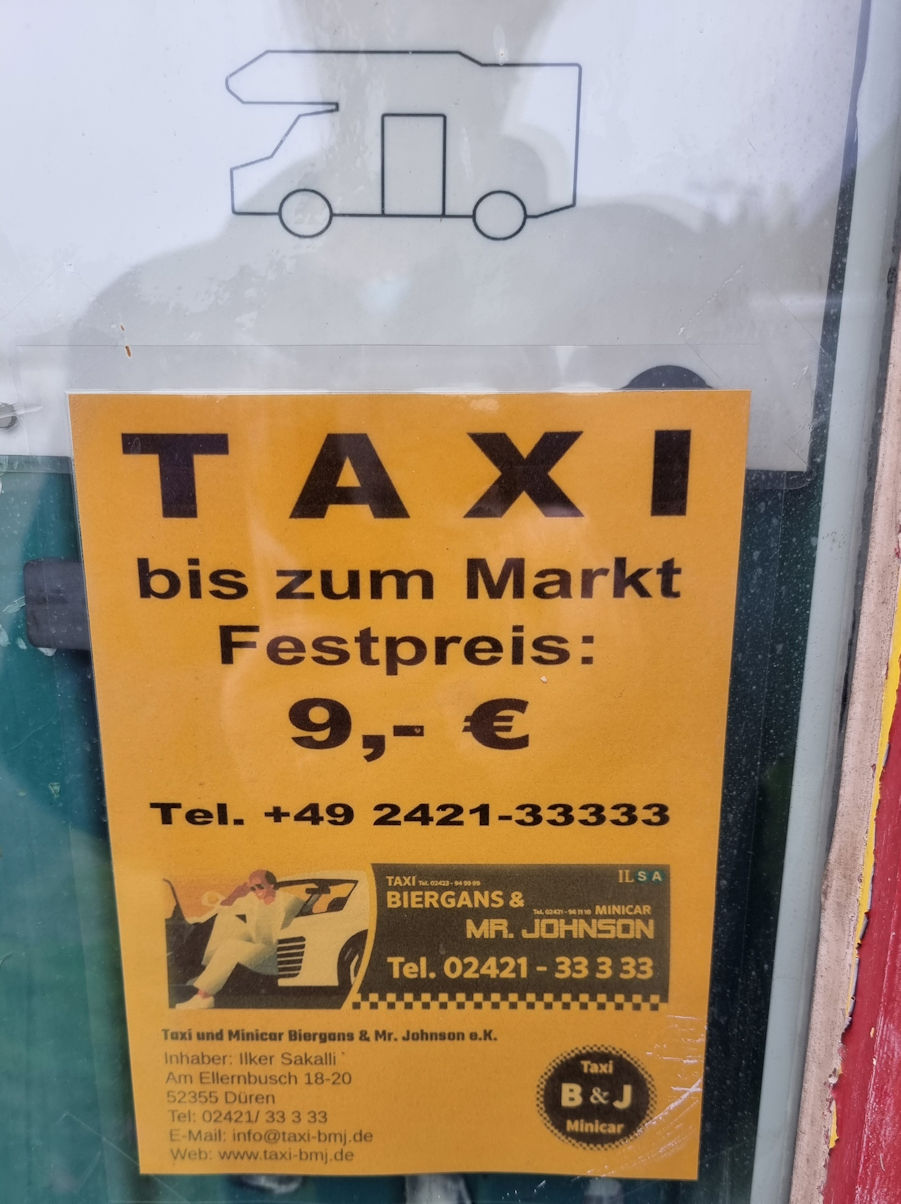 Um halb 7 haben sitzen wir dann im Taxi, um nach Düren zu fahren. Wir wollen heute Abend essen gehen und landen in einem kleinen italienischen Restaurant. Die Bedienung wirkt sehr aufgesetzt und die Küche ist ganz okay, aber nichts Besonderes.