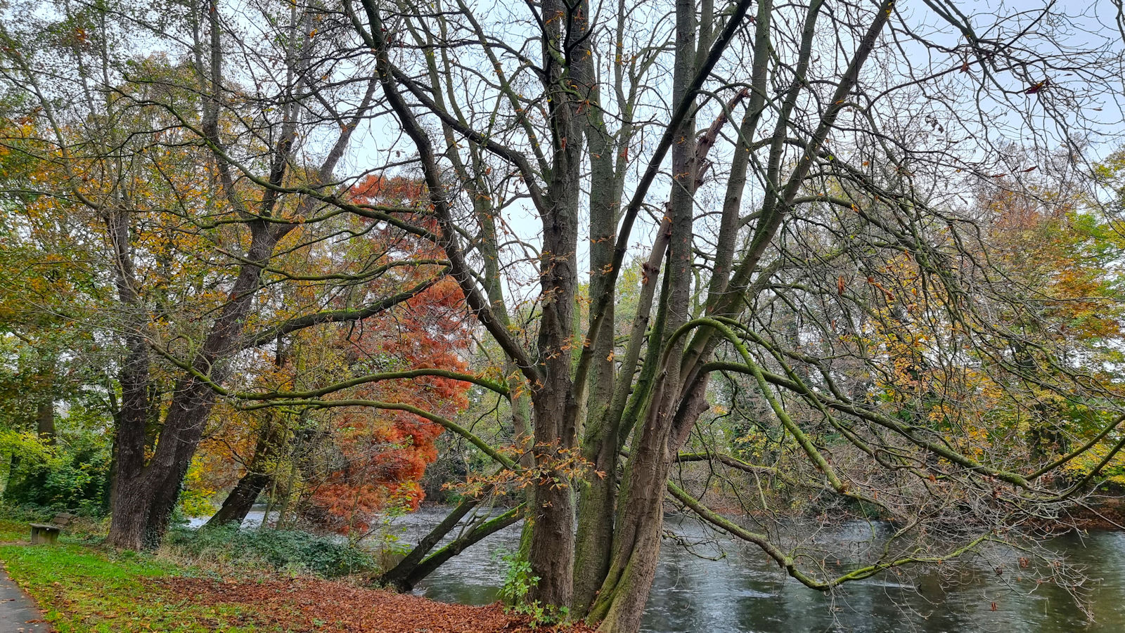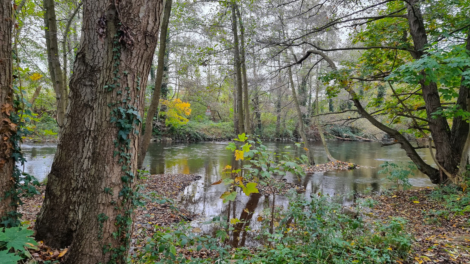 In der Region Achen soll am heutigen Nachmittag die Sonne scheinen und so steueren wir den Wohnmobilhafen in Düren an, den wir gegen 2 Uhr erreichen. Schnell ist die Standgebühr entrichtet und los geht es entlang der Rur durch eine wunderschöne Herbstlaublandschaft. Immer am Fluss entlang. Hier und da fliegt ein Eisvogel laut rufend vorbei. All das wäre noch schöner, wenn die Sonne endlich auftauchen würde. Aber leider tut sie das nicht.