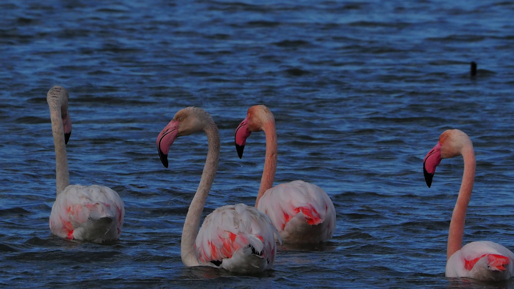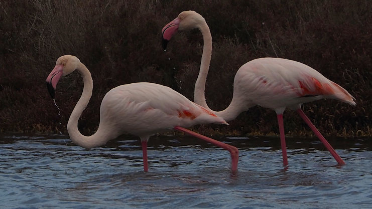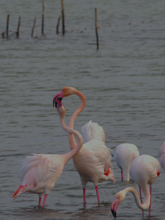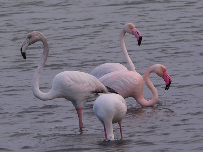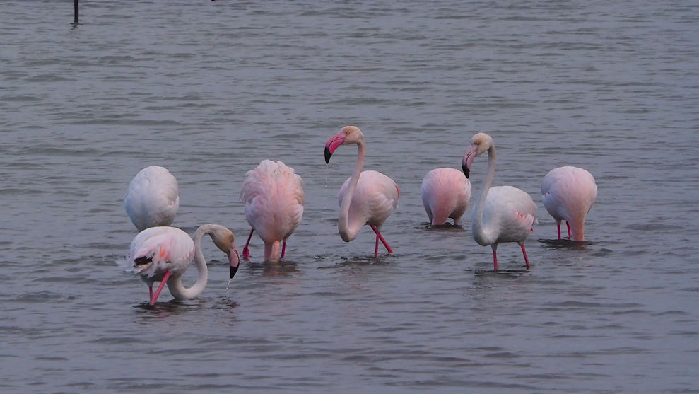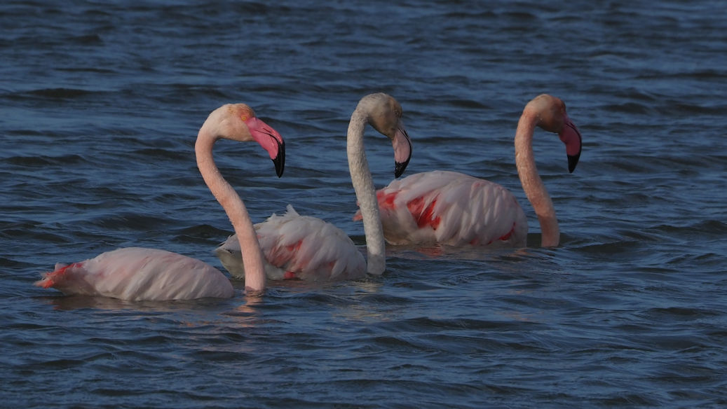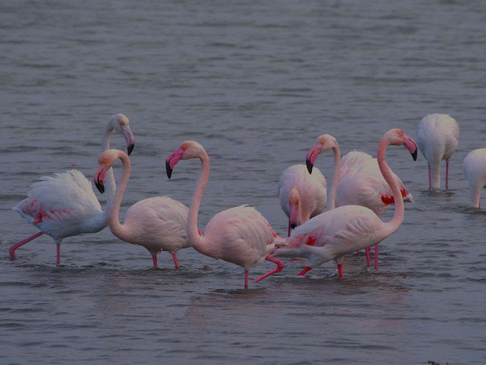 Während unseres 2. Frühstücks beschließen wir weiter in Richtung Sonne zu fahren und landen schließlich auf dem Damm von Porto Botte bei Masainas. Die Wolken zaubern zauberhafte Stimmungen an den Himmel und eine kleine Gruppe Flamingos stolziert so lange vor unseren Kameras, bis die Sonne endlich herauskommt. So entstehen ein paar wundervolle Aufnahmen dieser schönen Tiere.