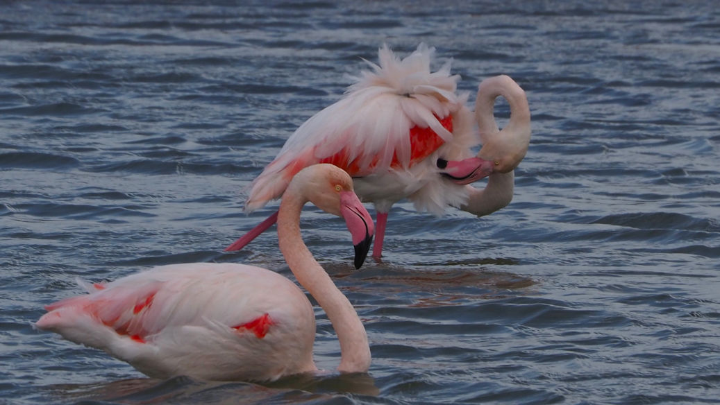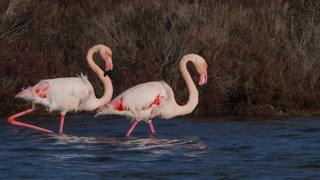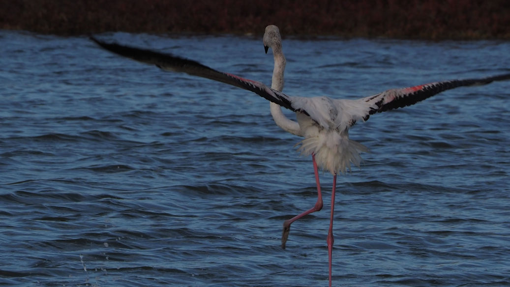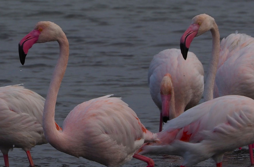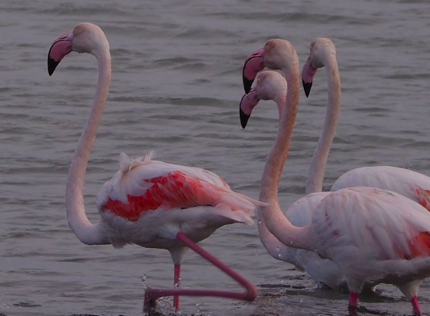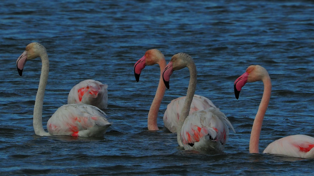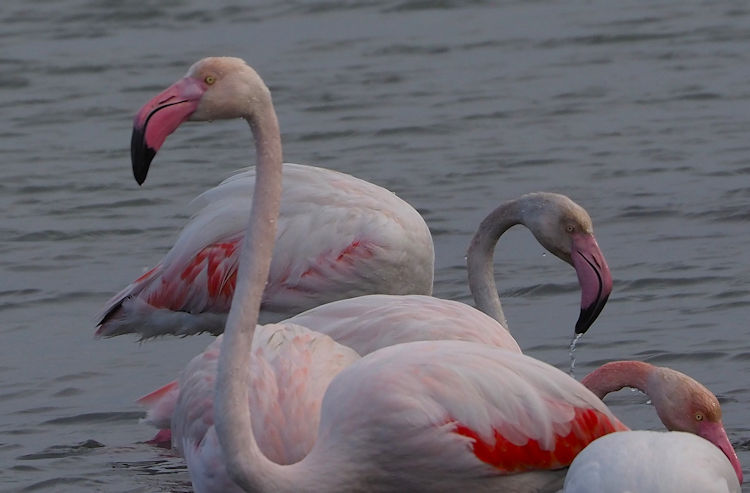Während unseres 2. Frühstücks beschließen wir weiter in Richtung Sonne zu fahren und landen schließlich auf dem Damm von Porto Botte bei Masainas. Die Wolken zaubern zauberhafte Stimmungen an den Himmel und eine kleine Gruppe Flamingos stolziert so lange vor unseren Kameras, bis die Sonne endlich herauskommt. So entstehen ein paar wundervolle Aufnahmen dieser schönen Tiere.