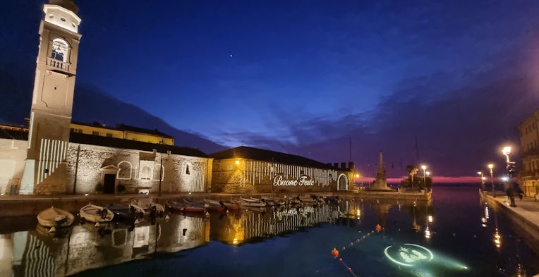 Wir verlassen die Bar, um schon mal Ausschau nach geöffneten Restaurants zu halten. Als wir zum See kommen ist es magisch…man hört leisen, angenehmen Gesang, alles ist noch weihnachtlich beleuchtet, eine Krippe erstrahlt im Wasser und das ganze wird umso magischer durch das wundervolle Abendrot am Himmel…ein perfektes Bild um sich von Italien, von Euch und dieser spannenden Reise zu verabschieden. Schön dass Ihr wieder dabei gewesen seid…Arrivederci, Ci vediamo e alla prossima!