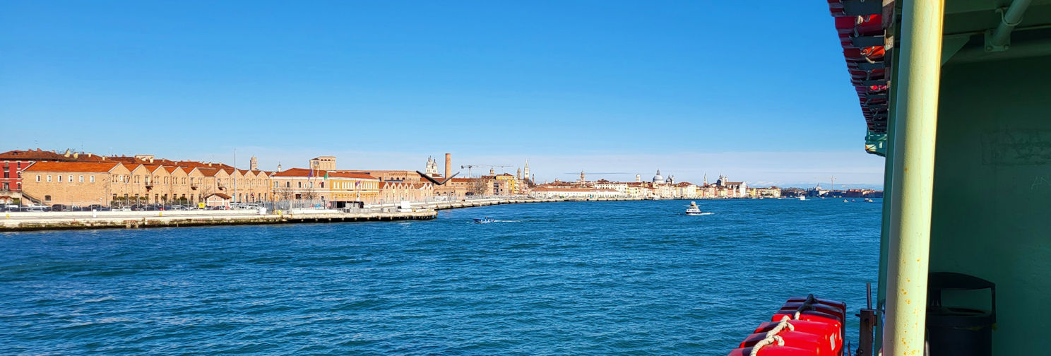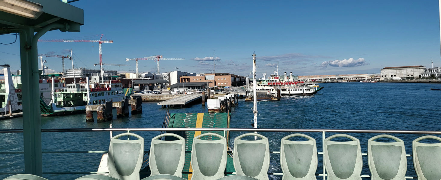 Via Fermata Giardini und einiger Eindrücke dieser Stadt erreichen wir nach kurzer Überfahrt wieder Lido di Venezia. Einen zweiten Cappuccino später, sitzen wir jetzt vor den vielen, vielen Bildern von heute morgen und sortieren, lachen und freuen uns auf die nächsten Maskenbegegnungen.