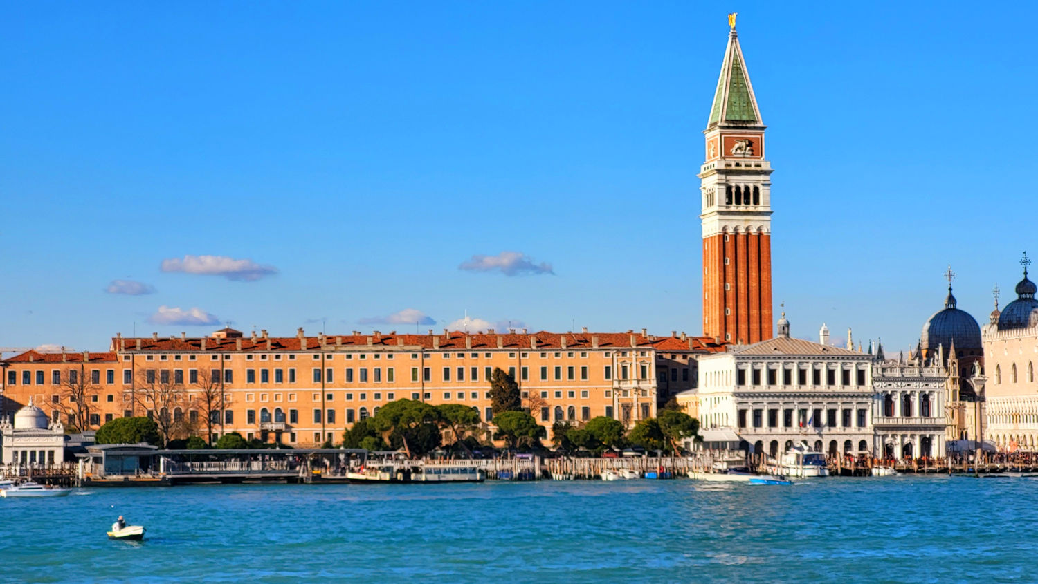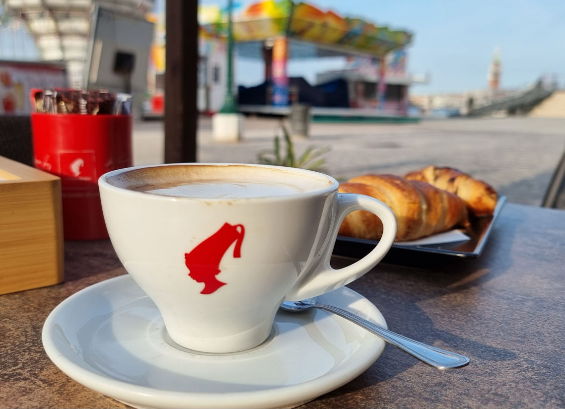 Fast mit dem Glockenschlag um 8 Uhr verlassen wir diese magische Kulisse, um in Richtung Haltestelle Giardini unseren ersten Cappuccino dieser Tour zu genießen. Die Sonne scheint. Verglichen zum letzten Besuch vor 2 Jahren ist es wunderbar warm und die mit dem Cappuccino ankommenden Cornetti sind es auch.