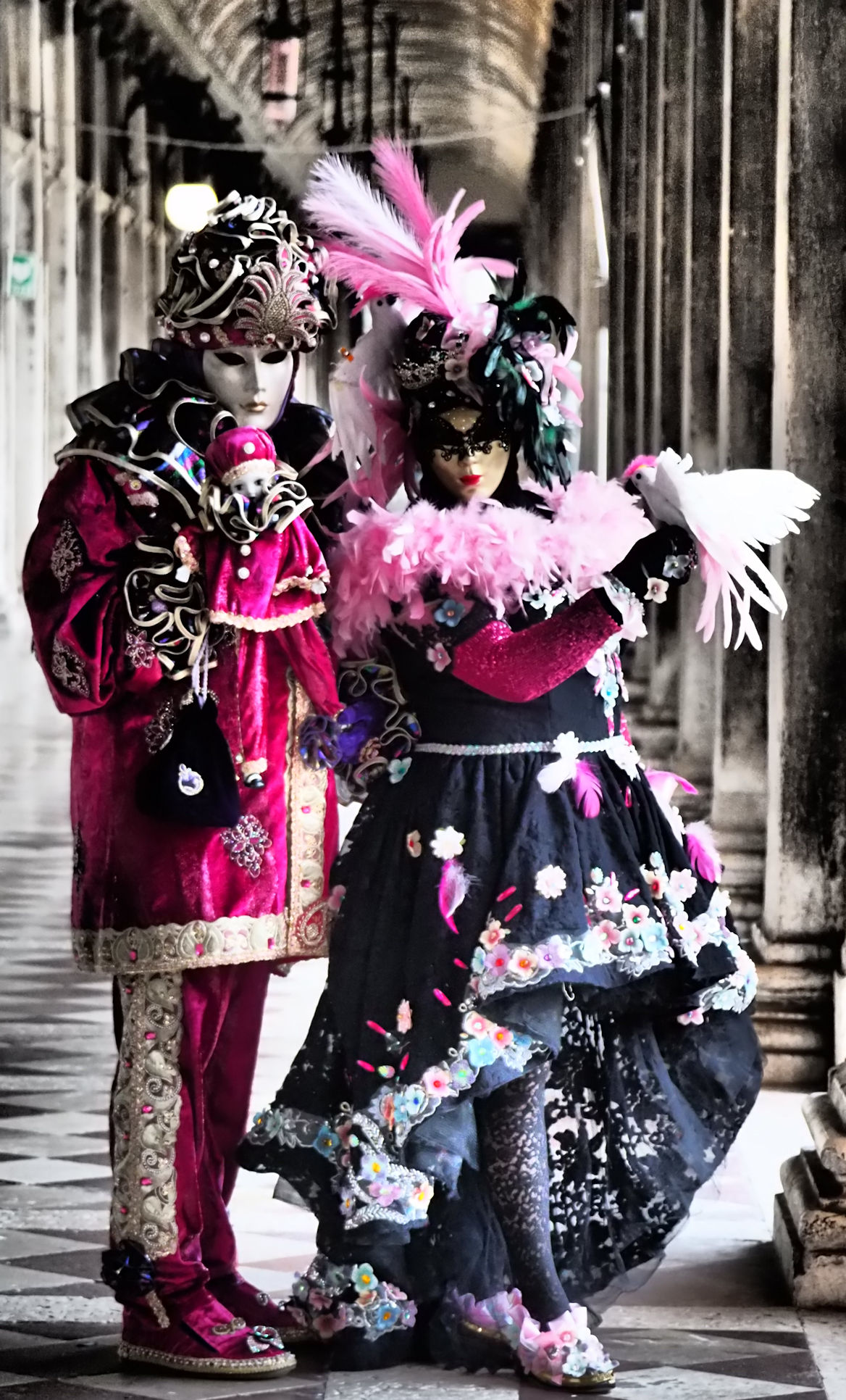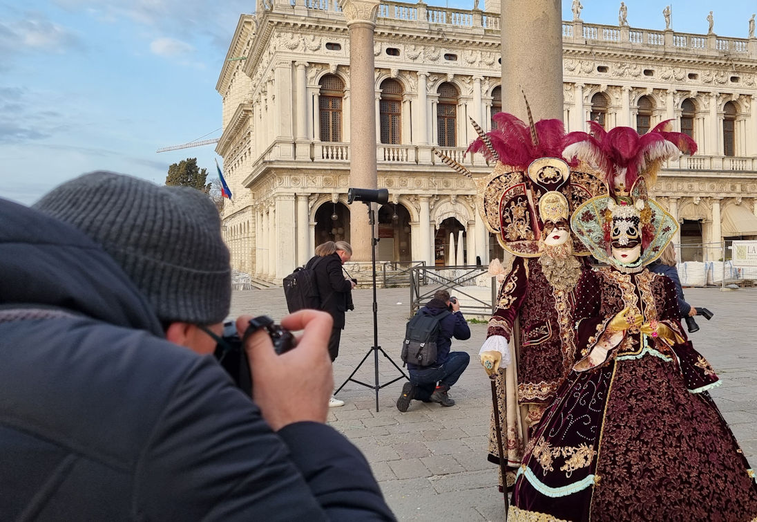 Unser 14er Vaporetto legt pünktlich um 5:36 Uhr ab und kurze Zeit später betreten wir La Serenissima. Noch schläft sie, diese magische Stadt. Ein paar Fotografen sind schon da und gerade mal eine einzige Maske. Ein bisschen enttäuscht sind wir im ersten Moment schon. Was dann aber passiert, ist einfach nur der Wahnsinn. Die letzten Male waren schon wirklich vieel Masken hier, aber heute….wir haben sie nicht alle fotografieren können…