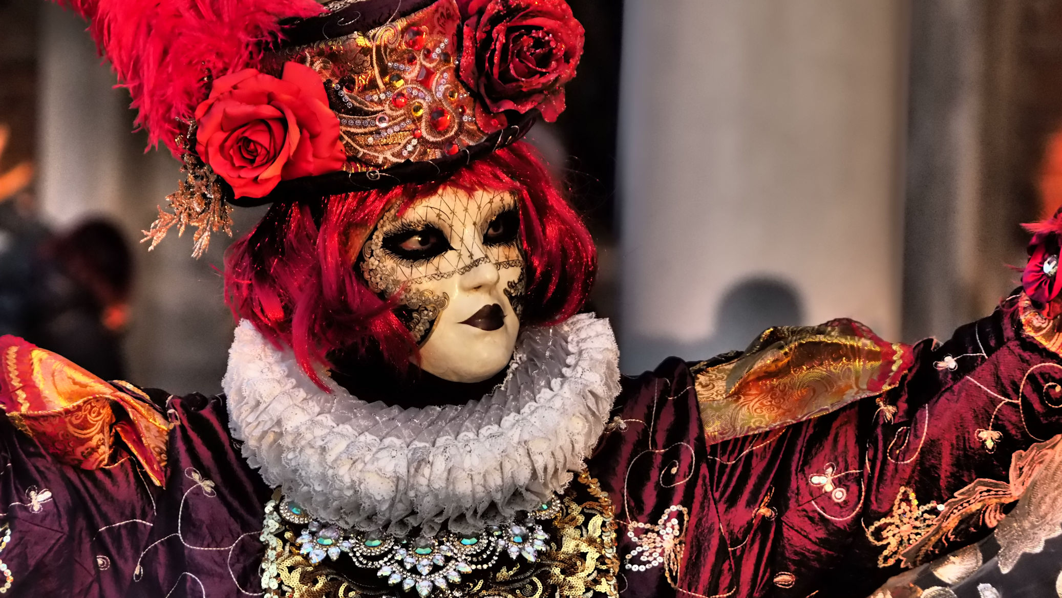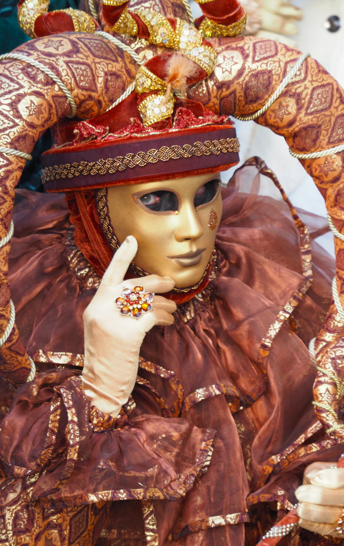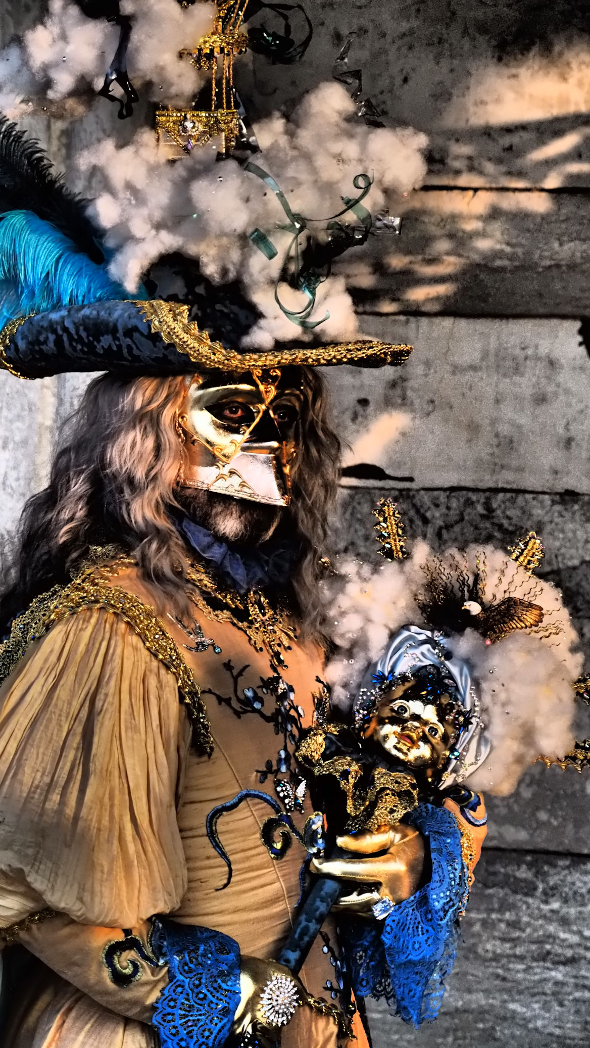 Wie oft sich Ulli heute morgen beim Blick in die Augen der einzelnen Protagonisten die Frage stellt: „Wer bist Du?“ weiß sie nicht mehr. Witzig ist es vor allem auch, die Gespräche einiger Masken untereinander mitzubekommen. Es geht um das Älterwerden, die täglich neu auftretenden Wehwehchen u.s.w….alles Dinge, die man hinter solch einer Pracht nicht vermuten würde.