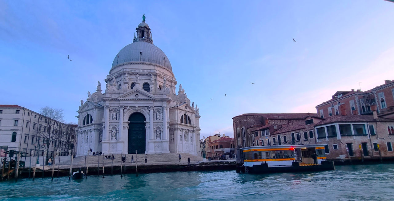 Wir geniessen im Vorbeigehen den Blick auf den roten Abendhimmel mit Villa Stucky im Vordergrund und schon wenig später verschwinden wir wieder in einer der zauberhaften und fast menschenleeren Gassen hier in Dorsoduro.