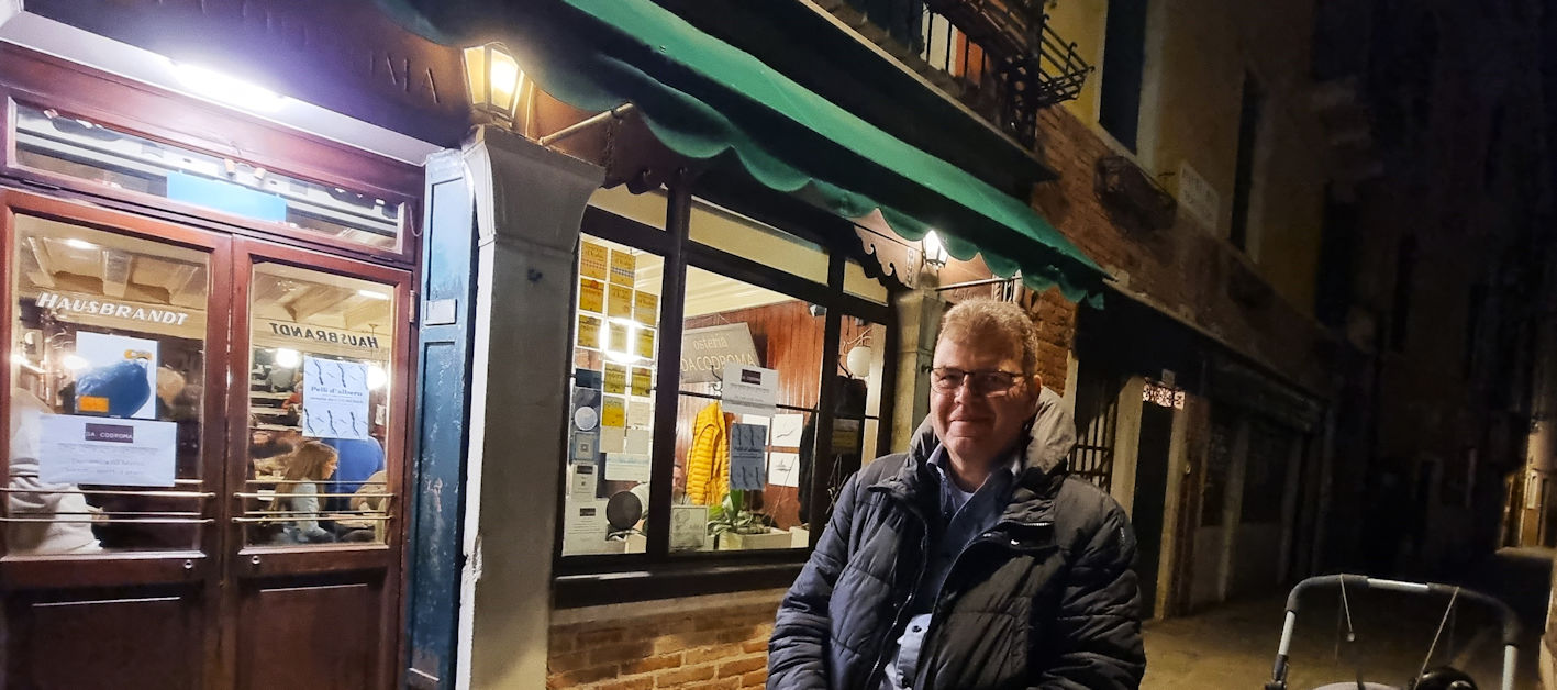 Vor einer kleinen Osteria legen wir eine Pause ein und genießen einen Chardonnay aus dem Friaul. Wir erleben ein ganz anderes Venedig als noch heute Morgen an San Marco und Umgebung.