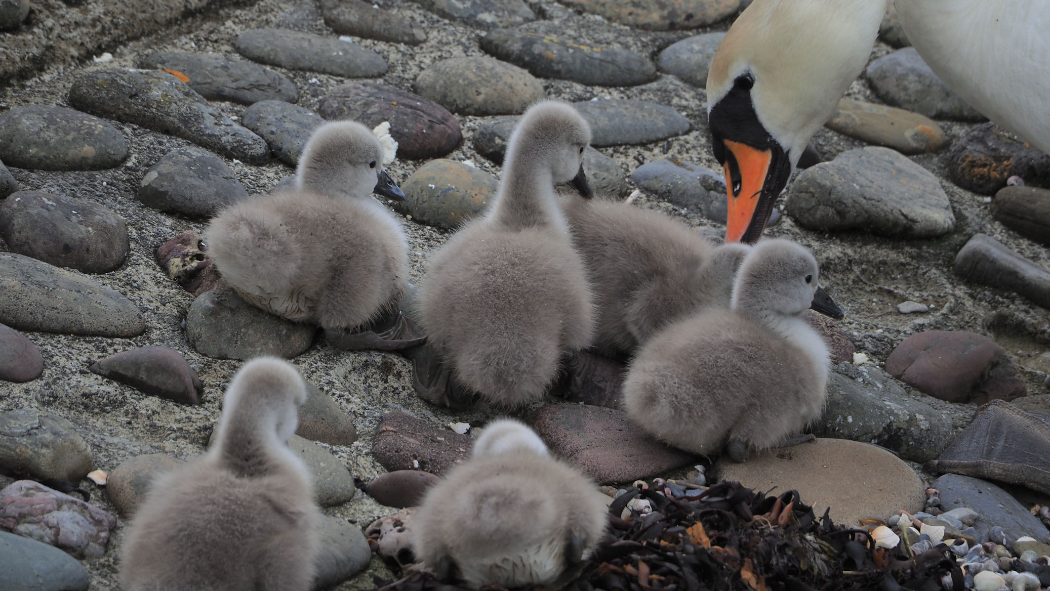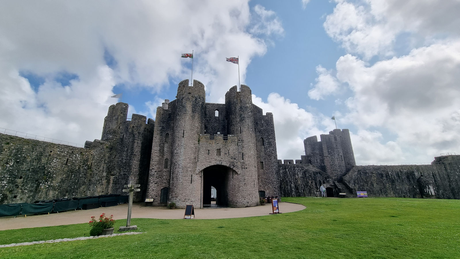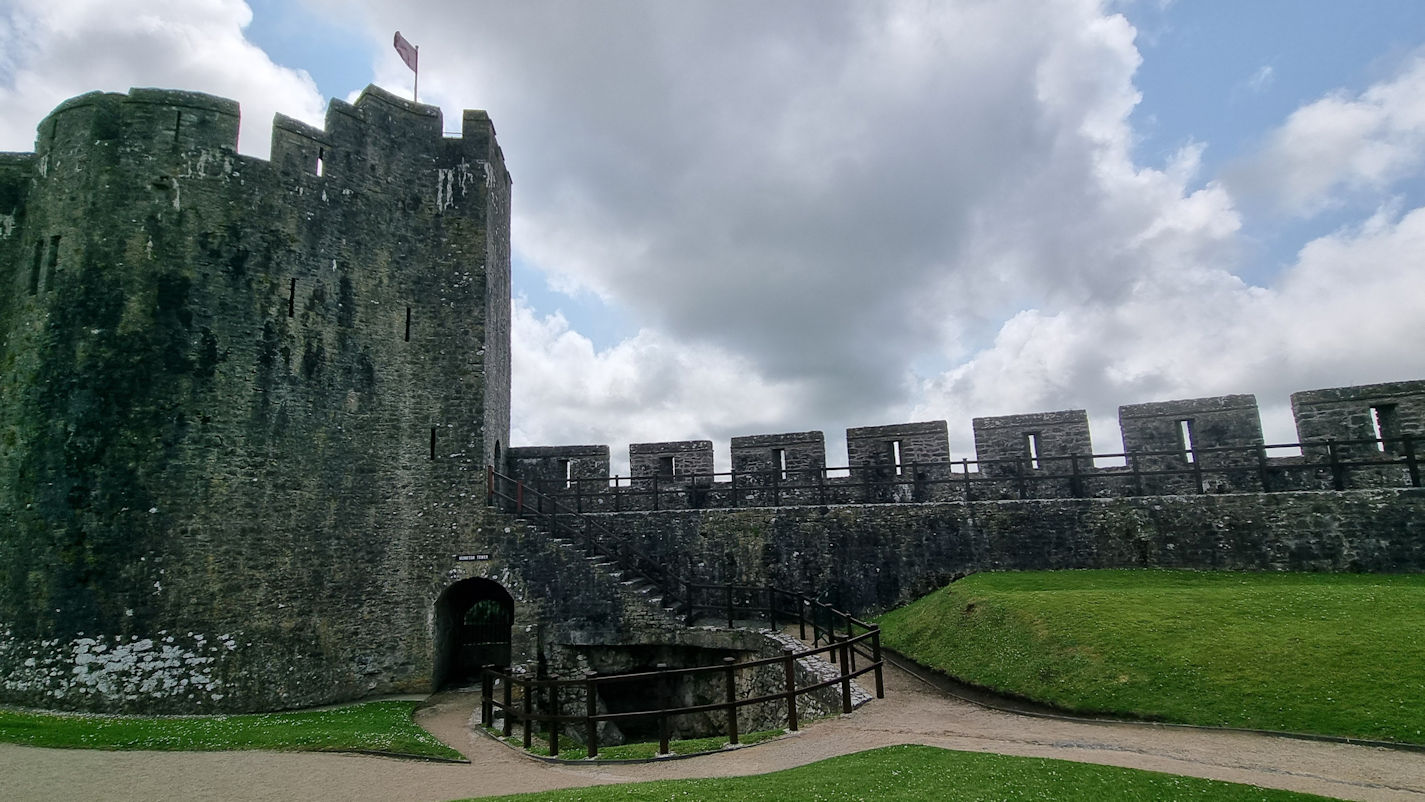 Zurück am Stellplatz sind wir beim Einlaufen der Irish Ferry live dabei und erleben eine Schwanenfamilie bei einem ihrer ersten Ausflüge, sowie wild durch die Luft schließende Möwen. Es entstehen ein paar schöne Fotos bevor es weiter zu Pembroke Castle geht. Hier funktioniert das Online-Parkticketziehen übrigens hervorragend.