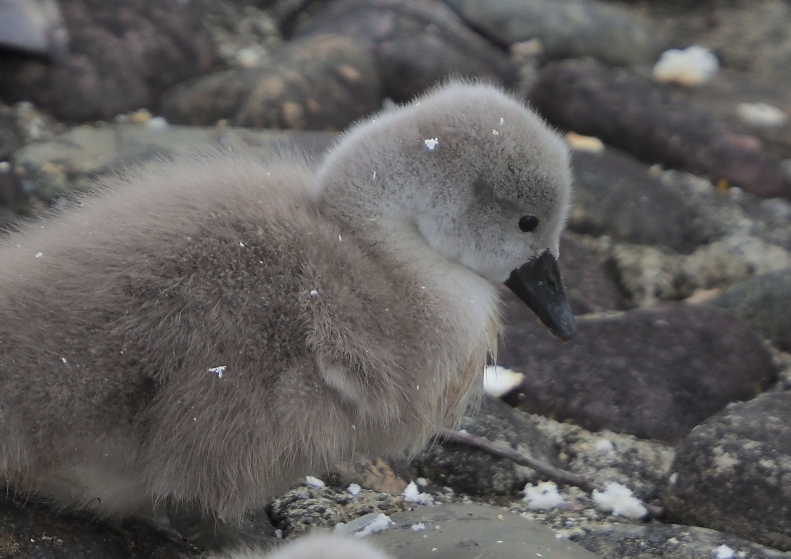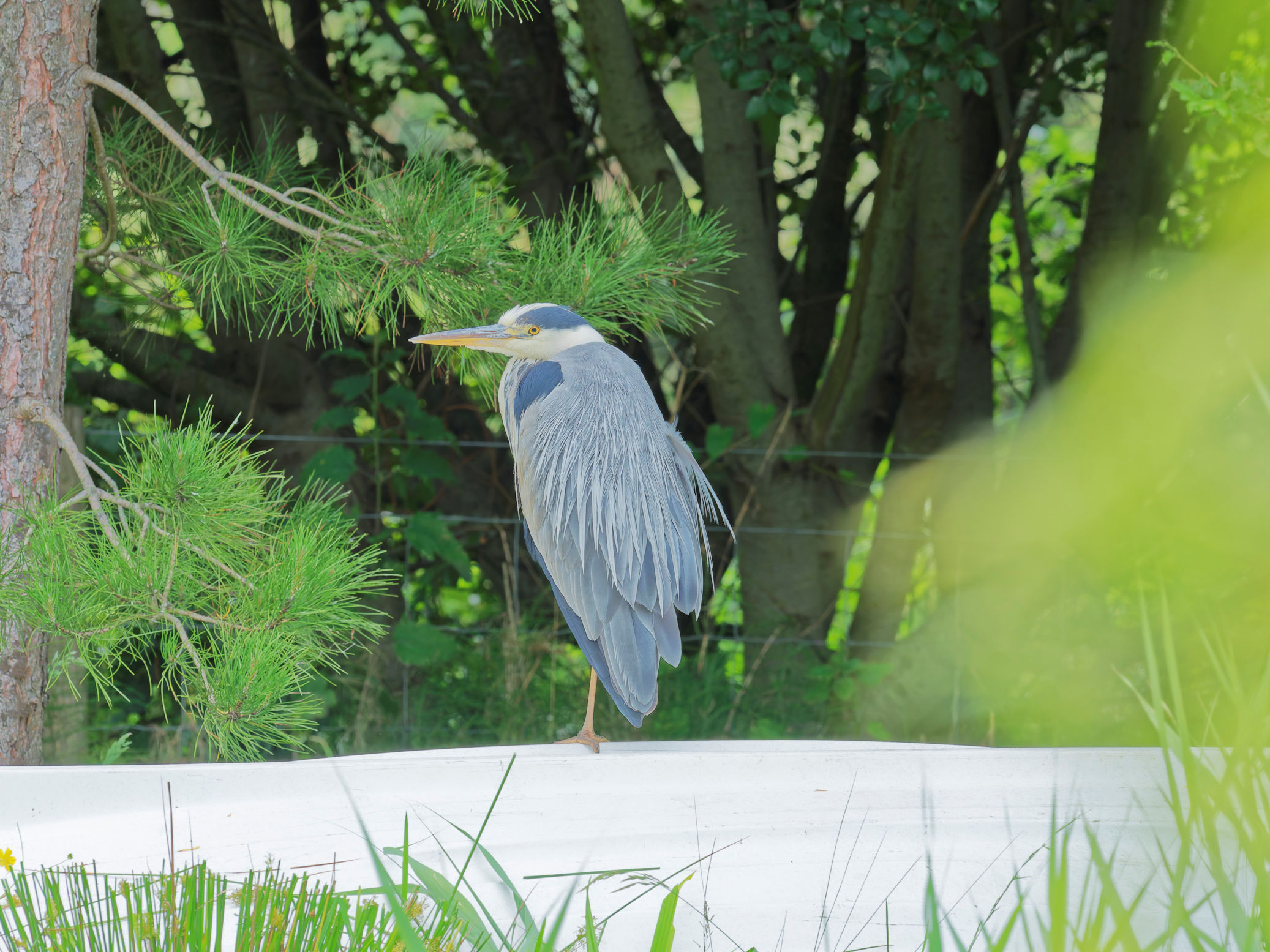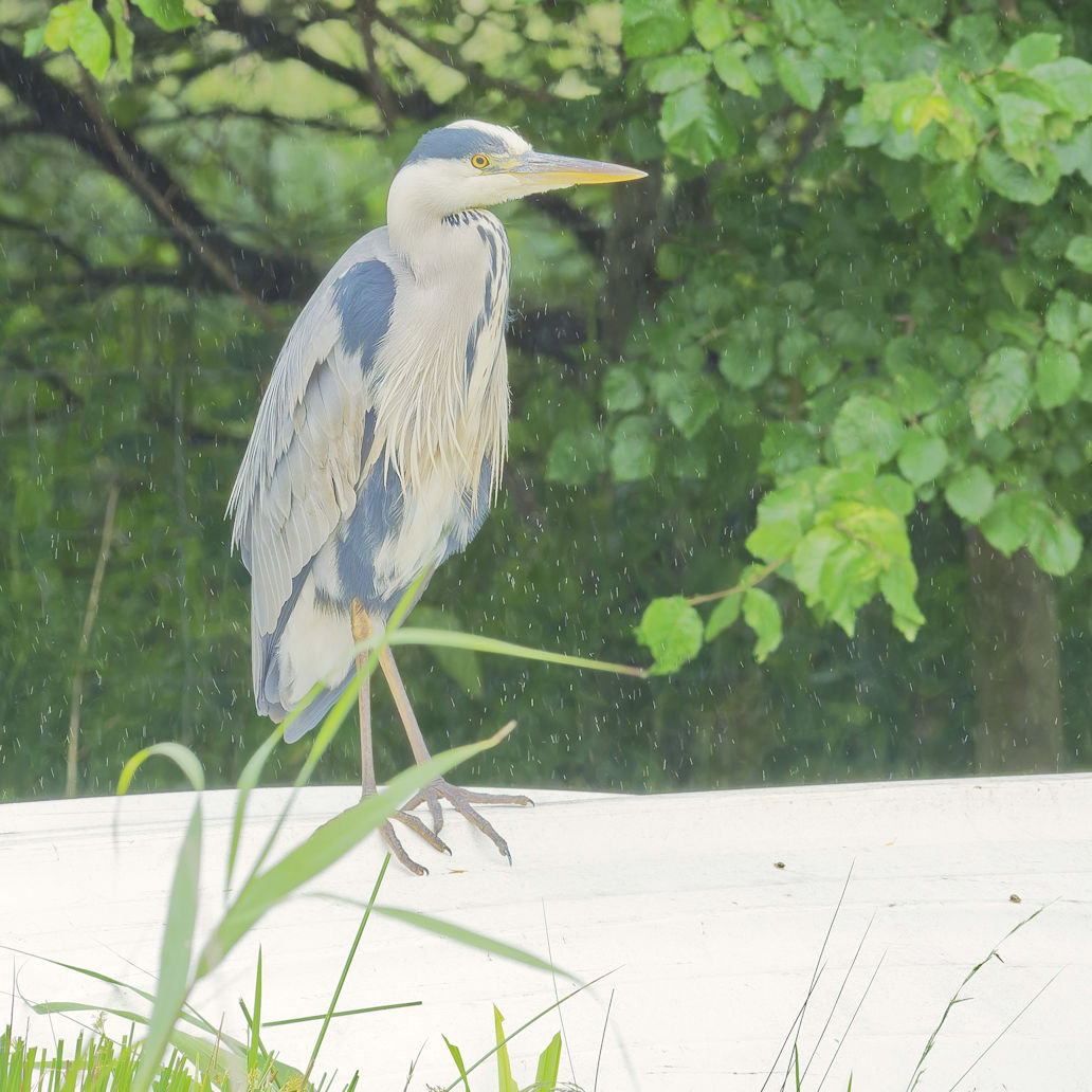 Blesshuhnbaby und Eltern sind schon aktiv, der Reiher scheint hier übernachtet zu haben und dunkle Wolken nach dem Gewitter wabern am Himmel. So beschließen wir schon beim Aufstehen, in Richtung Pembrokeshire weiterzufahren.