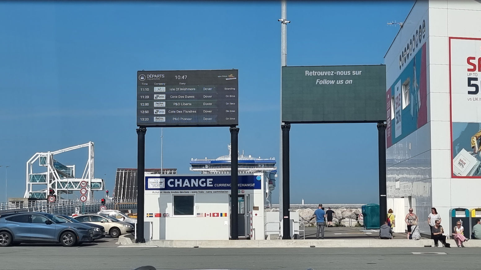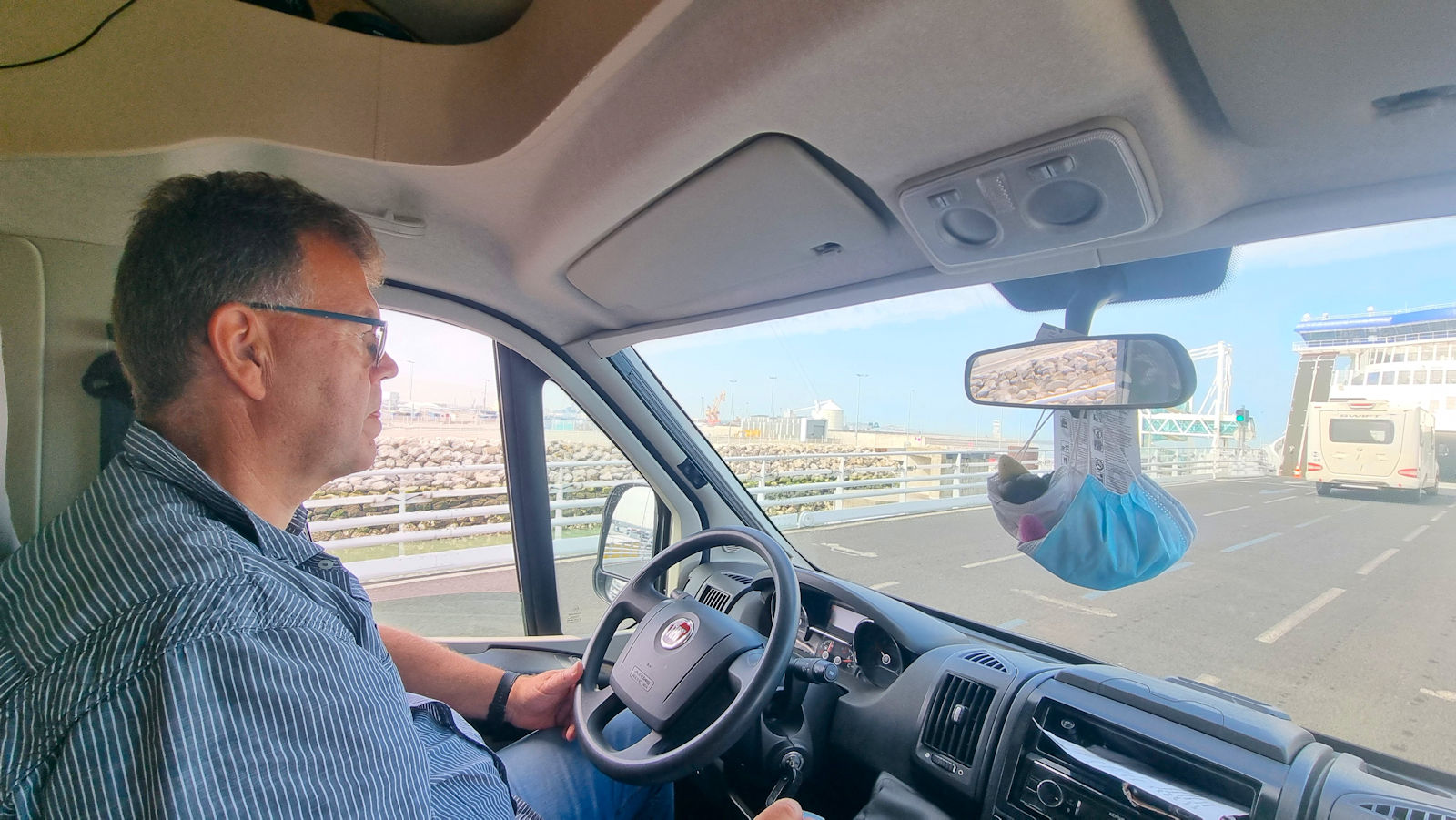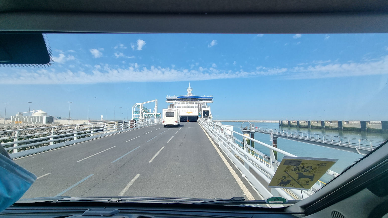 Auf das Fellnasengassi folgt der erste Bialetti der Tour, dann eine „Enteintagsfliegung“ des Womos – vor allem der Frontscheibe – und los geht es in Richtung Einkauf zu Auchan. Gefolgt von einem Tankstopp stehen wir etwa 10 Minuten später am Check-Inn bei P&O Ferries.