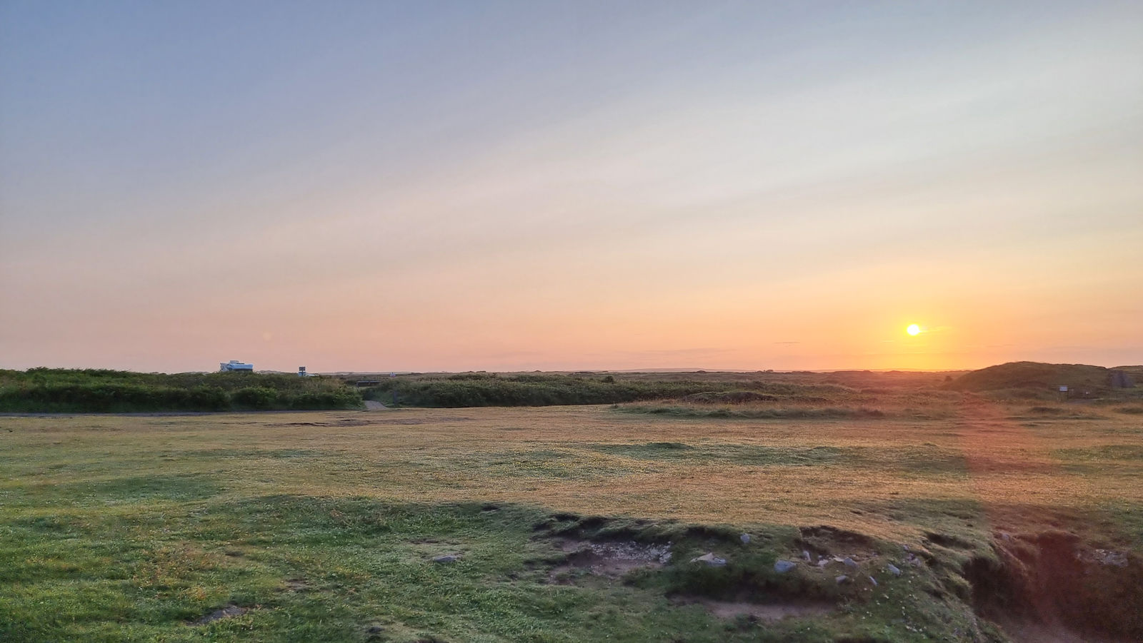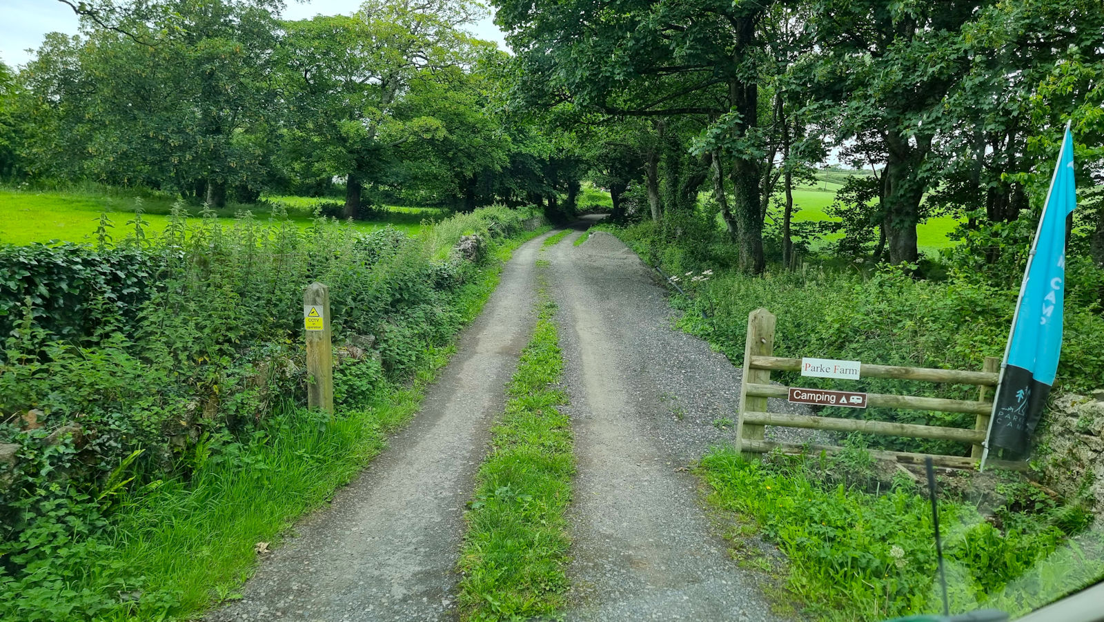 Erst nach 6 Uhr trauen wir uns die Single-Track-Road zurückzufahren in der Hoffnung, keinen Gegenverkehr zu haben. Und wir haben Glück. Am Pub ist es mal etwas eng, denn dieser ist gut besucht und dann erreichen wir unseren Campingplatz Parke Farm, den wir für den heutigen Abend ausgesucht haben.