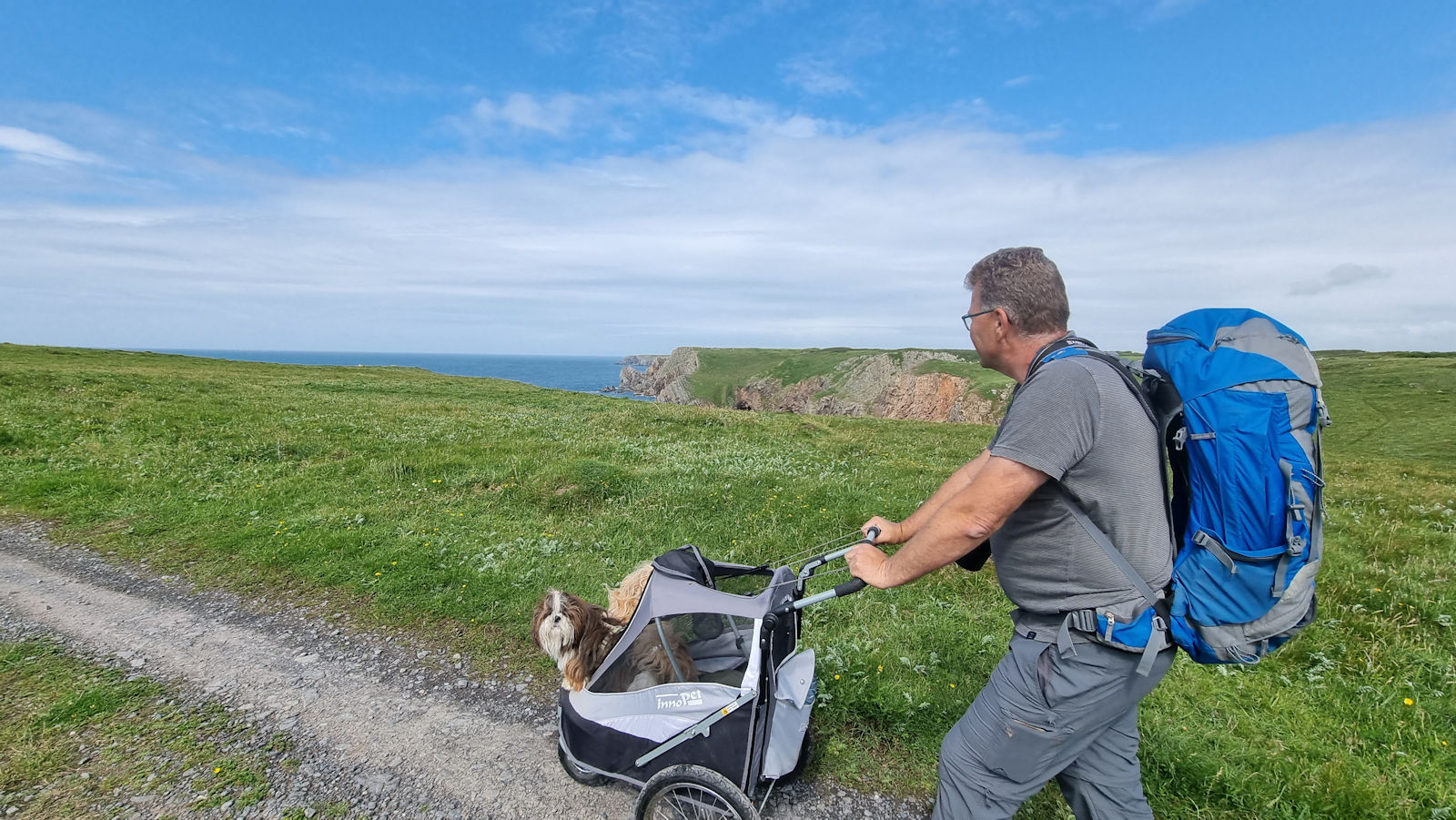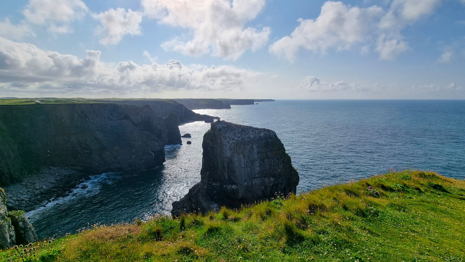 Wir genießen den Bialetti und unser Frühstück und laufen fast pünktlich um 7 los in Richtung Elegug Stacks, den Vogelfelsen. Der Weg dorthin ist nicht wirklich das, was man traumhaft nennt, aber die Ausblicke auf die schroffe Küste und die schönen Buchten sind traumhaft schön.