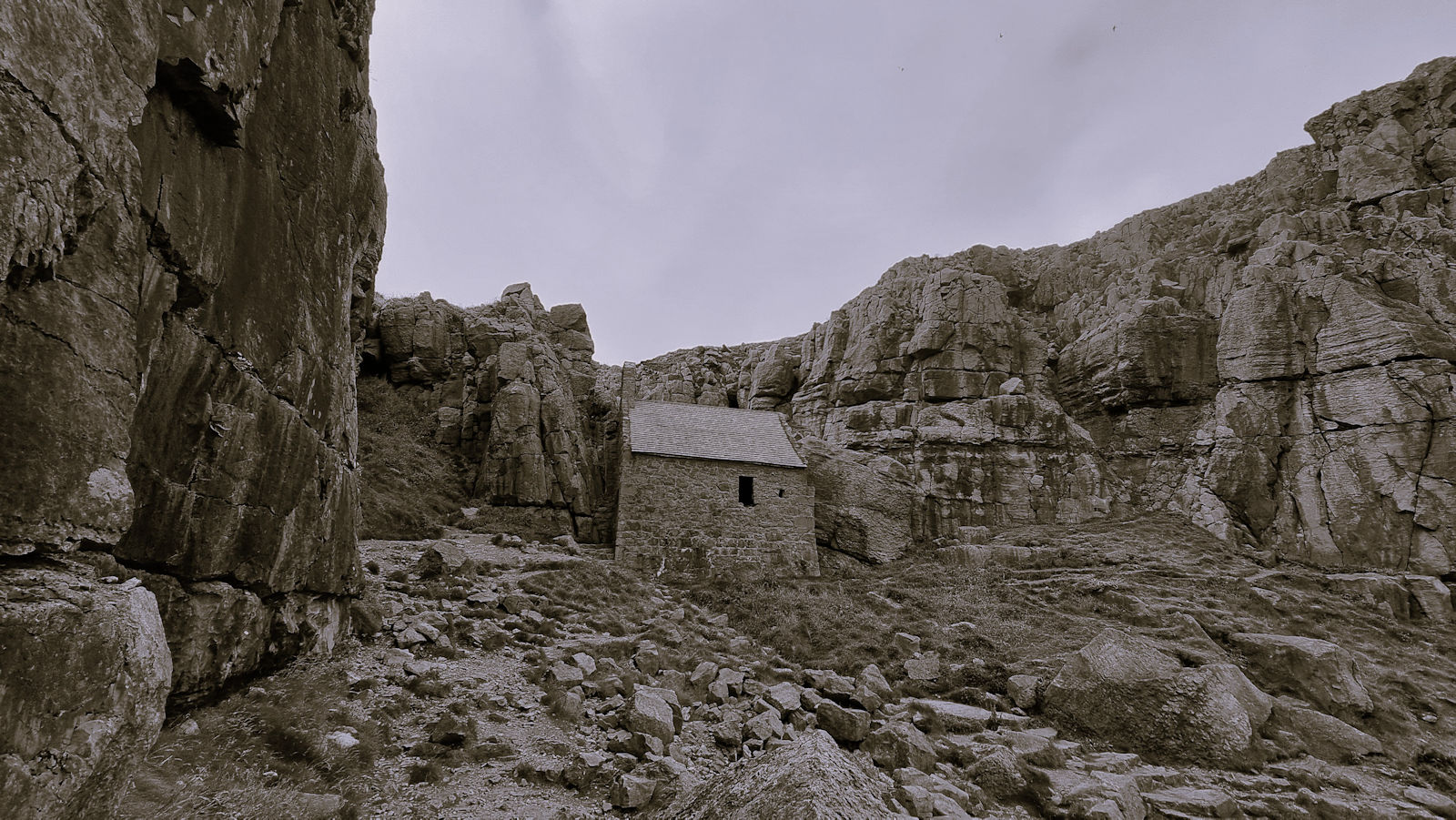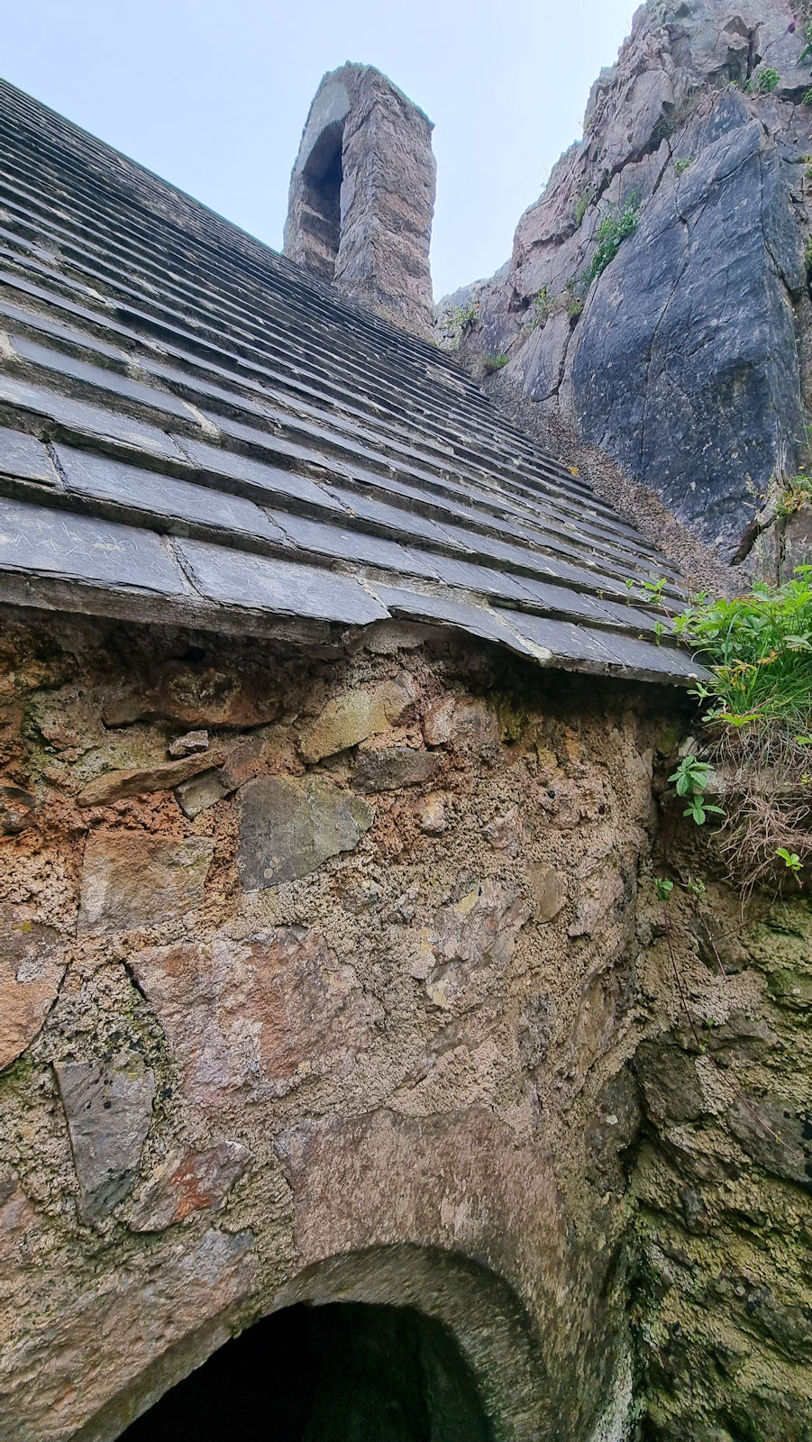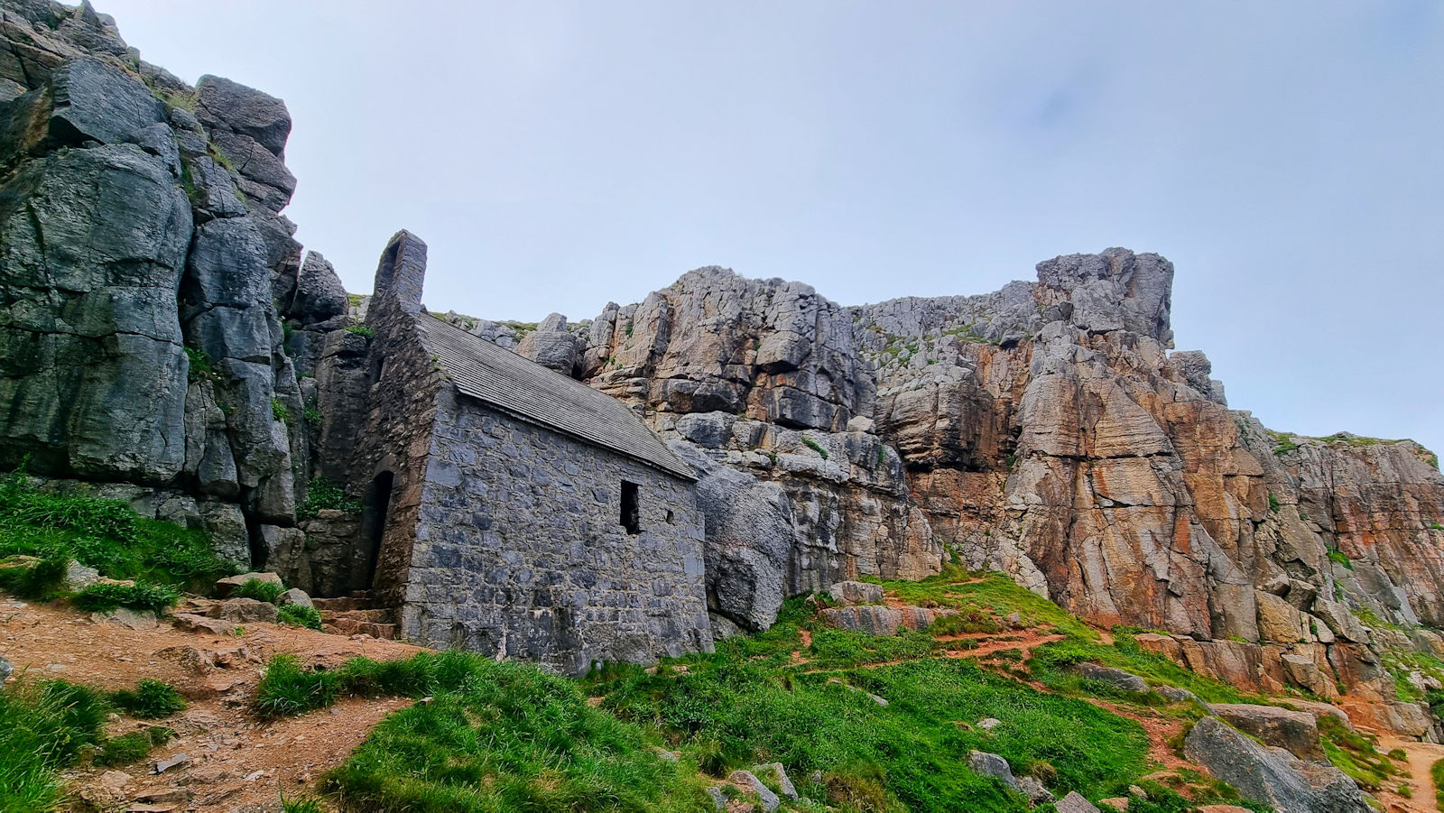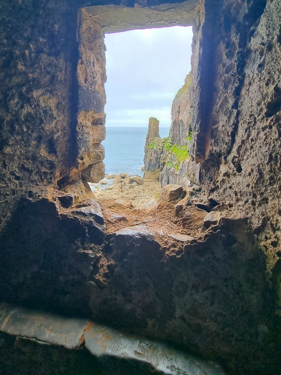Ein kurzer Ausflug führt Ulli noch zur St. Govans Kapelle, die jetzt im Grau ein wenig trostlos aussieht. Aber deshalb muss Ulli die Kapelle und die Bucht nur mit 8 kreischenden Mauerseglern teilen. Irgendwie schon ein magischer Ort.