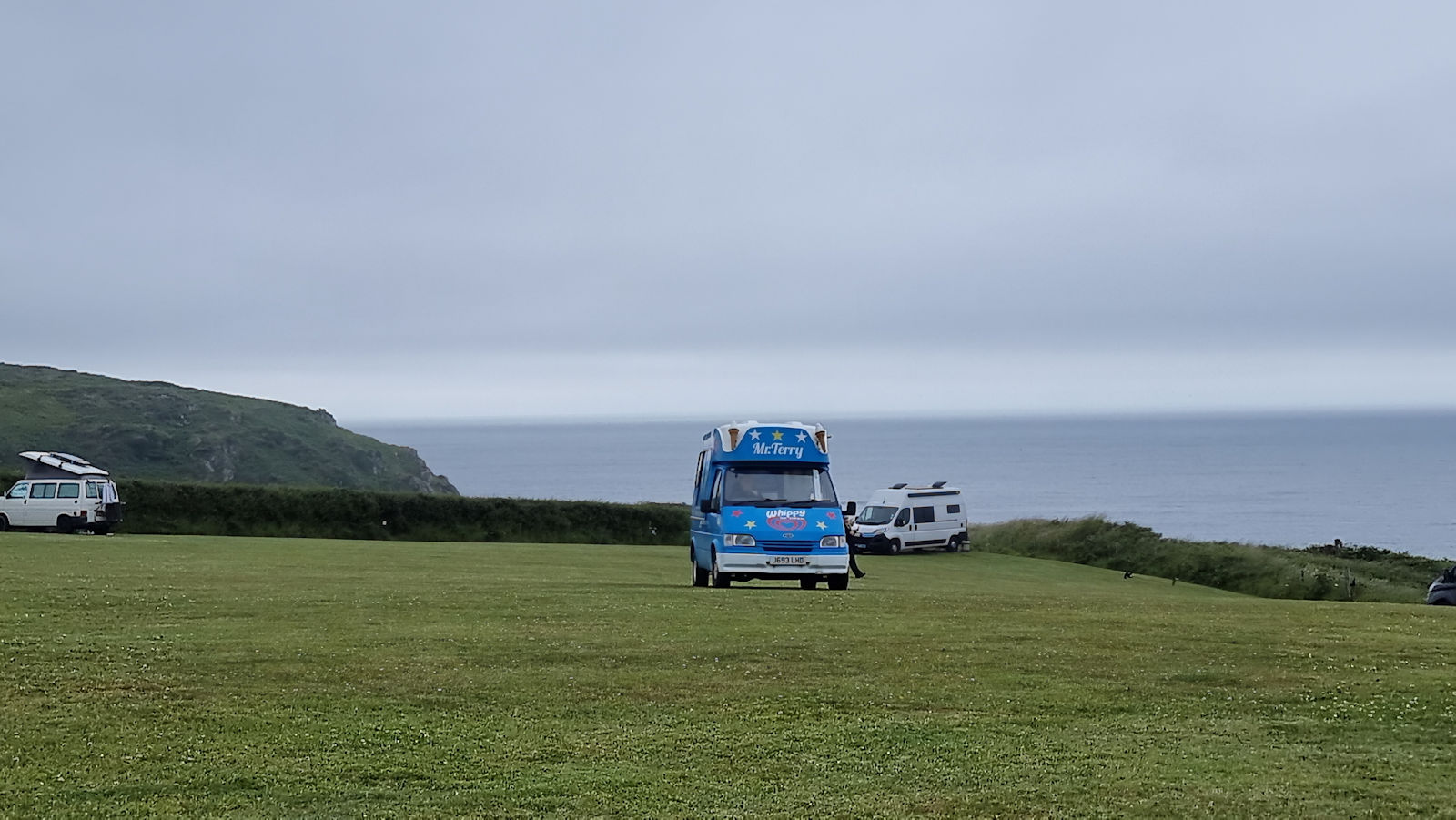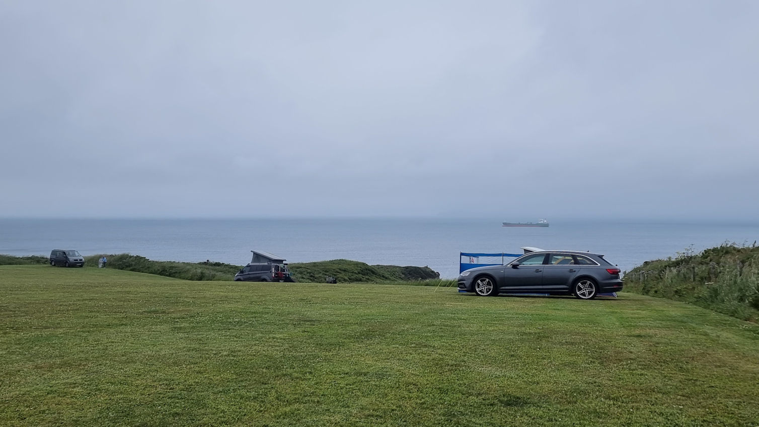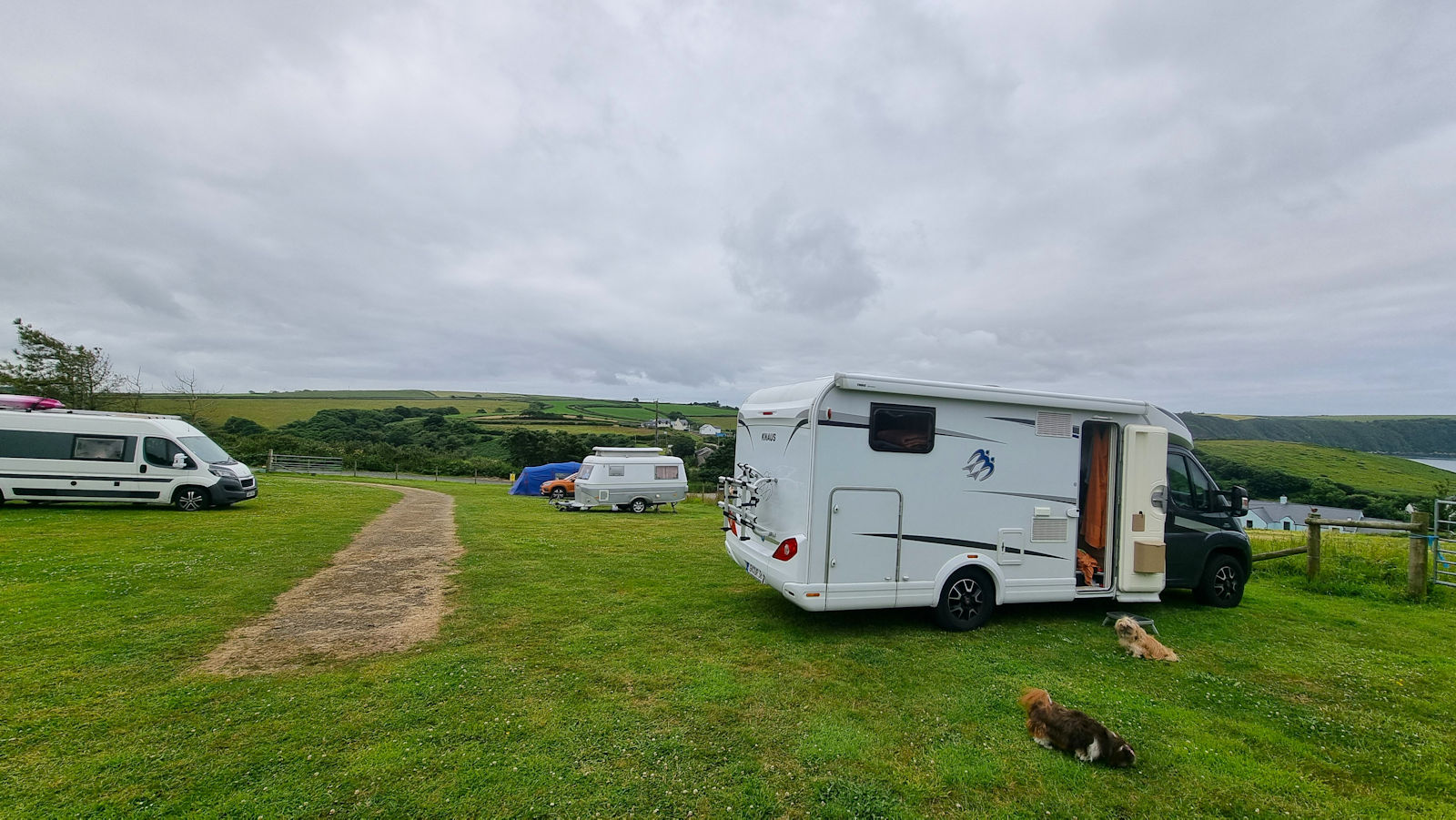 In Marloes stoppen wir bei Camping Foxdale, reservieren den letzten Platz für unsere noch bestehende Lücke vom 20. auf 21. Juni und dann geht es auch schon weiter in Richtung Westhook Farm. Um kurz nach 12 parken wir auf der Wartewiese ein und genießen ein kleines Mittagessen.