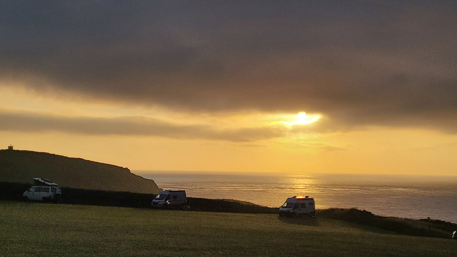 Ein echter Urlaubstag mit Vorfreude auf die nächsten Tage. Wir werden die Vogelinsel Skomer besuchen und die abendlich zurückkehrenden Sturmtaucher hoffentlich sehen. Bei einem Guinness genießen wir den Sonnenuntergang und liegen wenig später eingekuschelt in unsere warmen Decken im Womo…