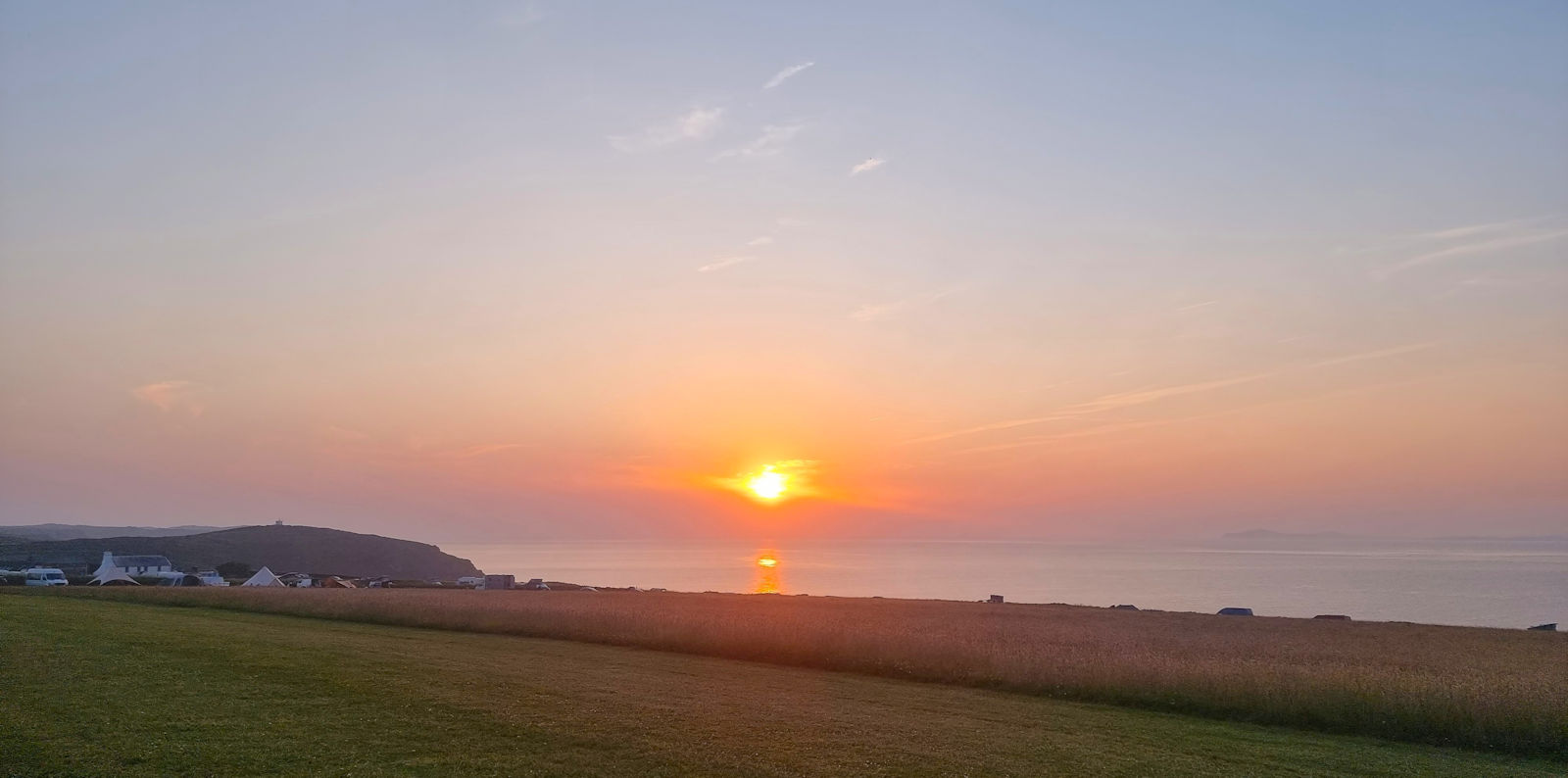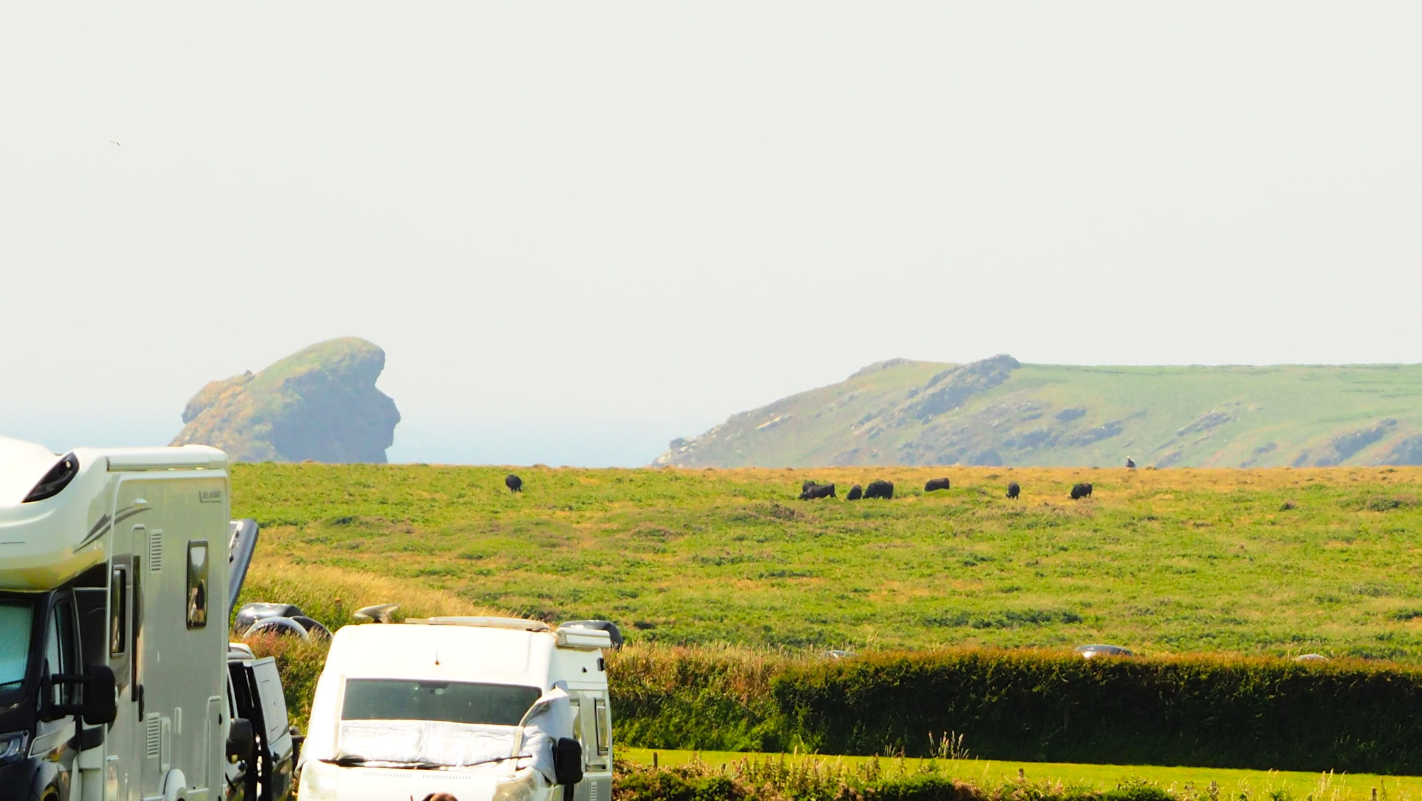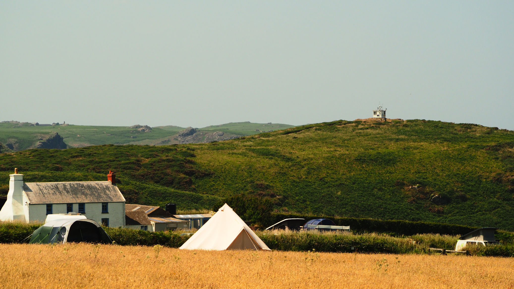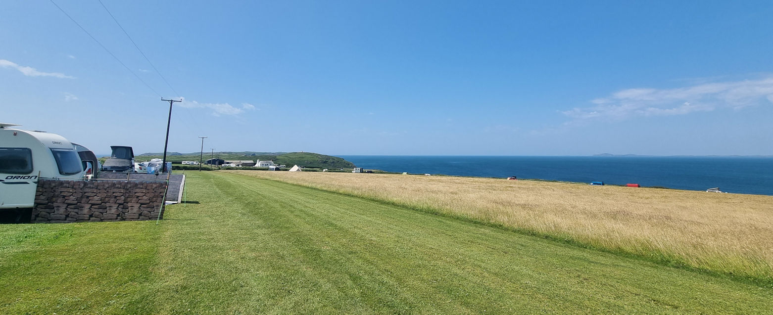 Erst um 9 Uhr verlassen wir die Waagerechte. Der ganze Camping scheint bereits wach zu sein und wir sind es jetzt auch endlich. Wir nutzen den wolkenverhangenen Himmel, um mit dem Bearbeiten unserer Fotos der Skomer-Bootstouren zu beginnen.