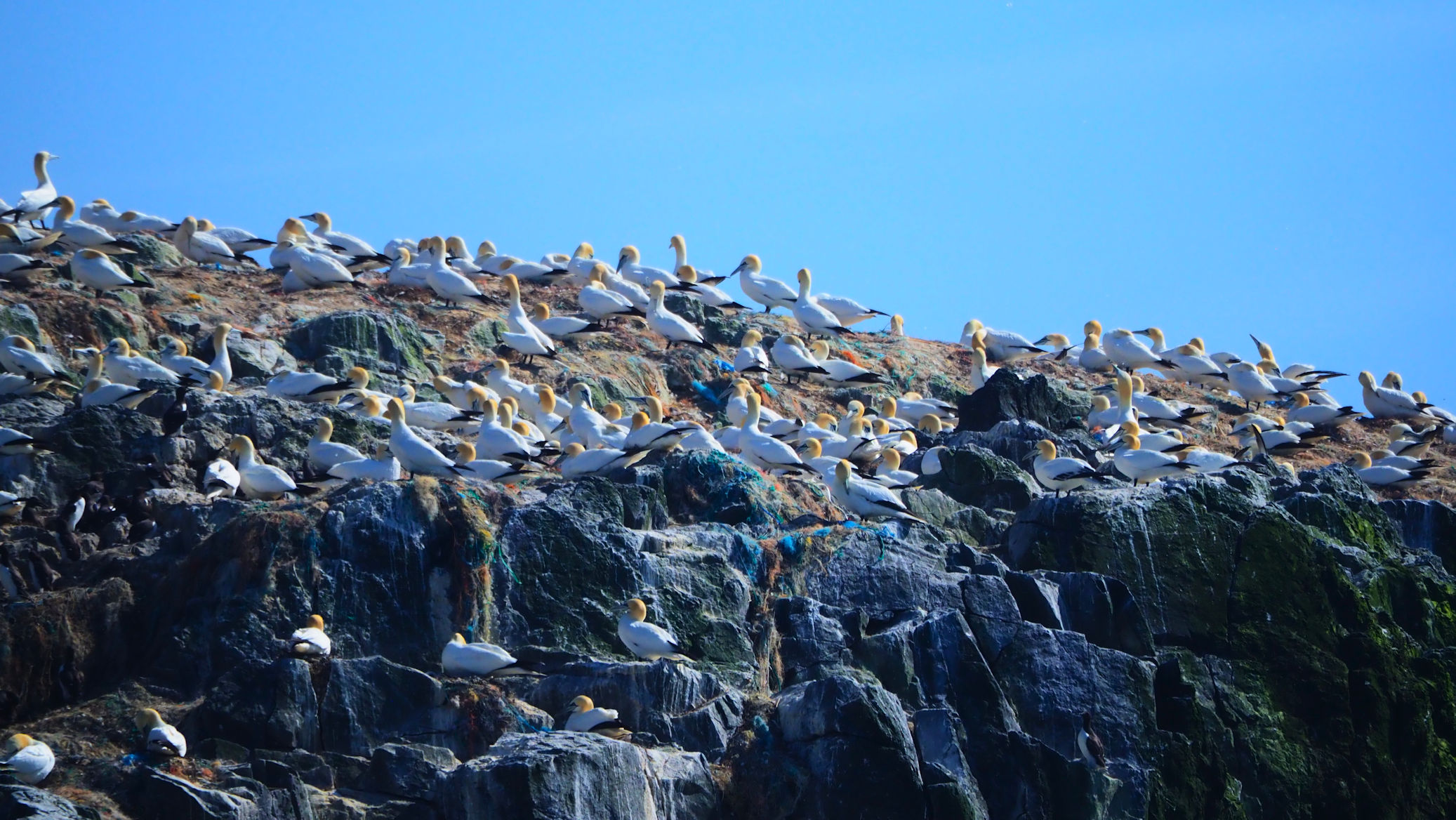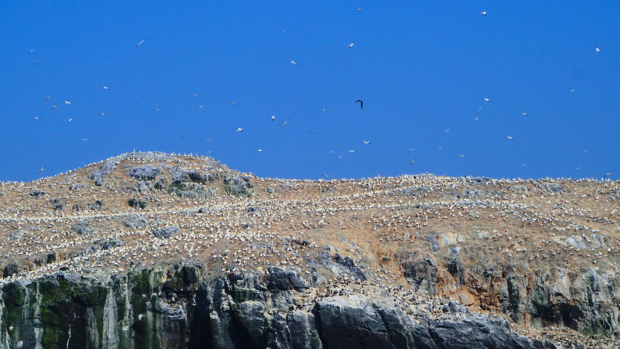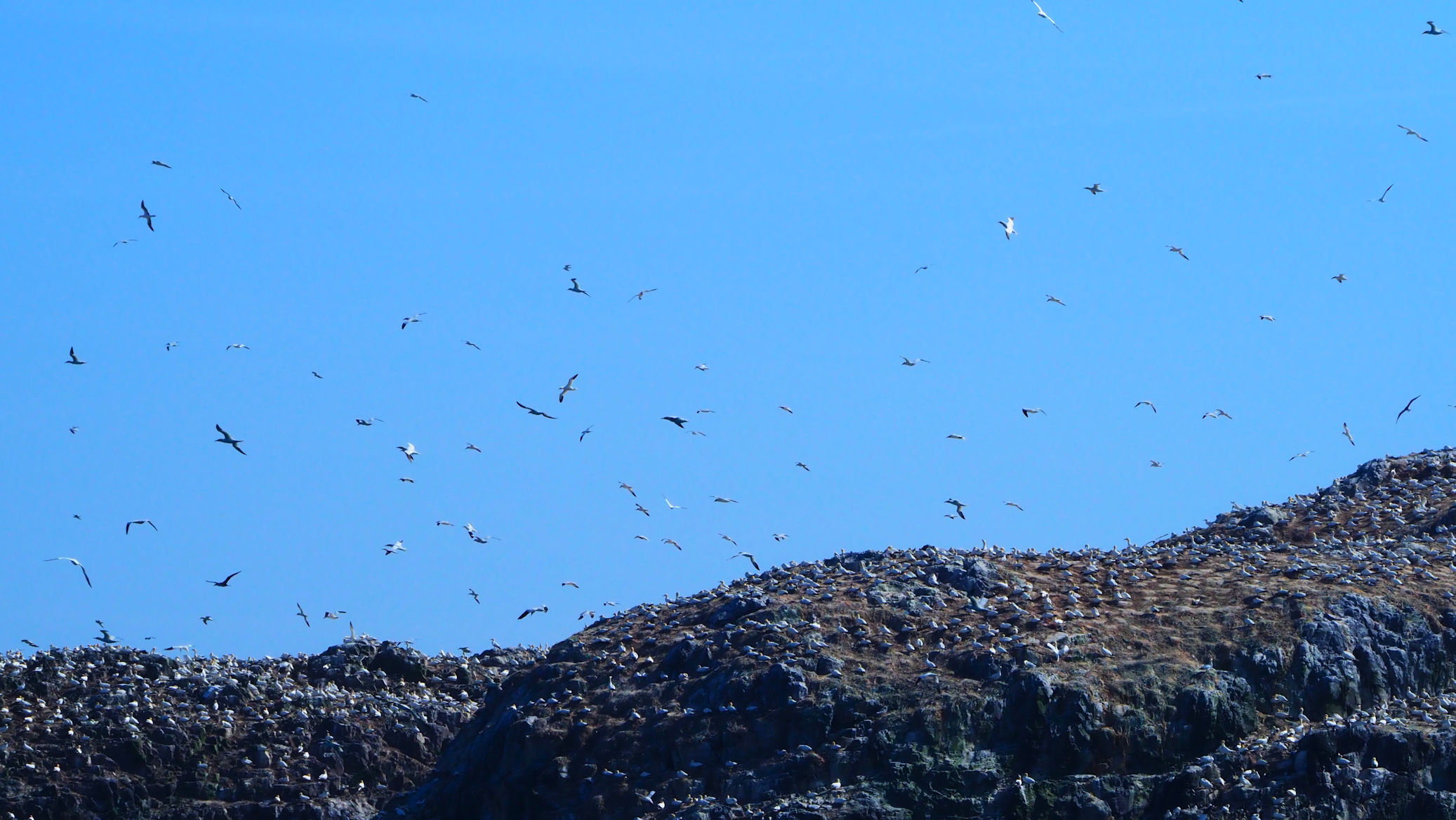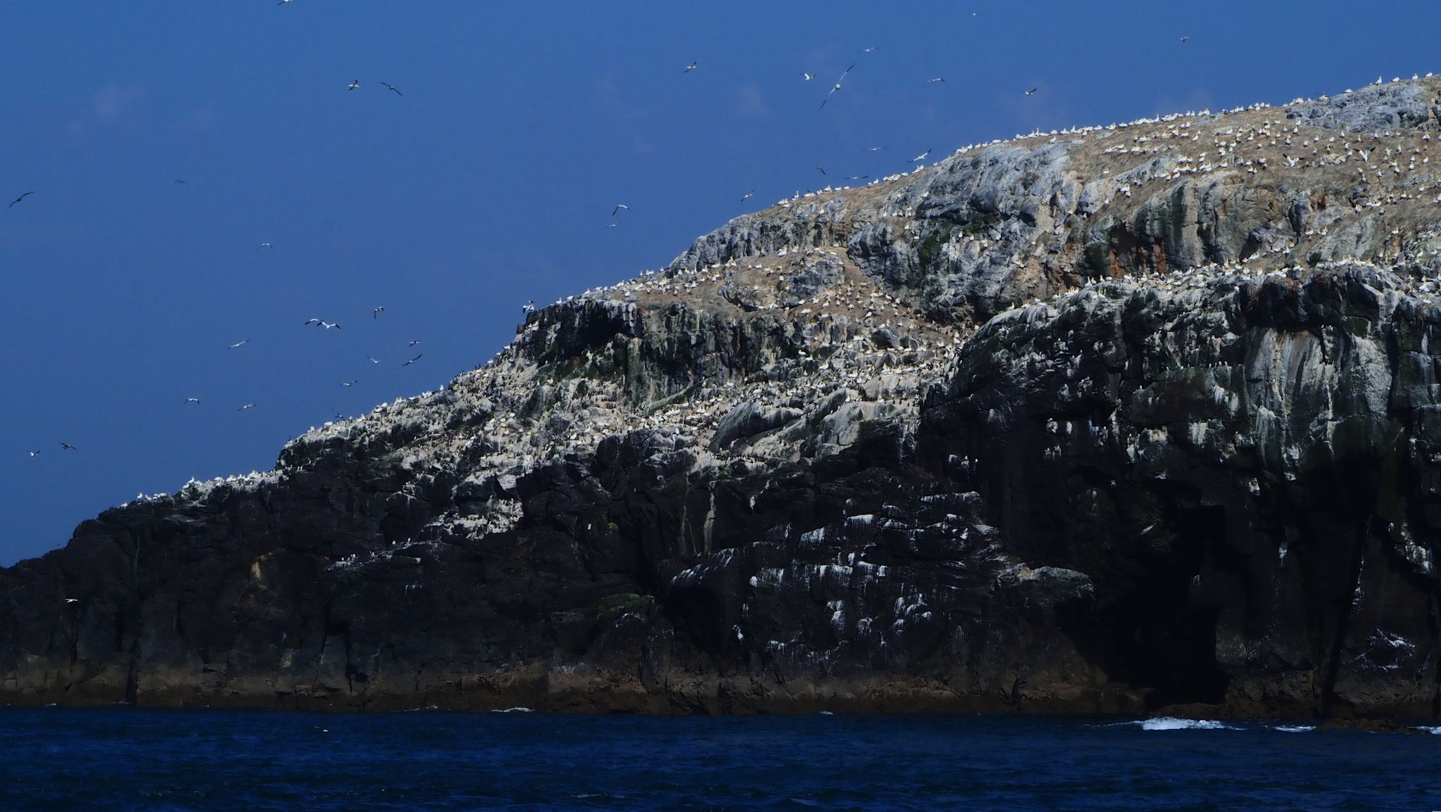 Die Insel ist bereits von Weitem zu erkennen und zu riechen, ja es stinkt schon. Sie ist weiß der vielen Basstölpel und derer Hinterlassenschaften wegen.