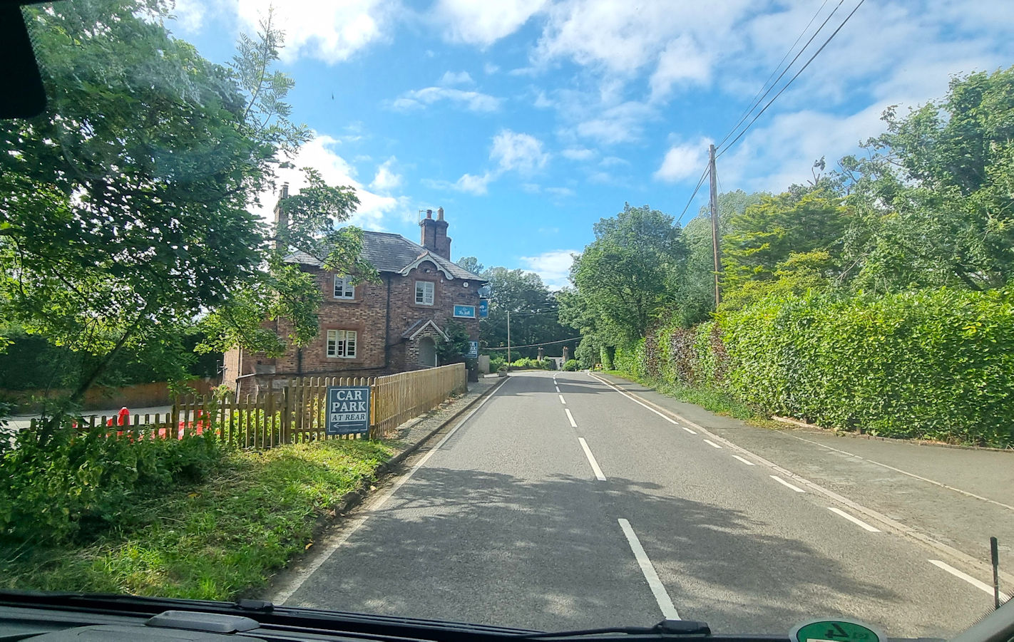 Es geht weiter zum Parkplatz des Pubs The Mill in Leighton und wir parken nahezu eben auf dem dazugehörigen Parkplatz ein.