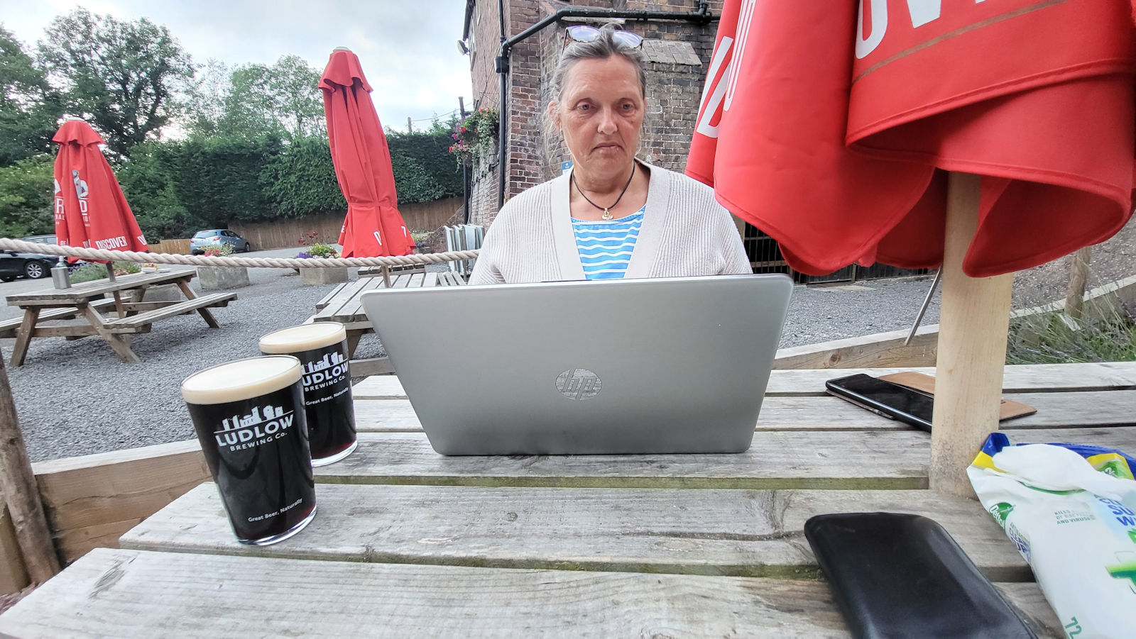 Als Ulli einen Tisch für`s Abendessen reservieren möchte, erfährt sie, dass die Küche heute geschlossen hat und so ist der Plan: Ale vom Pub, Abendessen aus dem Wohnmobil und Sitzen im Biergarten. Pub mal anders eben.