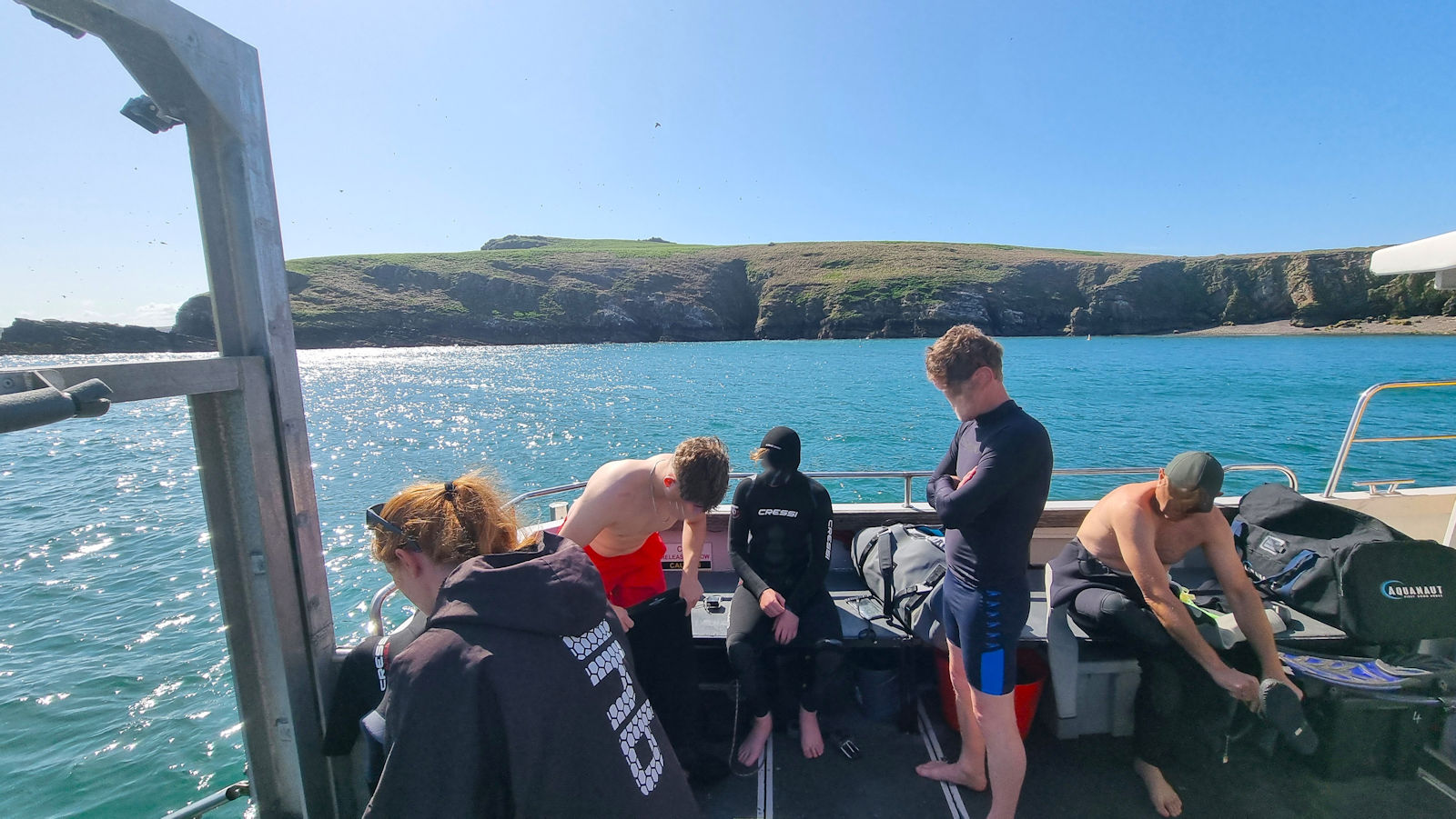 Treffpunkt ist um halb 9. Die Sonne scheint, es sind wunderbare Wolken am Himmel und alle Teilnehmer sind pünktlich. In der geschützten Bucht von Martin’s Haven wellt es nur leicht. Doch was fehlt ist das Boot.