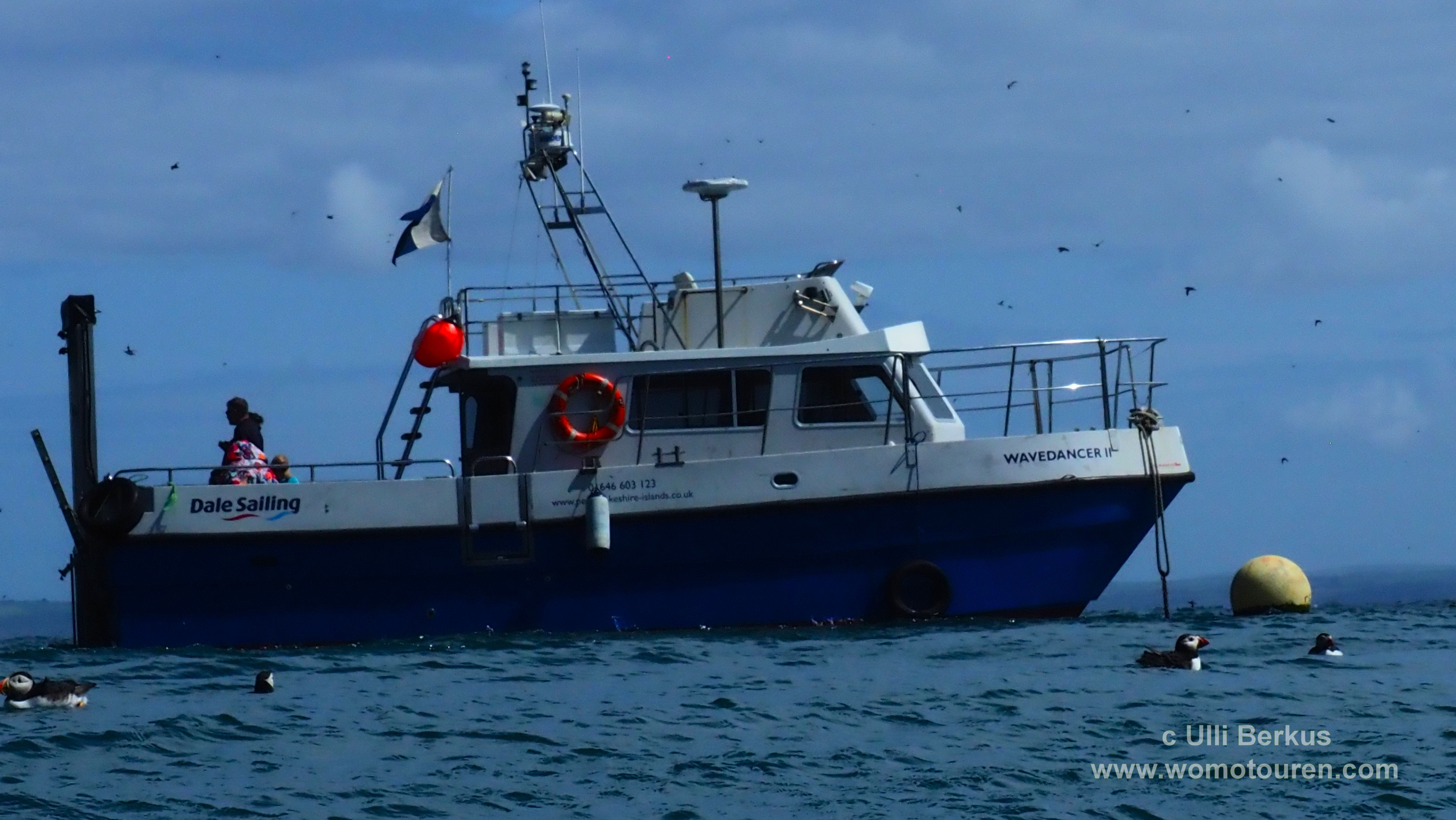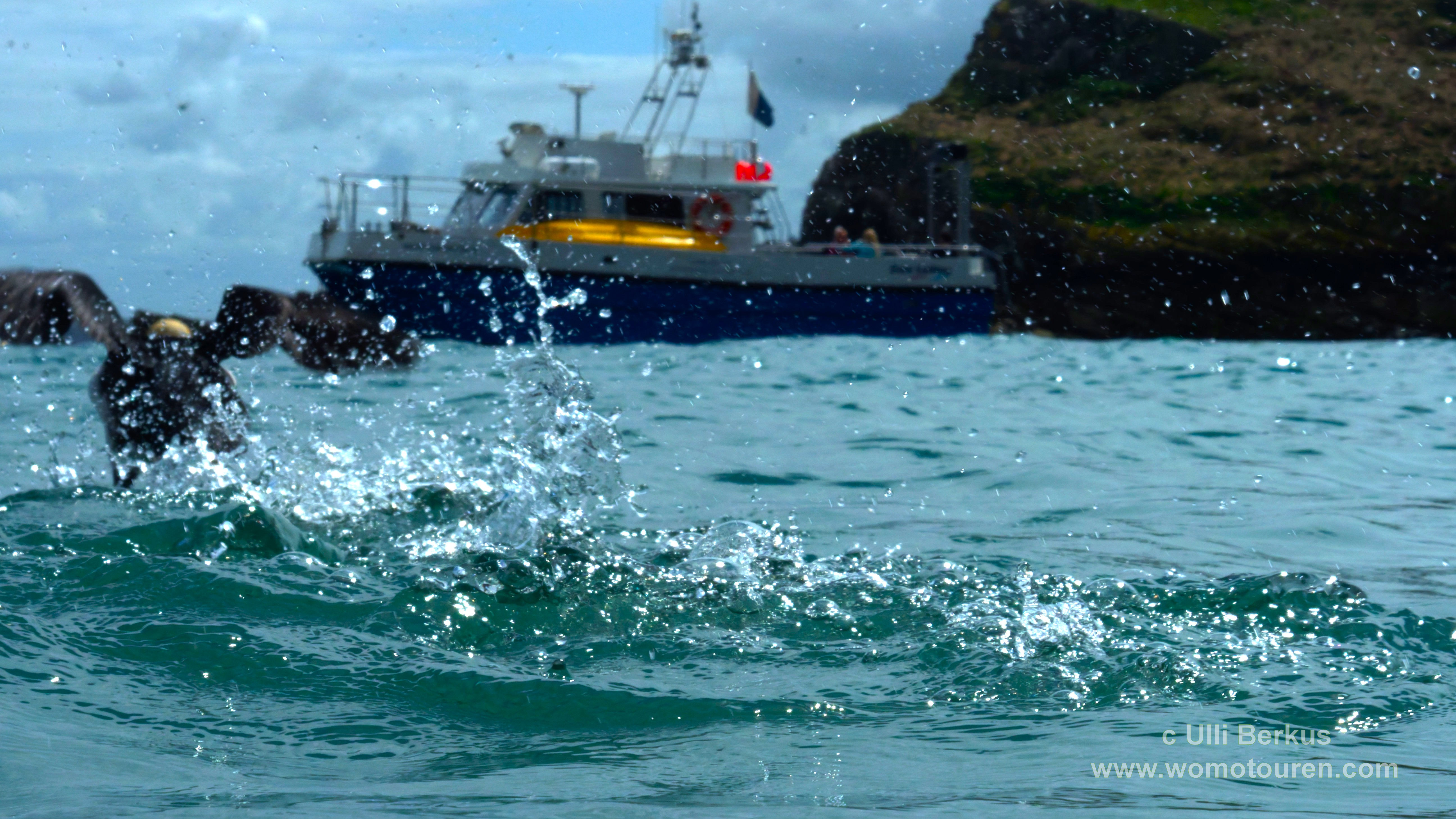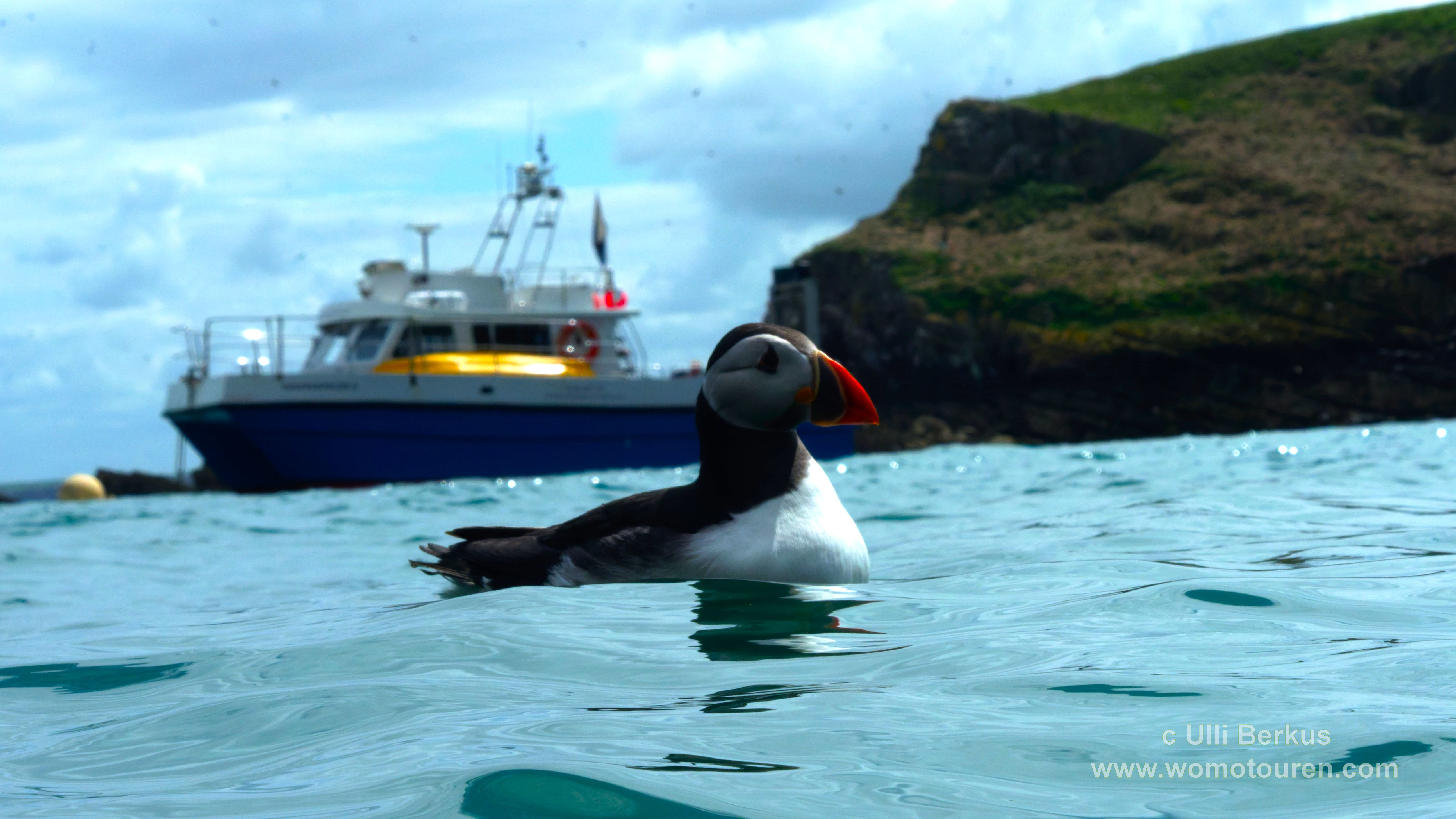 Die ganze Nacht herrschten drehende Windstärken von 5 bis 6 Beaufort. 8Entsprechend hoch sind die Wellen am heutigen Morgen. Heute soll Ulli’s Schnorcheltour zu den Puffins stattfinden. Allerdings begrenzt auf 3 Stunden, da das Boot ab etwa halb 1 an den Sender BBC verchartert ist.