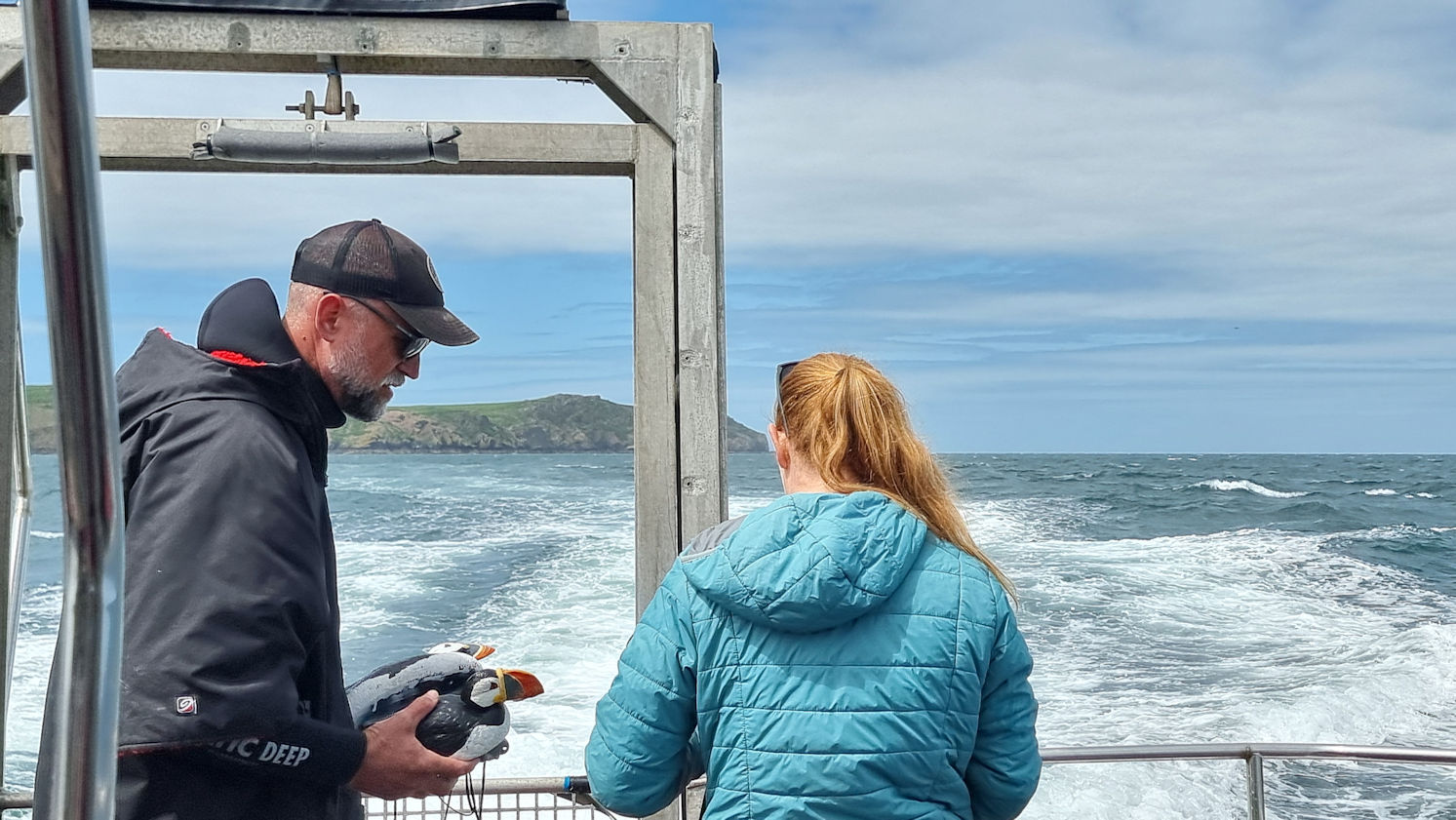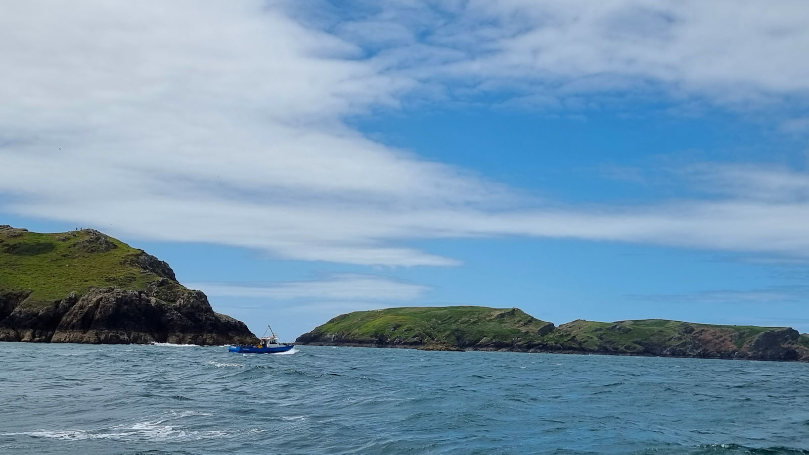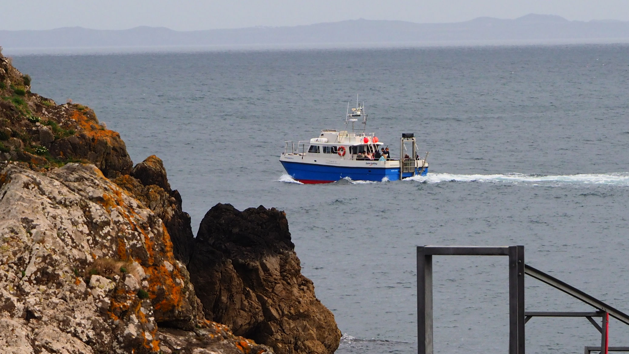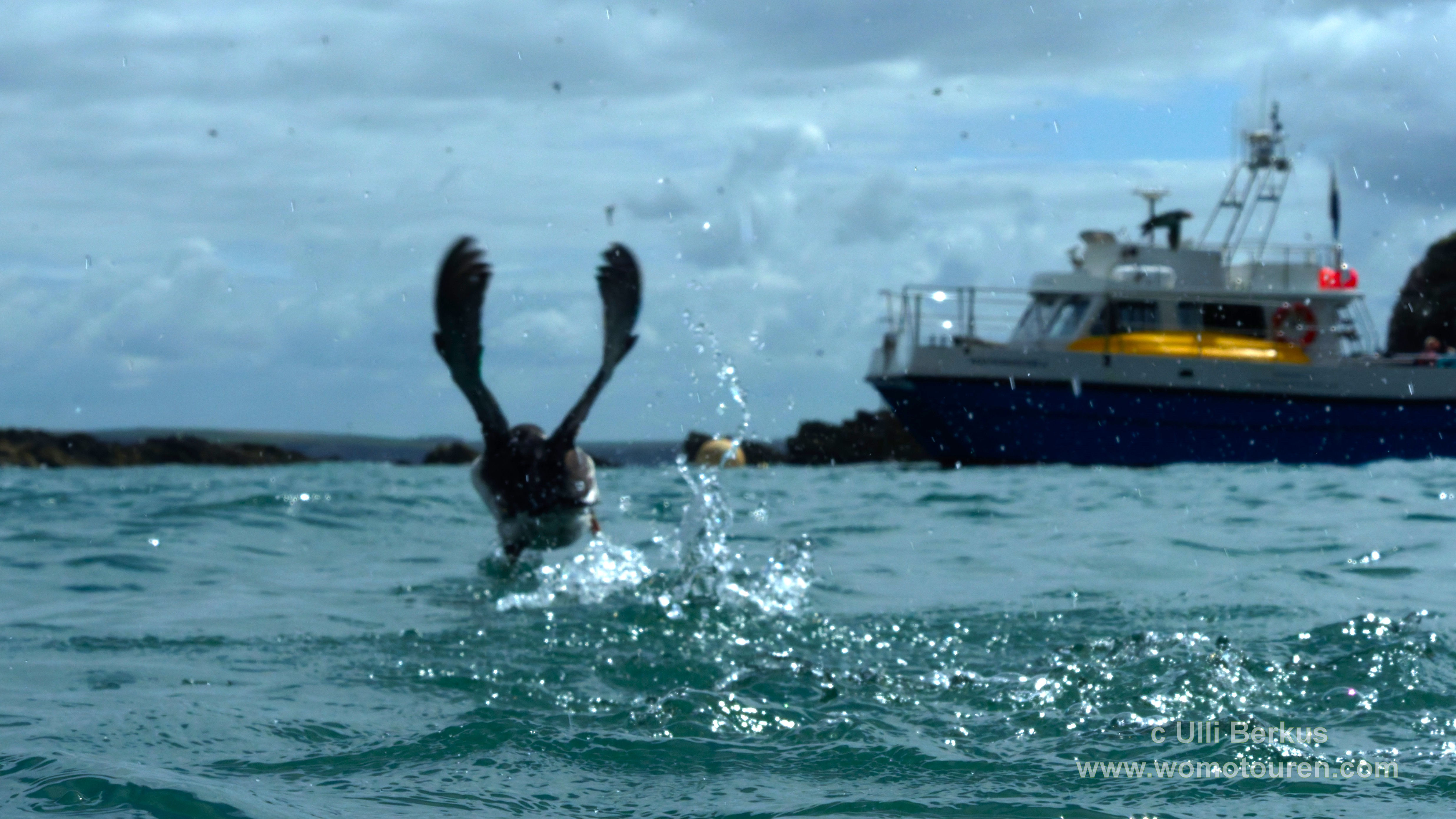 Die ganze Nacht herrschten drehende Windstärken von 5 bis 6 Beaufort. 8Entsprechend hoch sind die Wellen am heutigen Morgen. Heute soll Ulli’s Schnorcheltour zu den Puffins stattfinden. Allerdings begrenzt auf 3 Stunden, da das Boot ab etwa halb 1 an den Sender BBC verchartert ist.