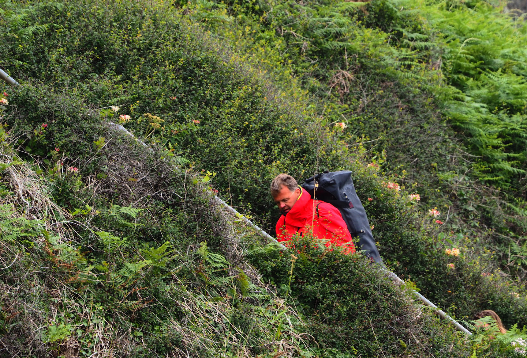 Gegen 2 Uhr kommt das Schnorchelboot wieder zurück. Noch immer ist es trocken. Die Fellnasen freuen sich, als sie Ralf erblicken, es folgt eine kurze Verabschiedung und es geht wieder schwer bepackt zurück zum Womo. Um halb 3 schließen wir die Wohnraumtür auf, da beginnt es zu tröpfeln. Wir schaffen es gerade noch so, die Sachen alle in bzw. unters Womo zu packen und dann geht der erste heftige Regenschauer nieder…und das geht so bis etwa halb 8.