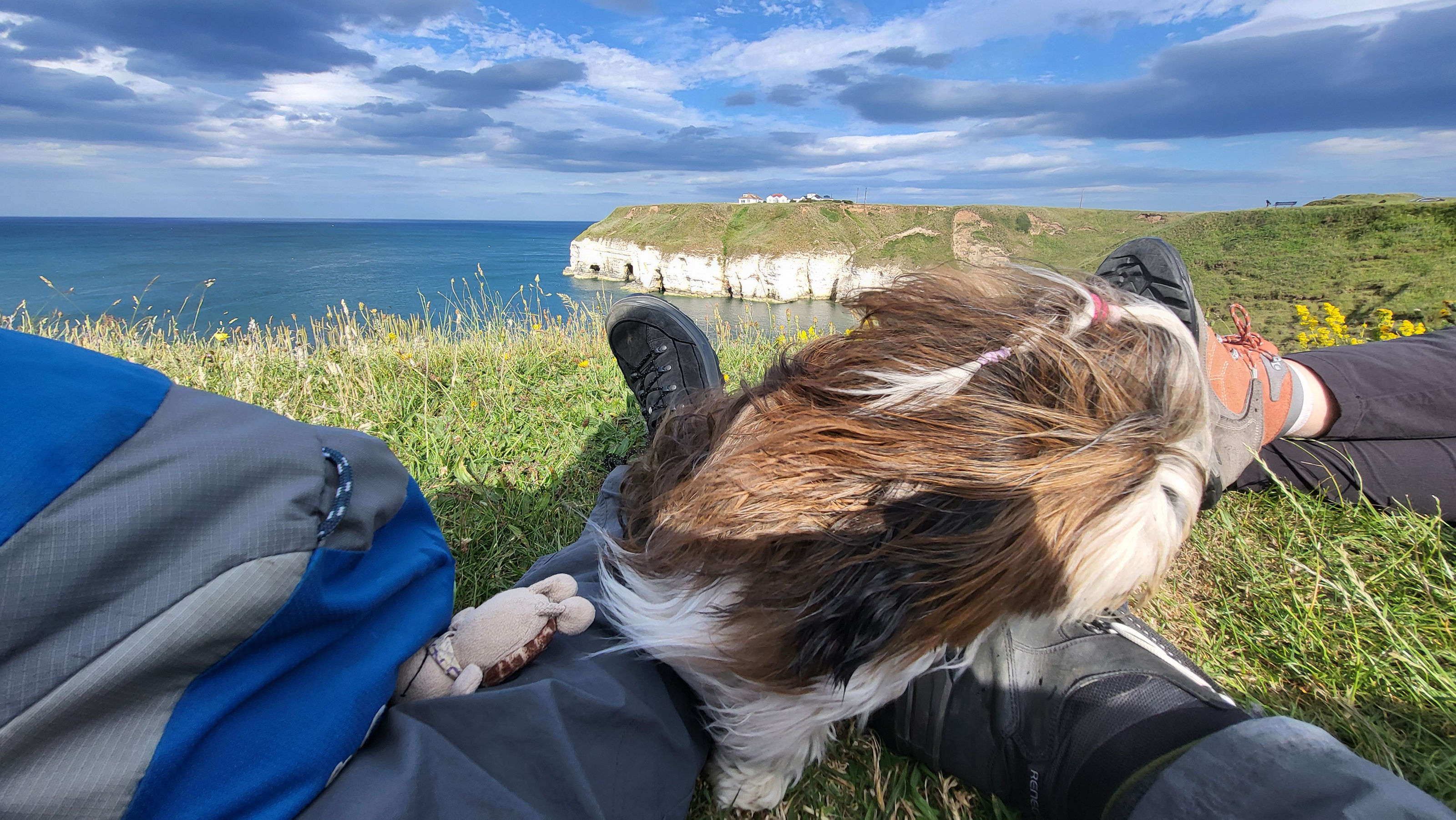 Weiter geht es, immer mit Blick auf das Meer in Richtung Thornwick Bay Cafe. Dort wollen wir bei einem Tee eine Pause einlegen.