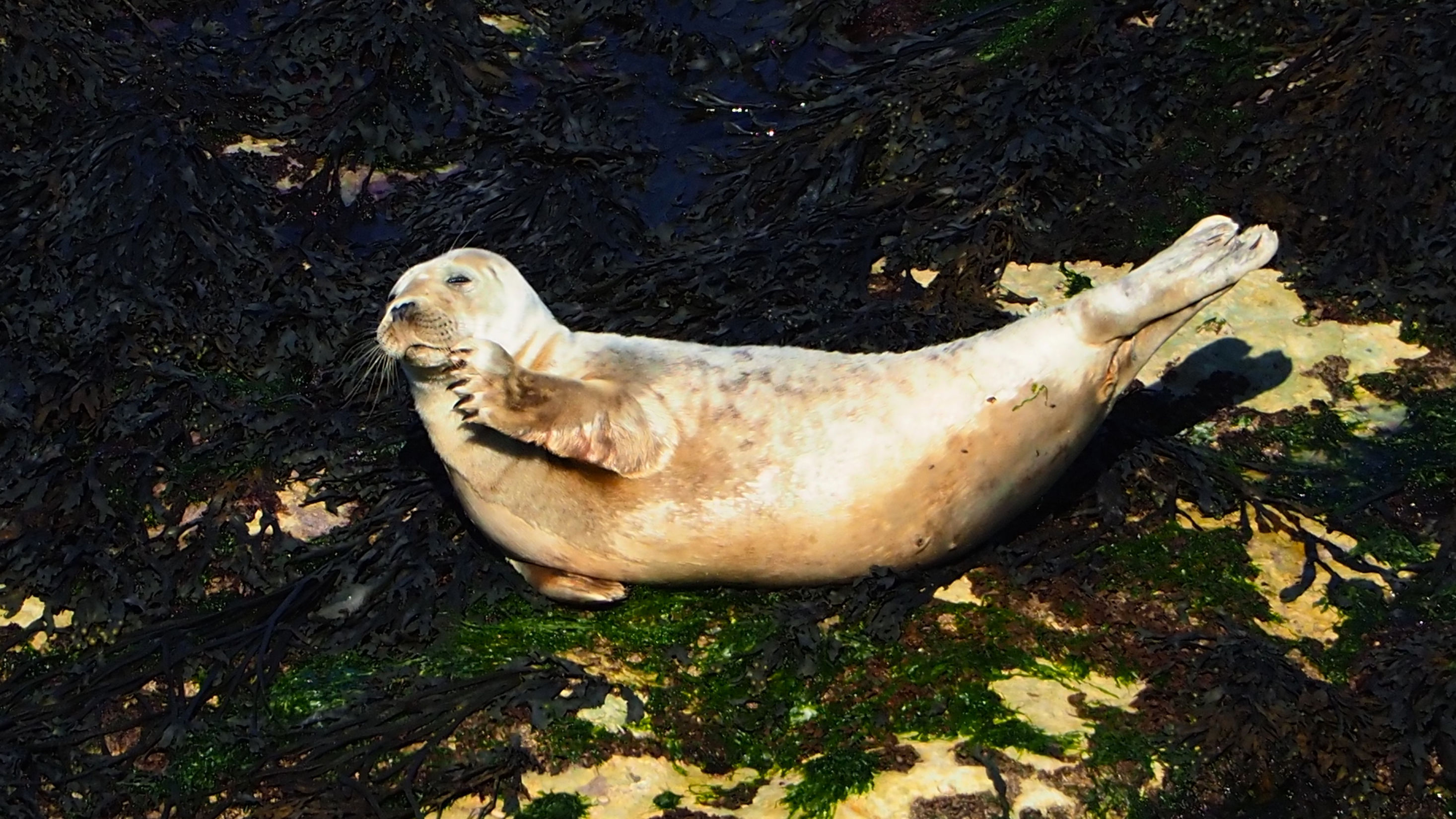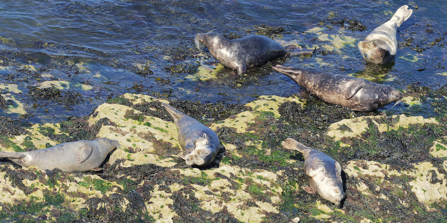 Da heute Sonntag ist, ist auch richtig viel los. Etwa eine halbe Stunde brauchen wir zum Meer und nun sitzen wir oberhalb der Seehundkolonie und schauen diesen wundervollen Tieren zu. So schön.