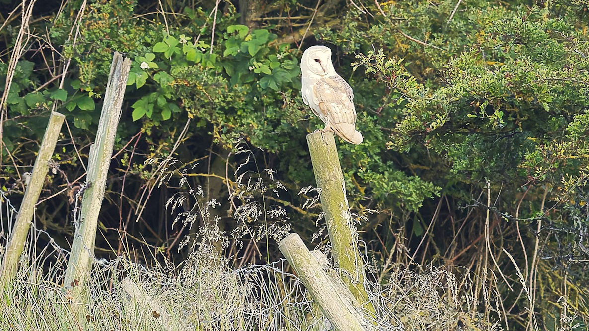 Gegen halb 8 geht es weiterin Richtung Flamborough. Auf Höhe der Leuchtgeschwindigkeitsanzeige entdecken wir eine Schleiereule beim Jagen. Ralfs Fotos werden toll. Ullis Foto nimmt die automatische ISO, die bei diesem Licht leider zu hoch ist und so sind Ulli`s Fotos leider eher unscharf…schade..