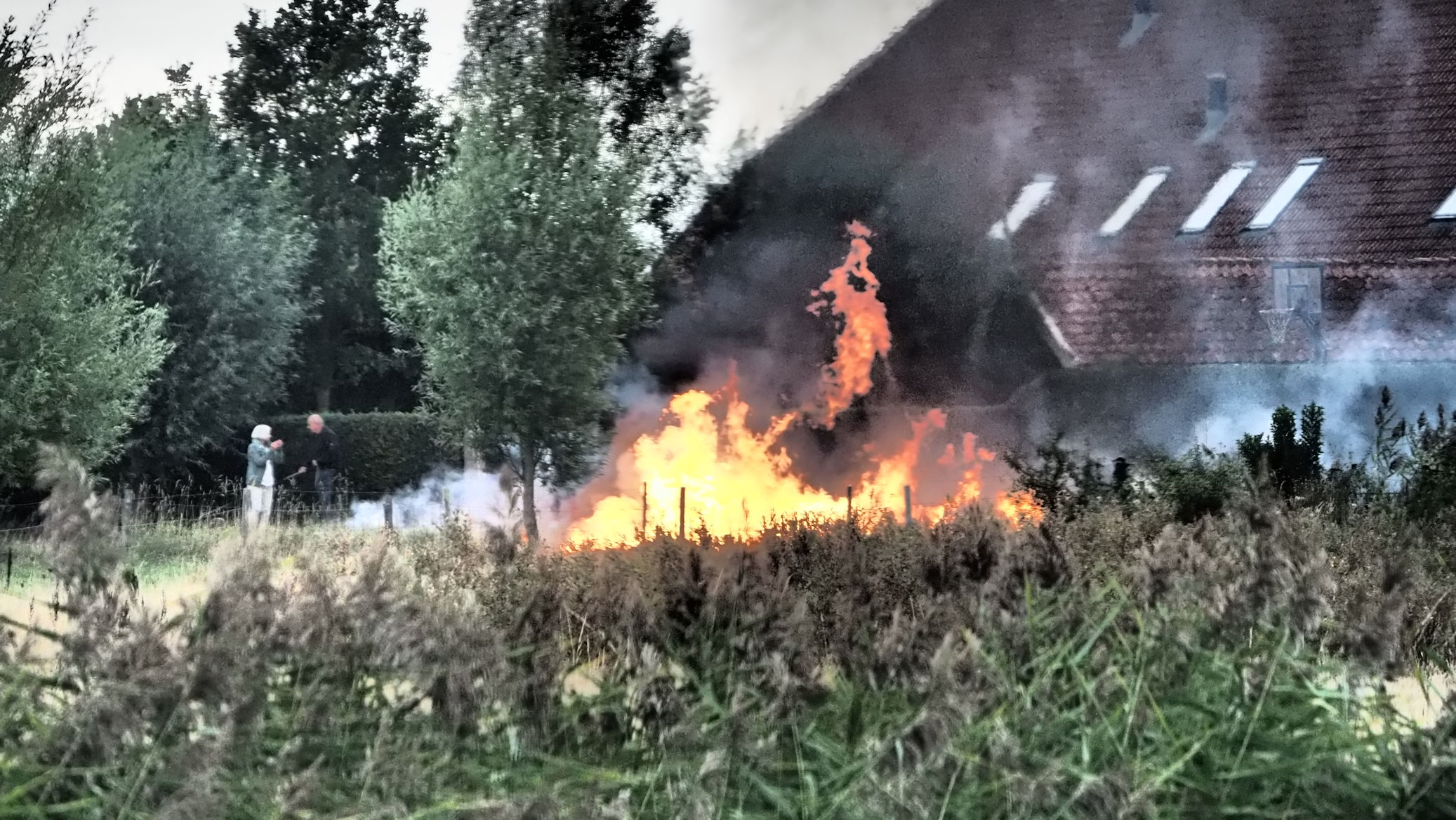 In Wemeldinge angekommen führt uns unser erster Besuch zum Camping Kleine Stelle. Im Nachbarhaus lodert ein extrem hohes Feuer, aber es scheint niemanden weiter zu stören. Auf dem Camping selbst hat es noch einige freie Plätze, eine Füllstation , aber es ist niemand da, den man wegen Verfügbarkeit fragen könnte. Auch telefonisch kommen wir da nicht weiter.