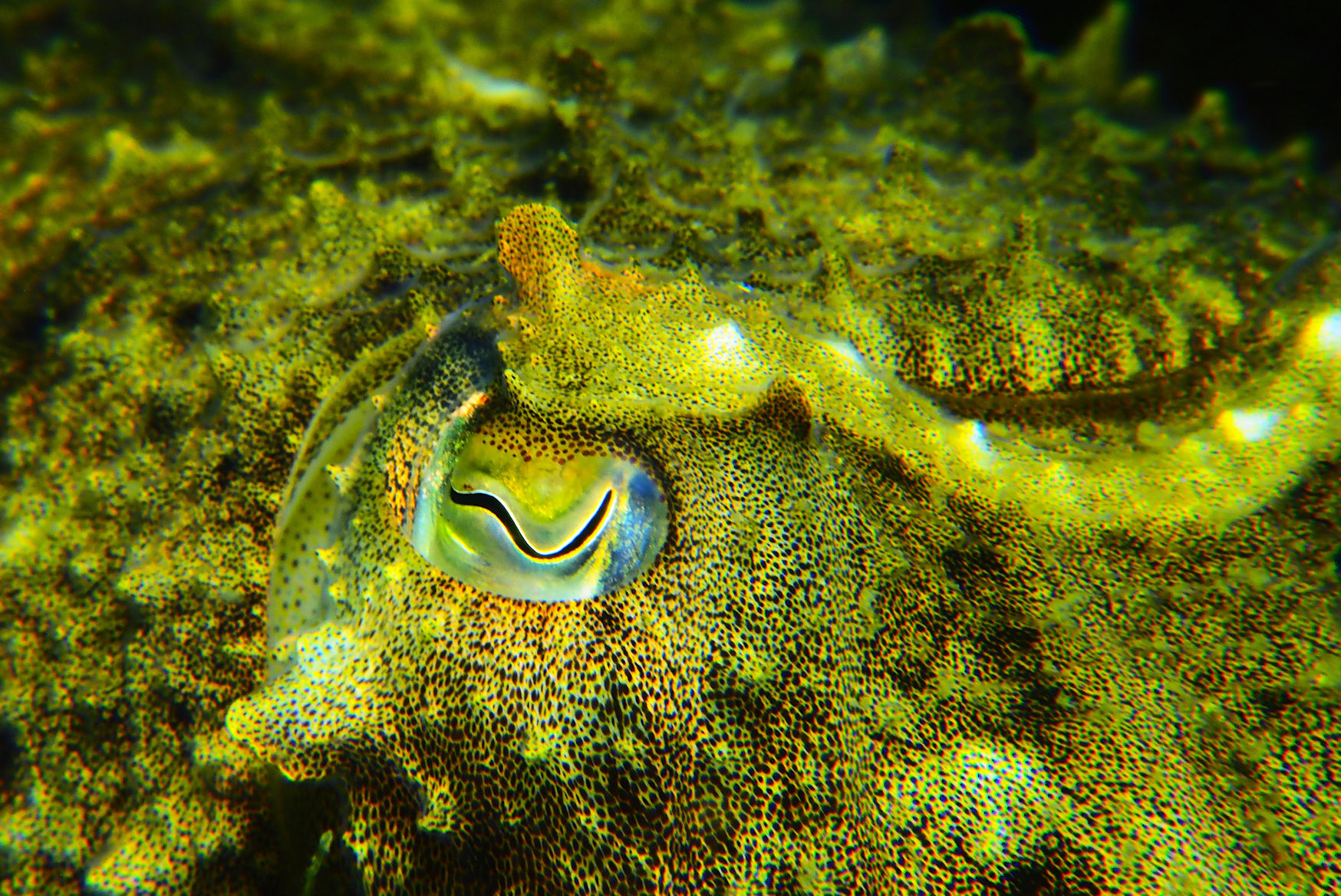 Und dann tauchen wir ab in diese wunderbare Welt der Oosterschelde. Das heutige taucherische Highlight ist eine Sepia, die die Motorengeräusche des großen Fischerbootes anscheinend genauso zu stören scheint, wie uns. Leicht zusammengekauert sitzt sie nahezu bewegungslos in einer Mulde und lässt uns in Ruhe ihr Farbenspiel im Bild festhalten. Einfach ein wundervoller Tauchgang.